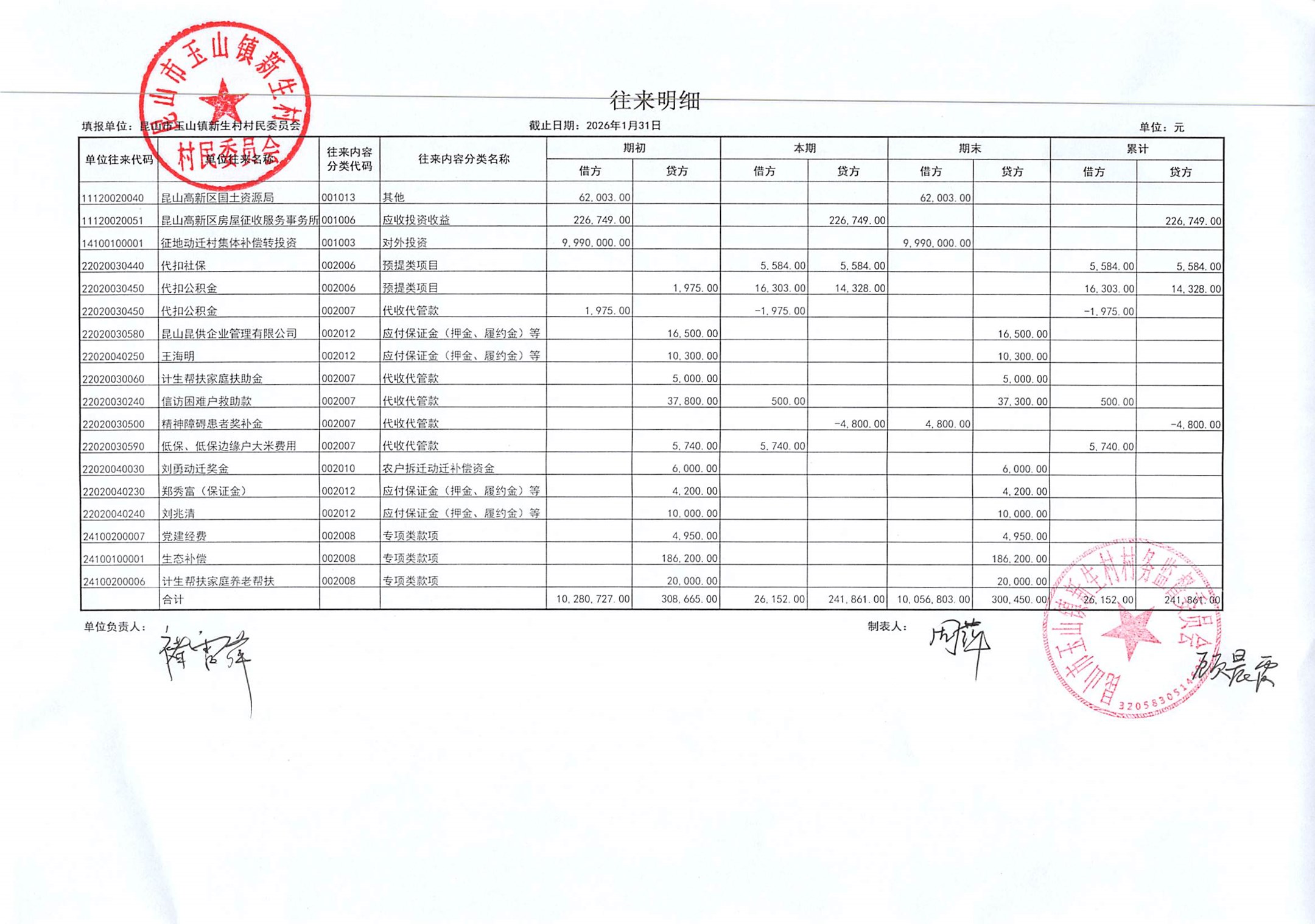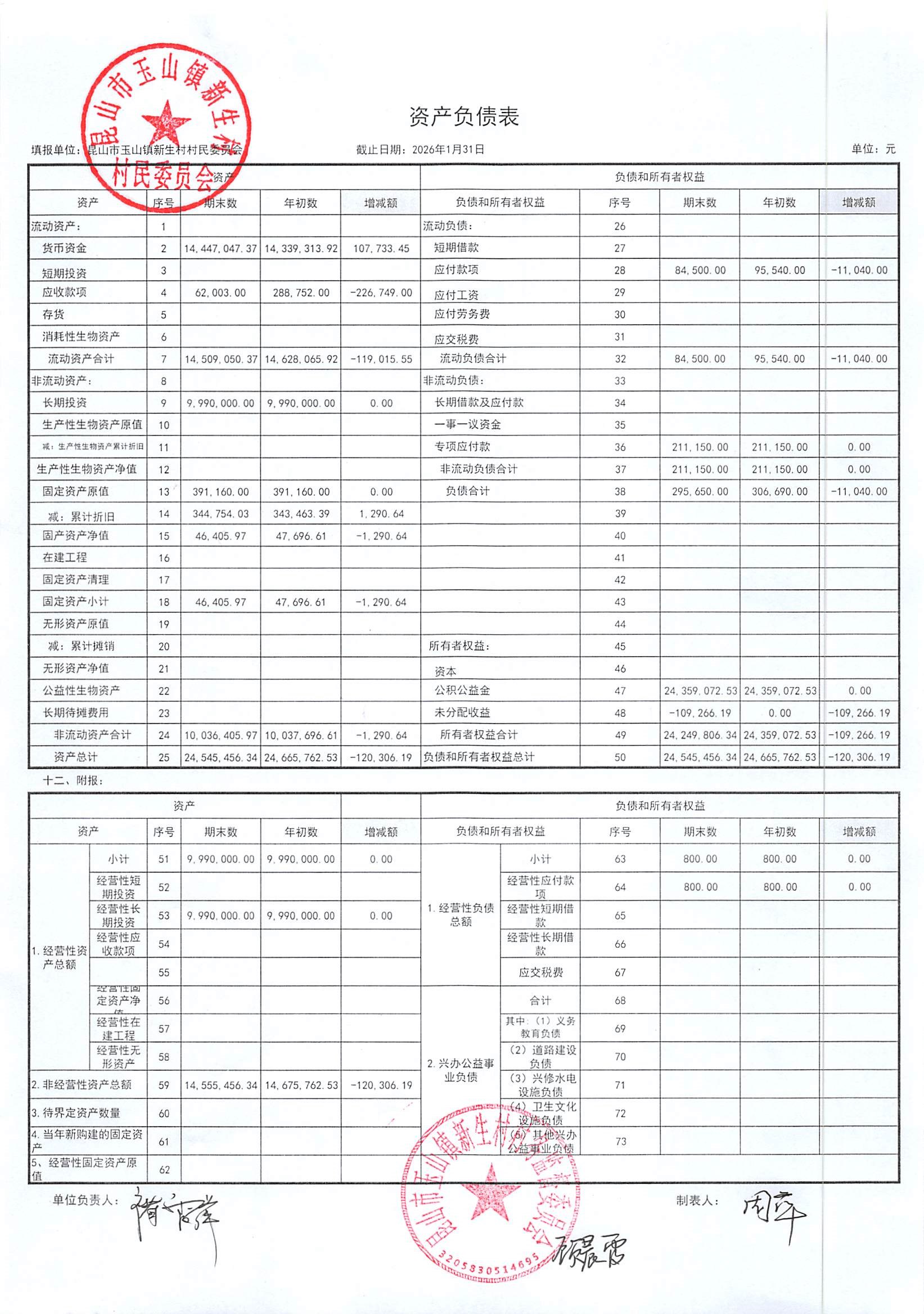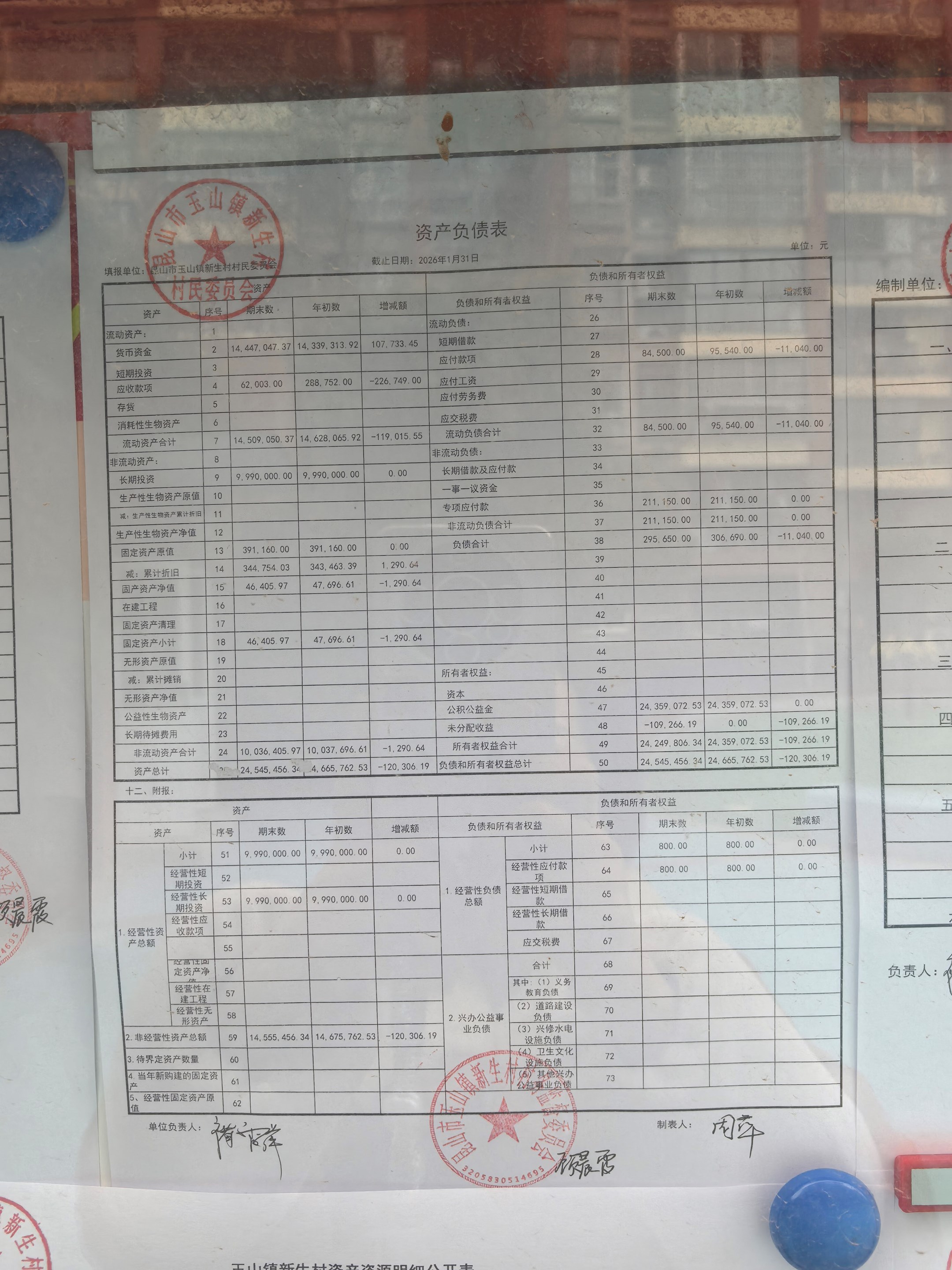 2026年2月新生村村民委员会财务公开