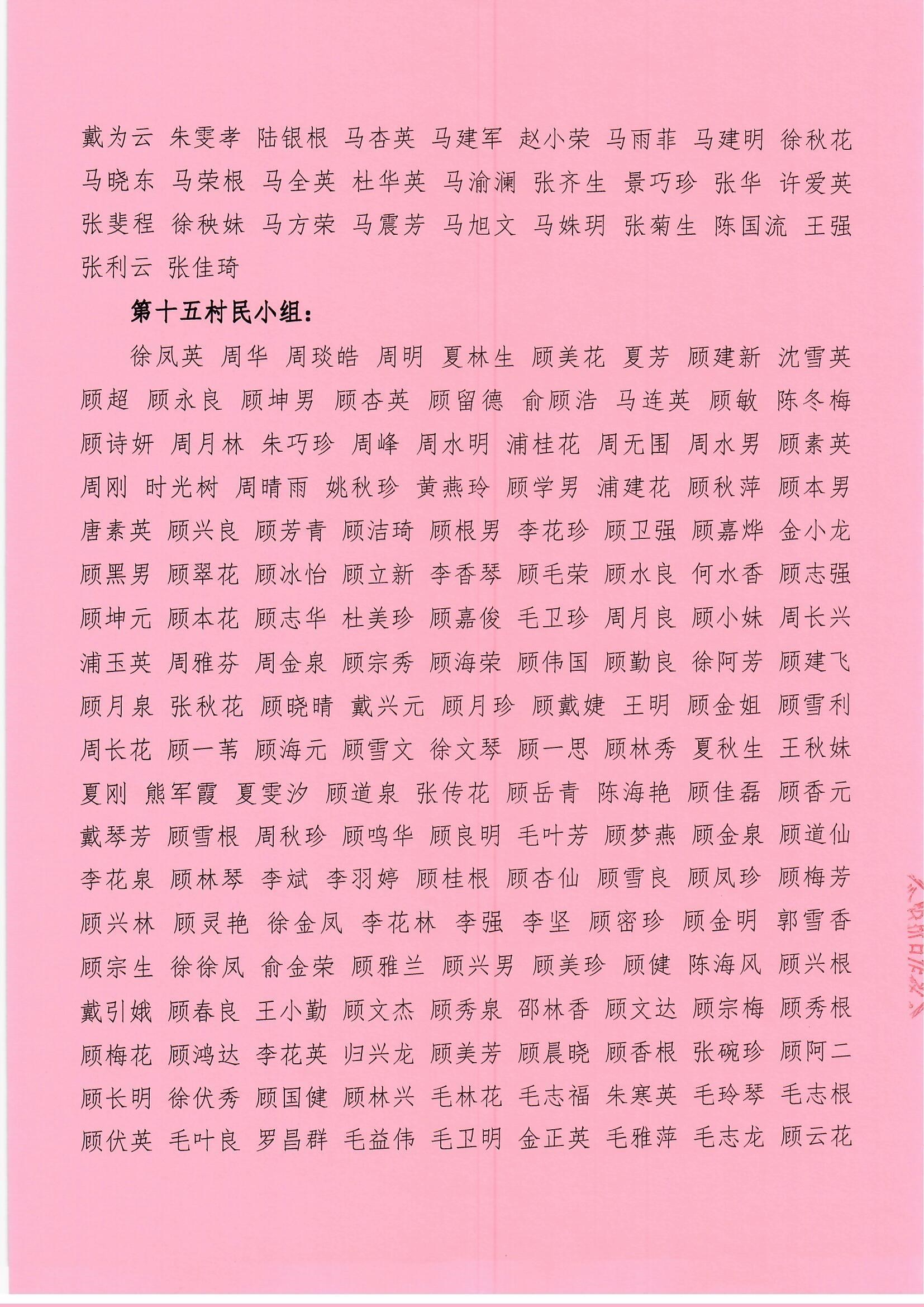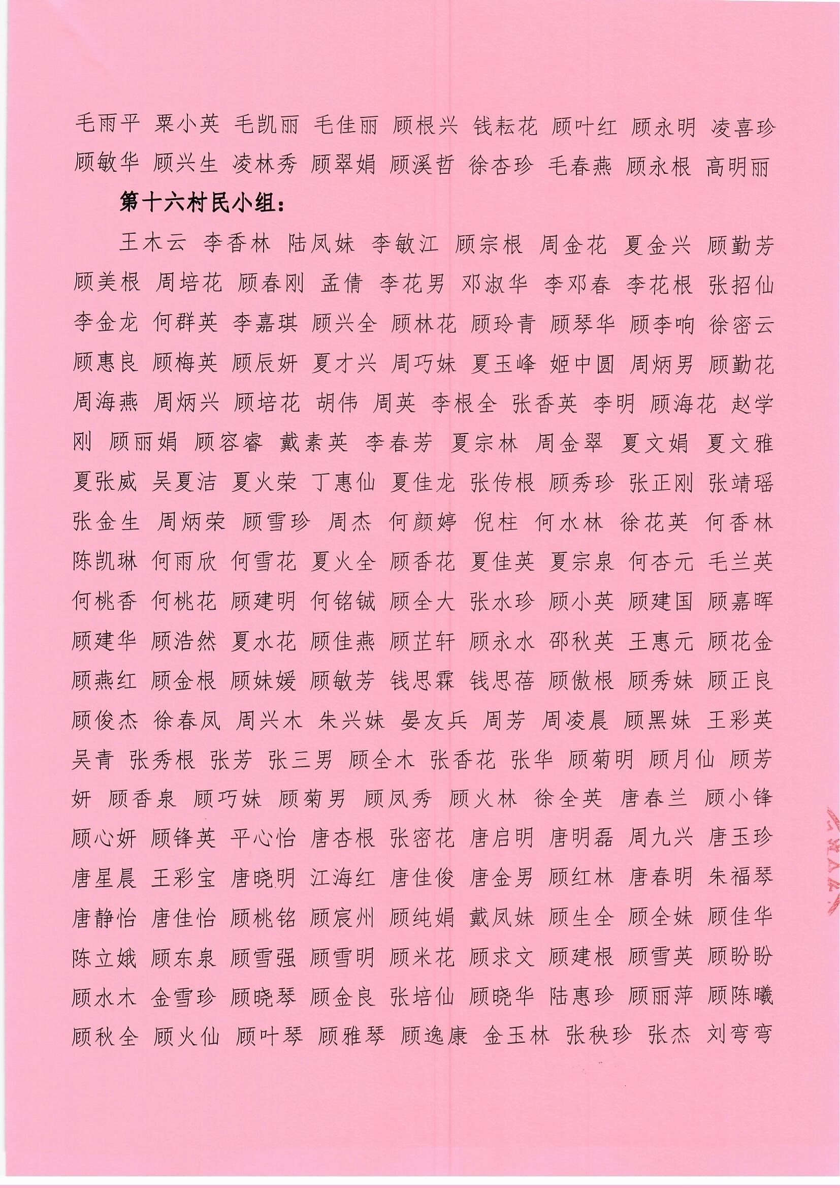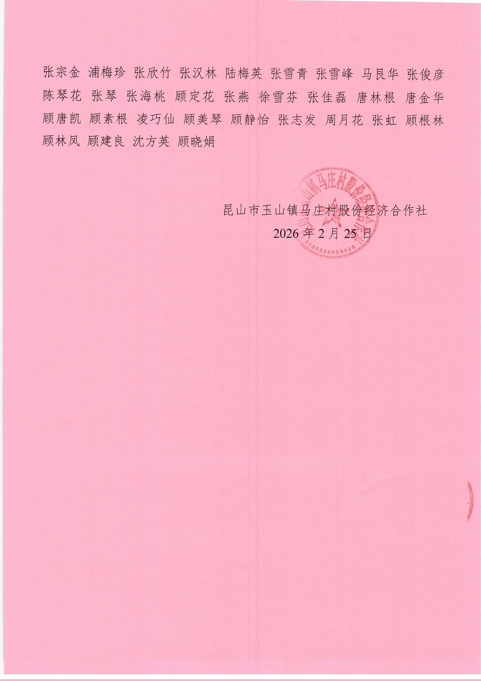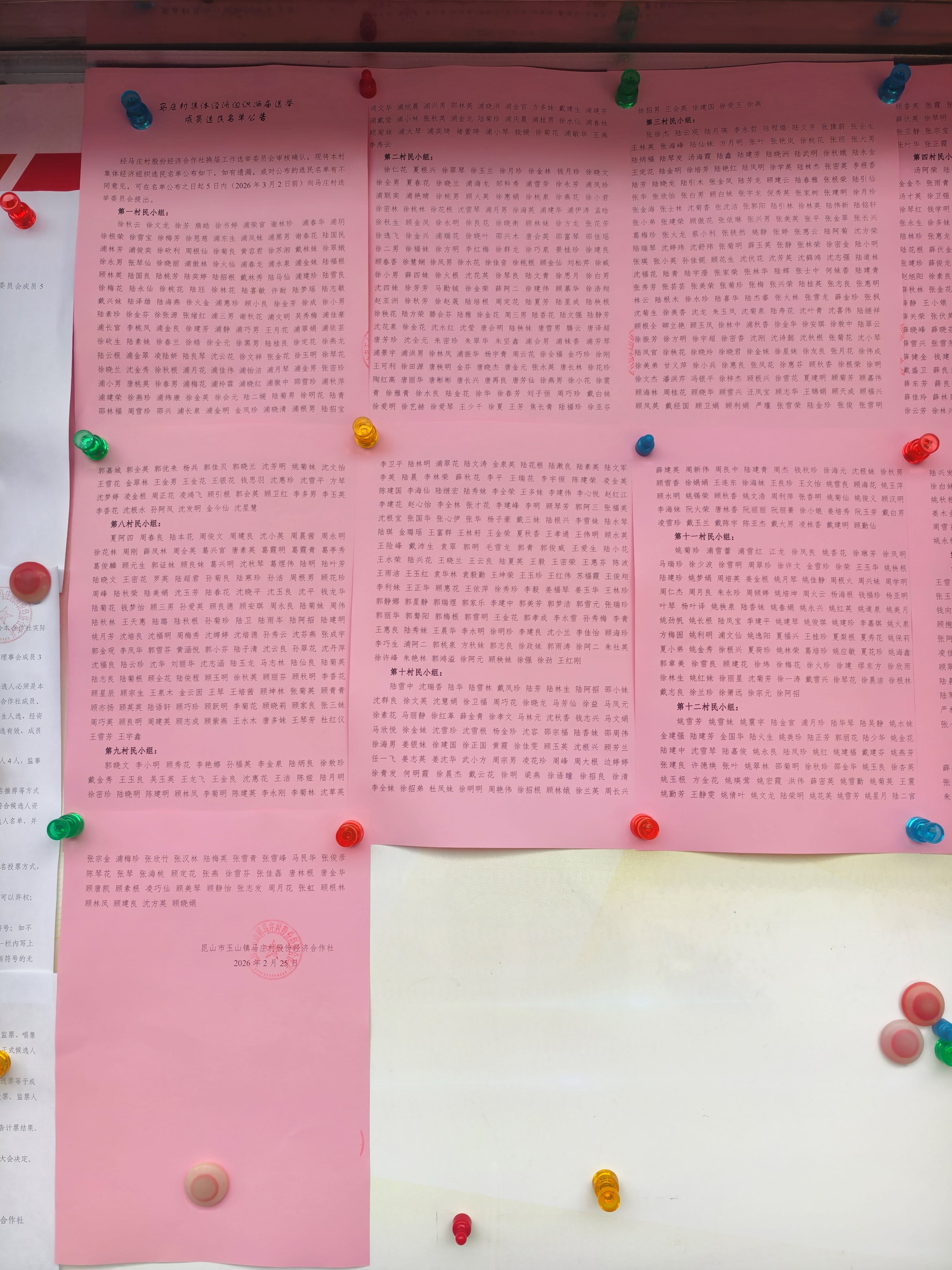 马庄村股份经济合作社换届选举成员选民名单公示