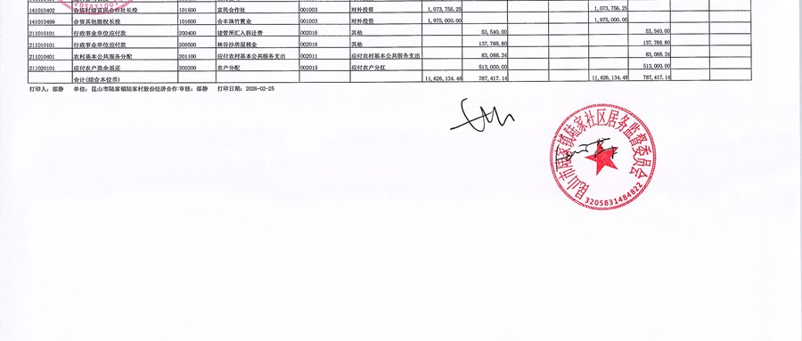 2026年2月陆家村股份经济合作社财务公开