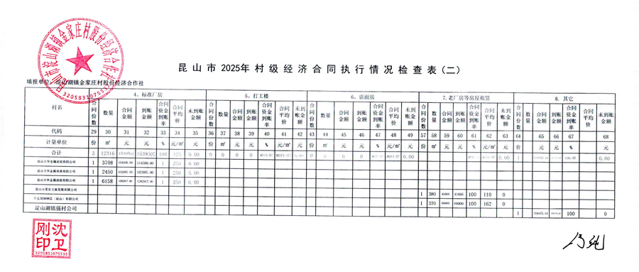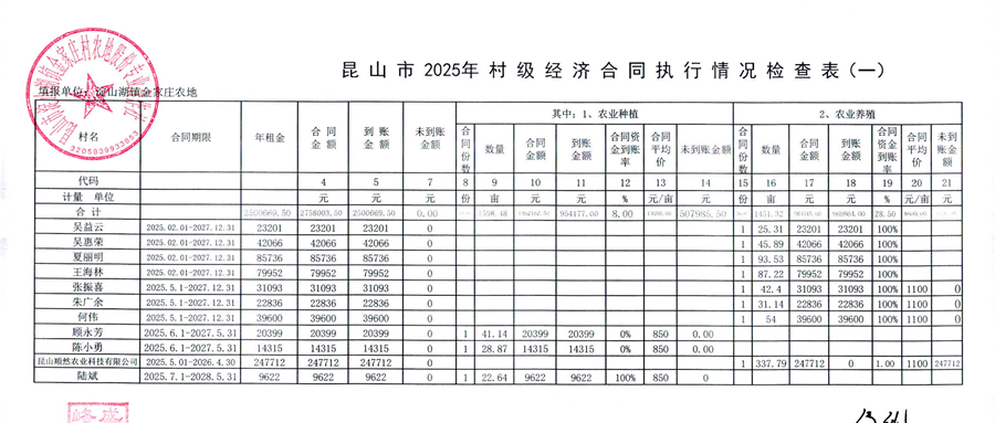 2025年第四季度金家庄村经济合同收缴进度调查表