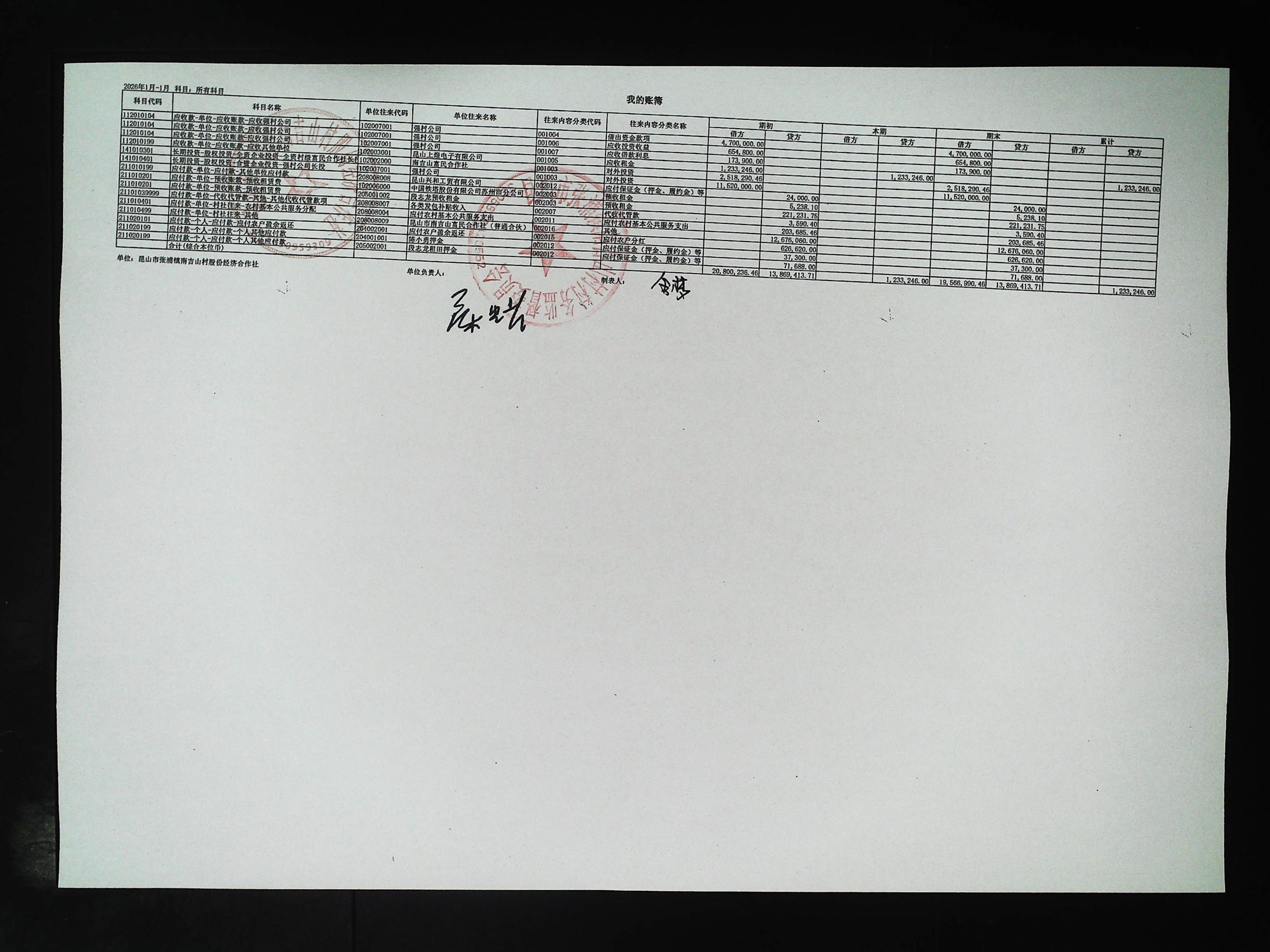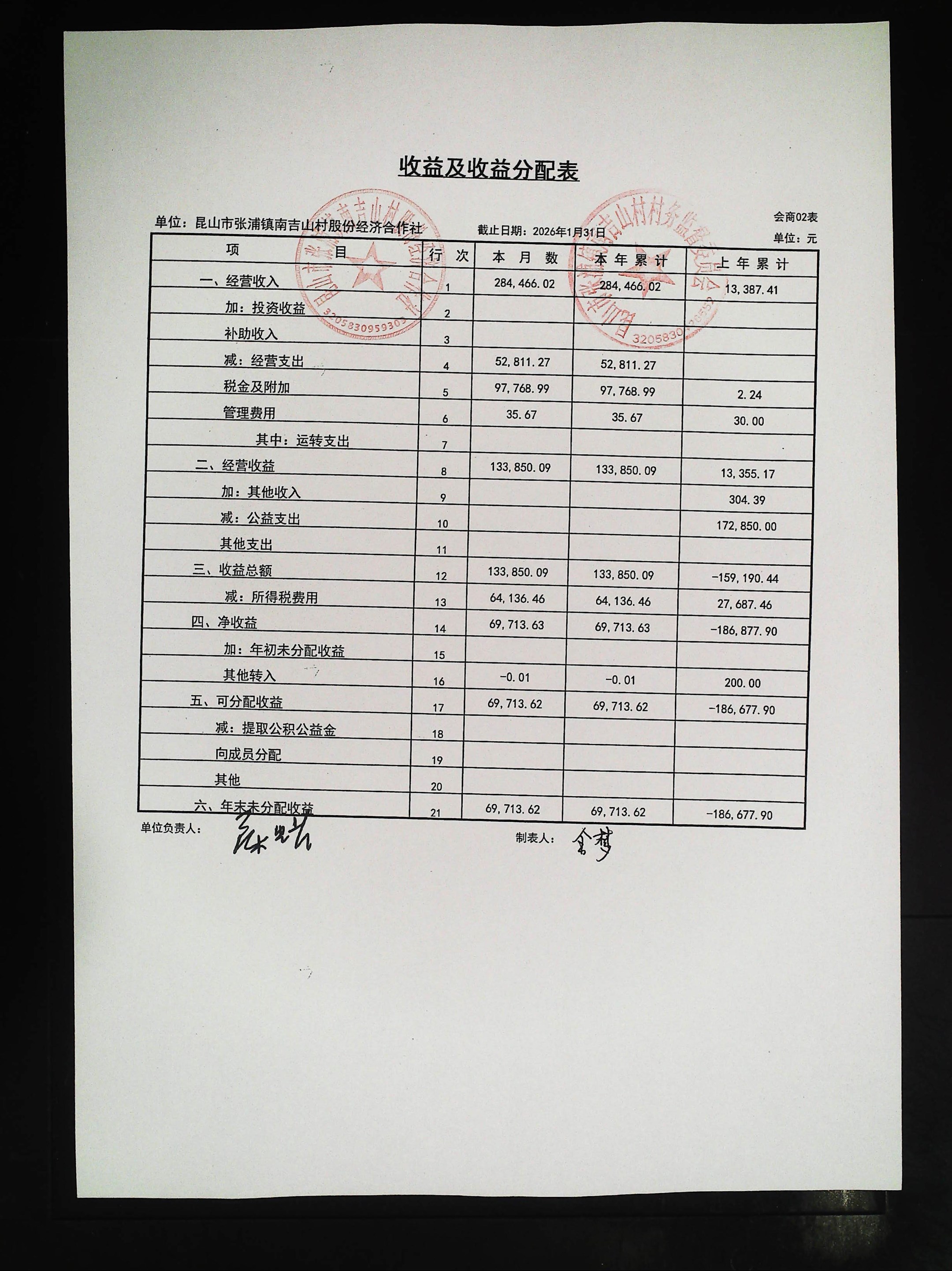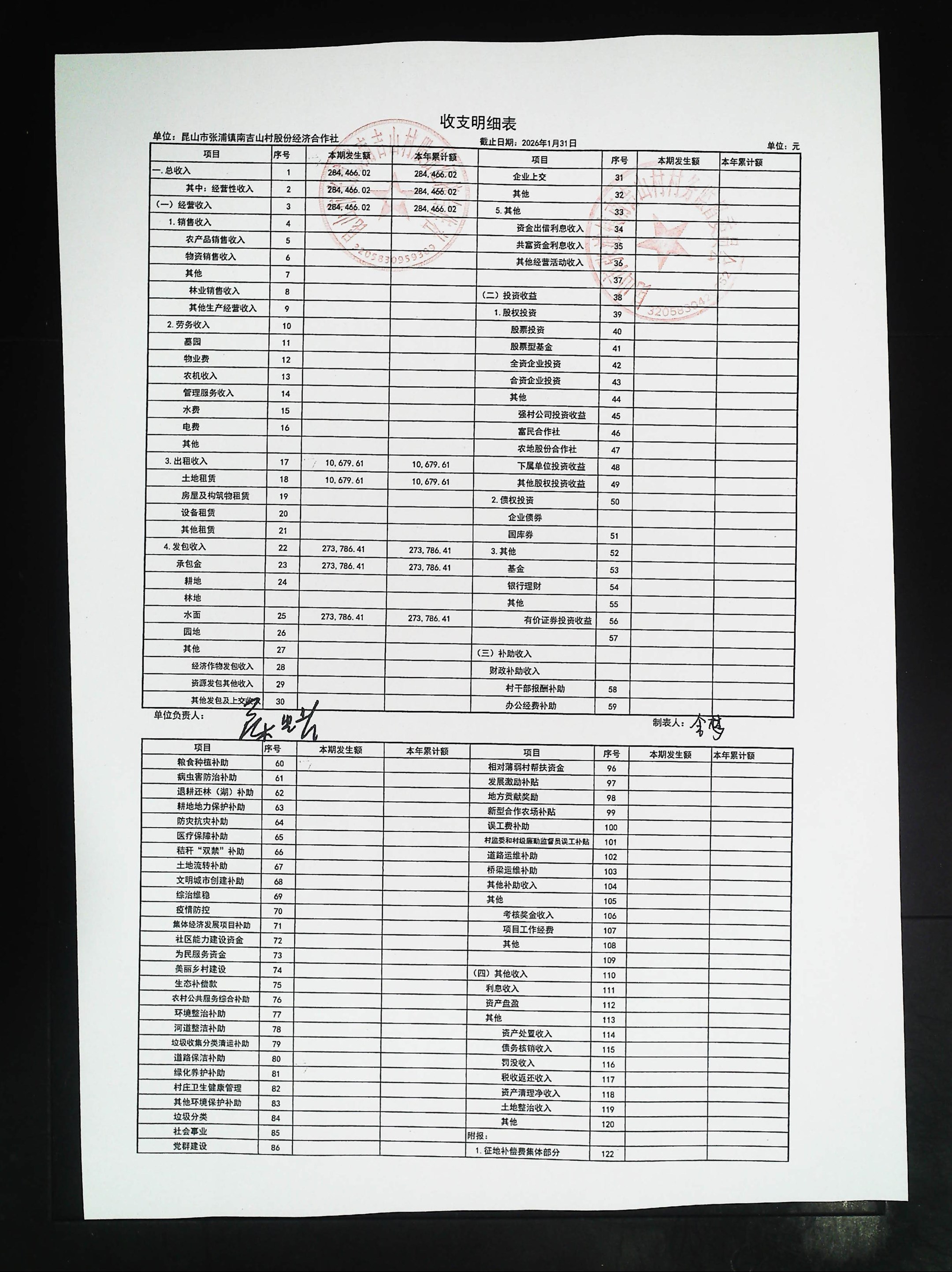 2026年1月社区财务公开