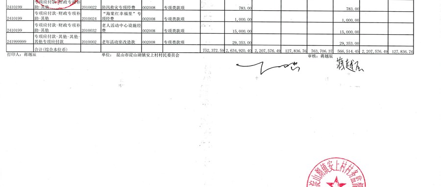 2026年1月安上村村民委员会财务公开
