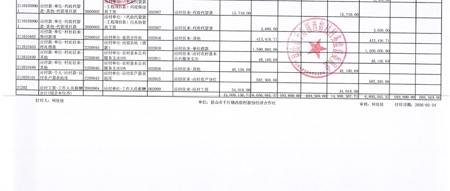 西宿村2026年2月份西宿经济合作社财务公开