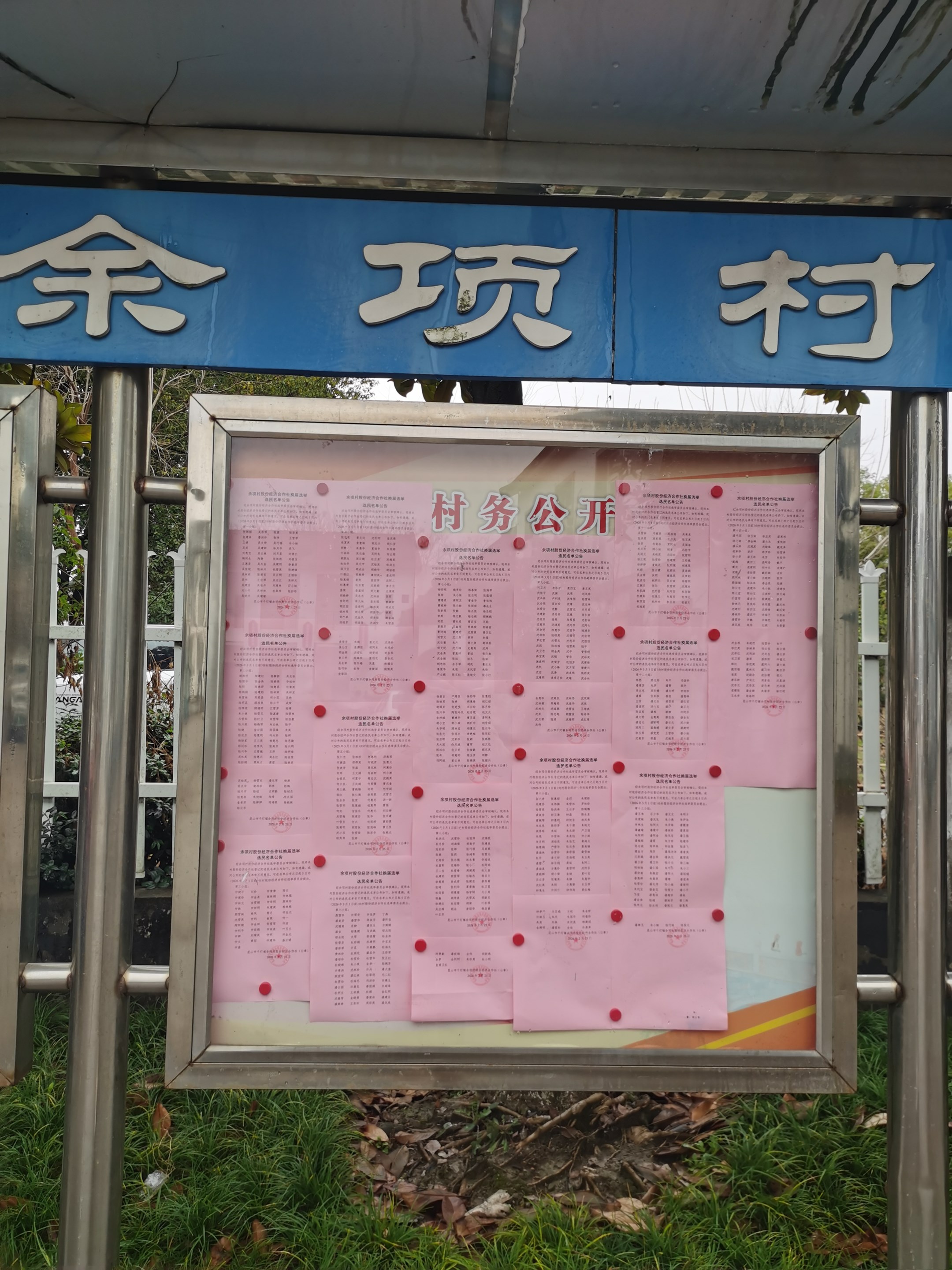余项村股份经济合作社换届选举选民名单公告公示