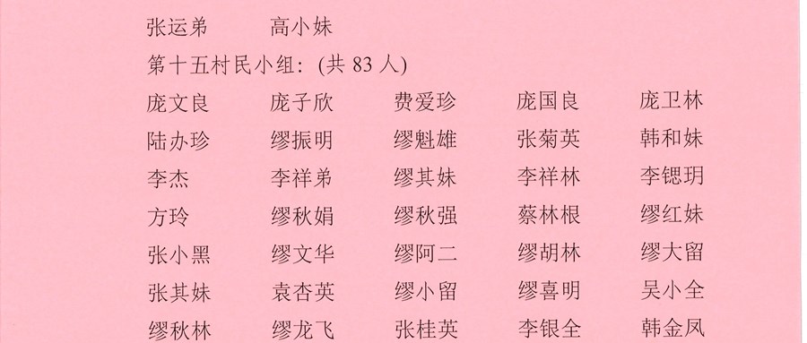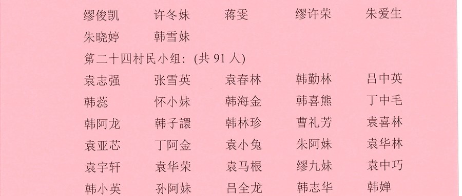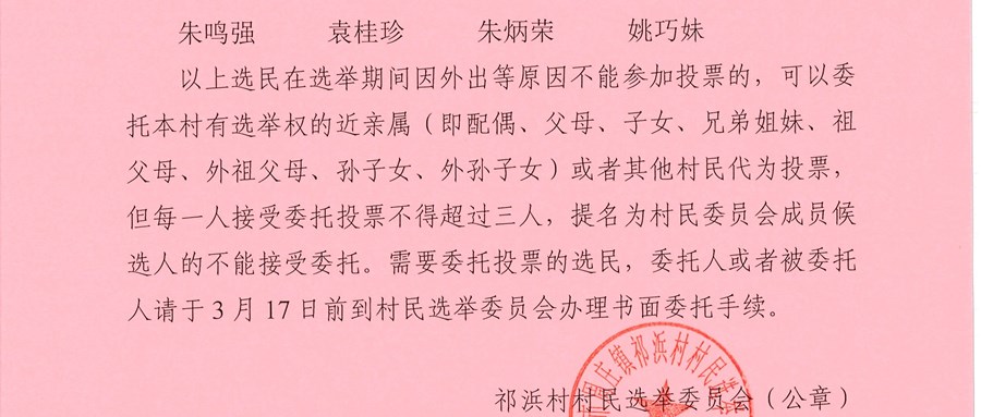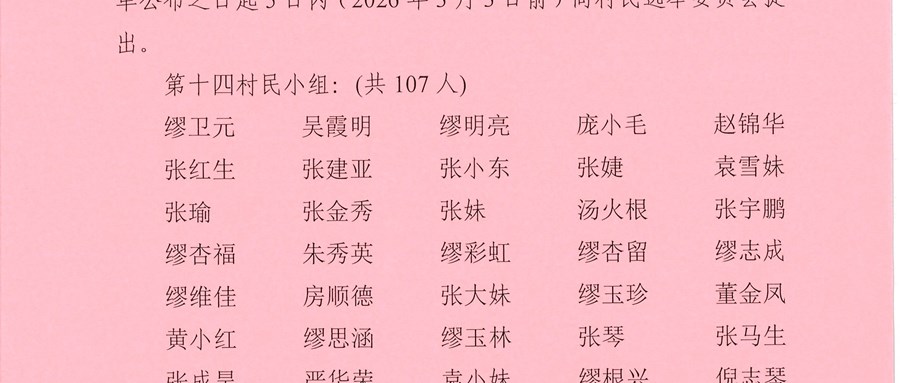 祁浜村第十四届村民委员会换届选举选民名单公告1