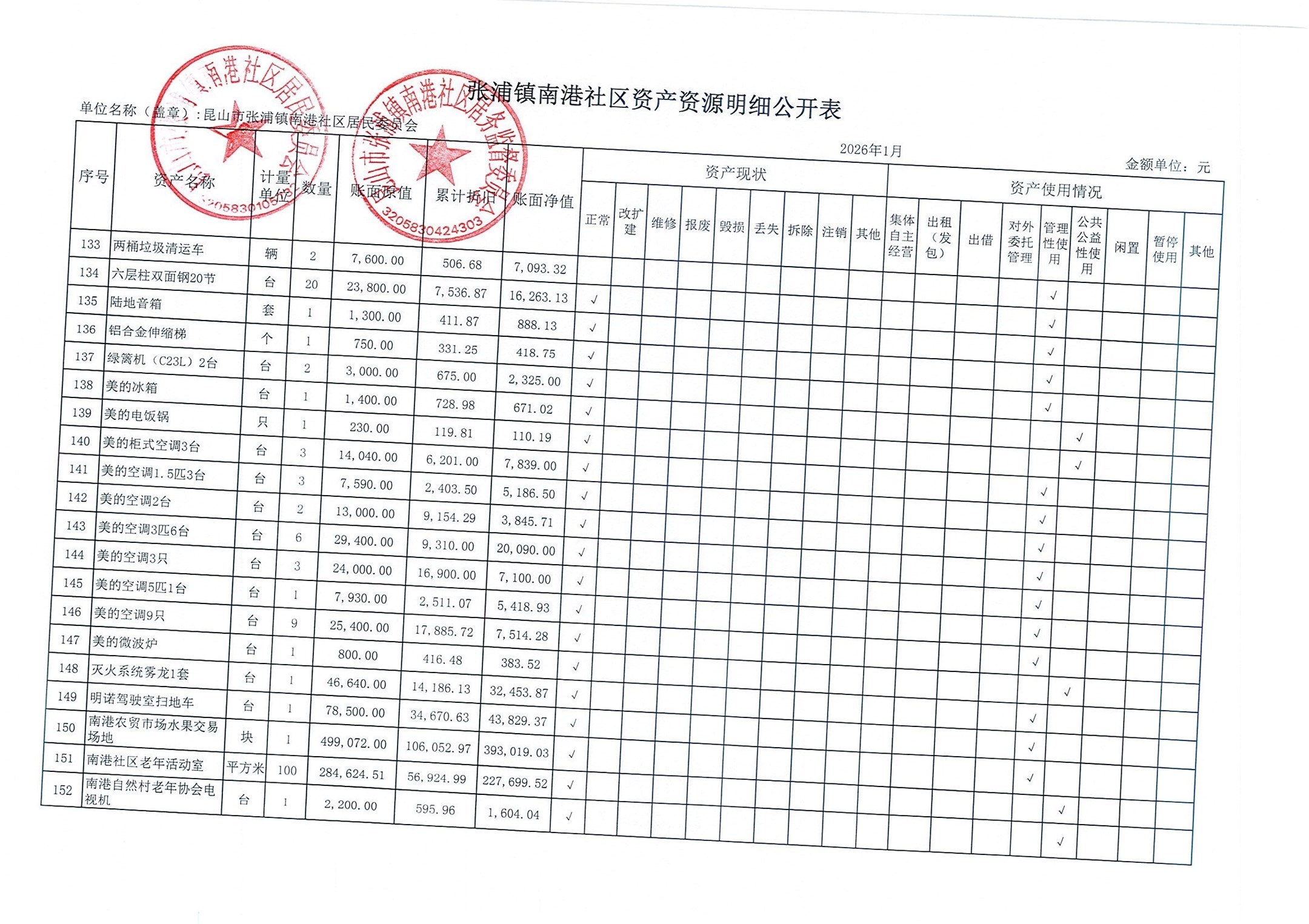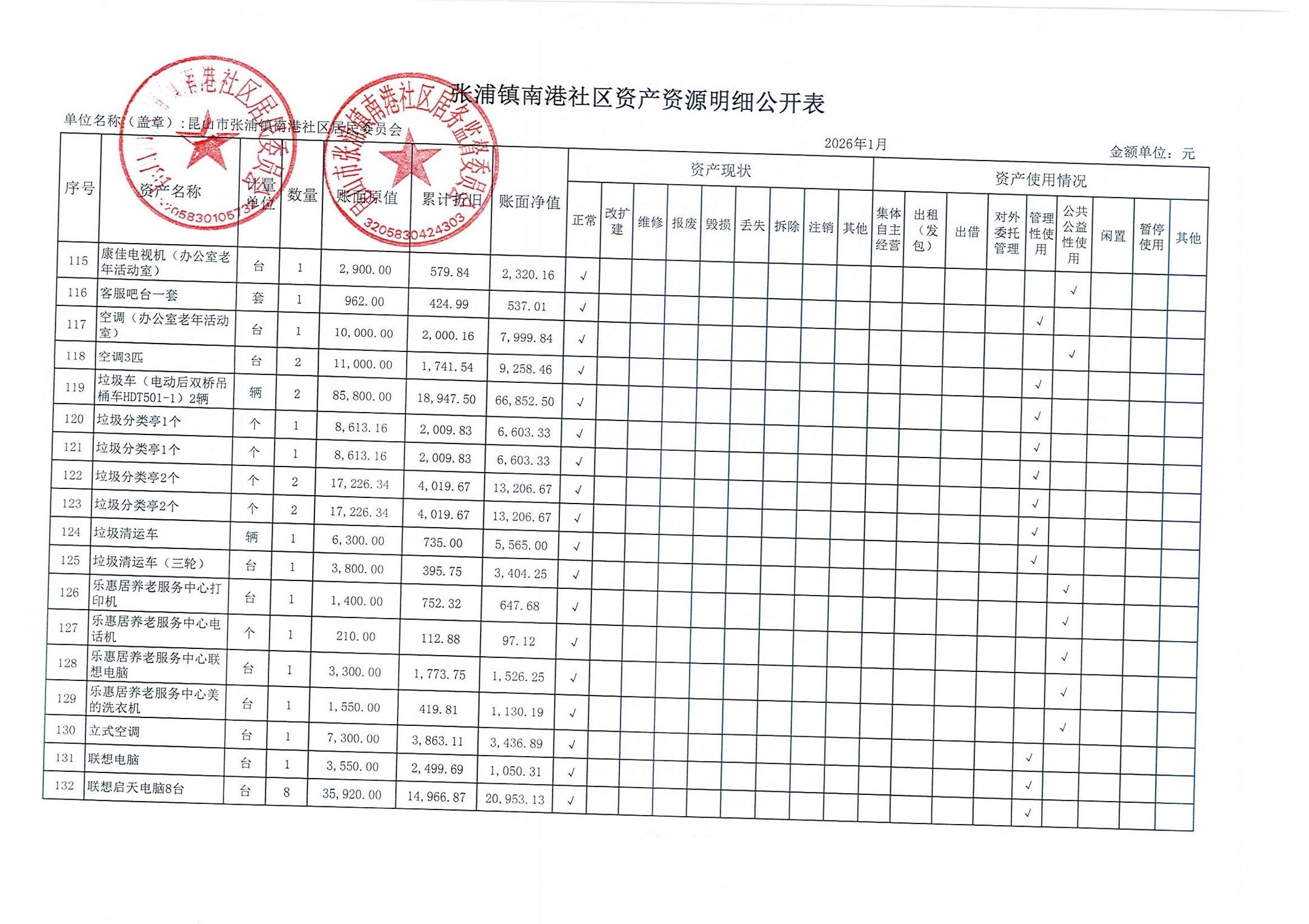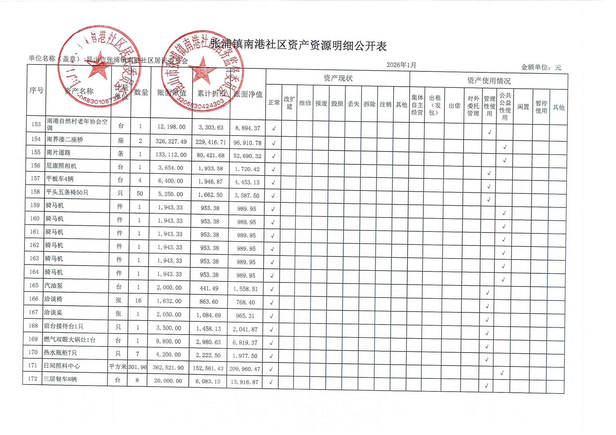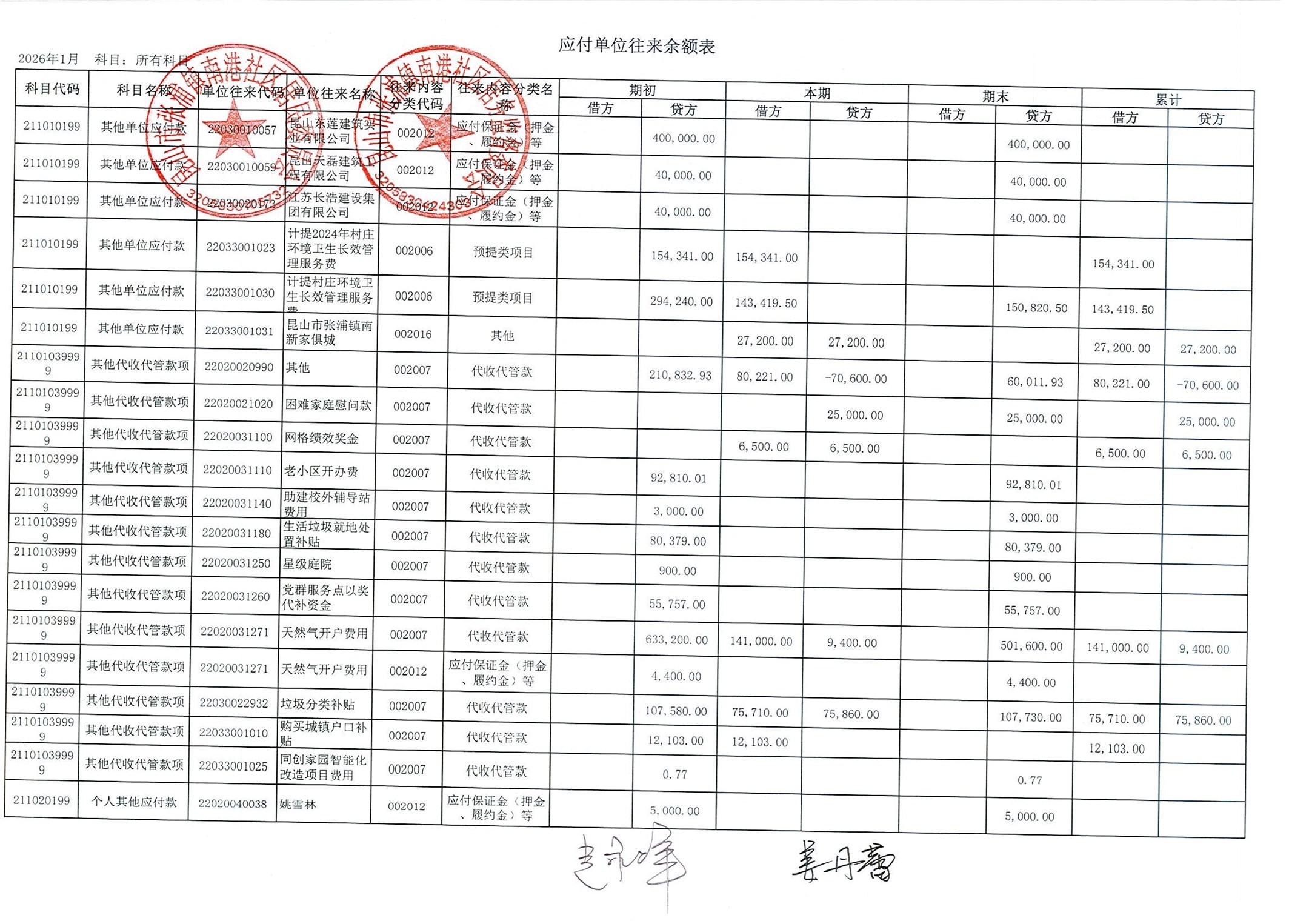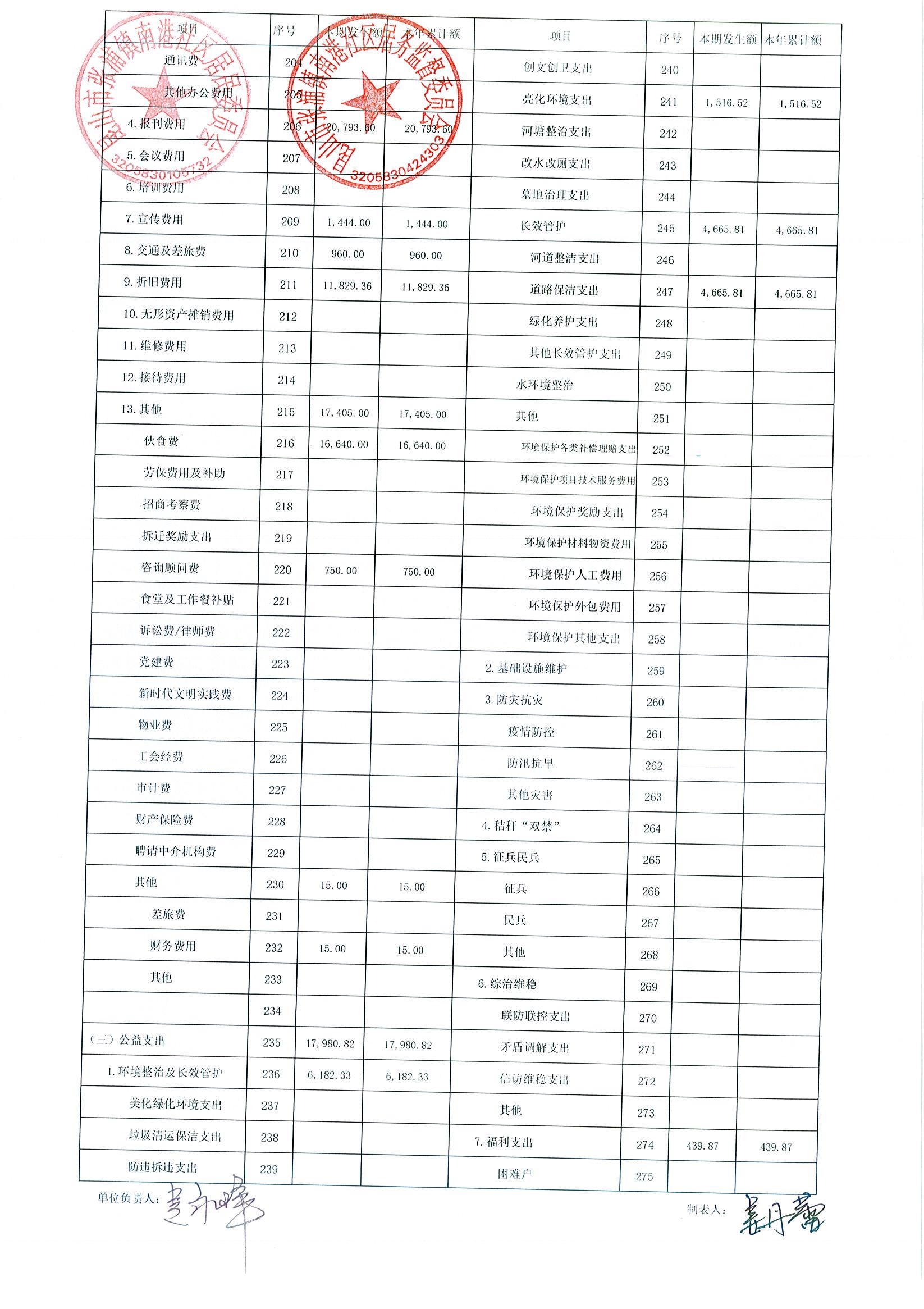 南港社区居委会2026年1月财务公开(定期公开)