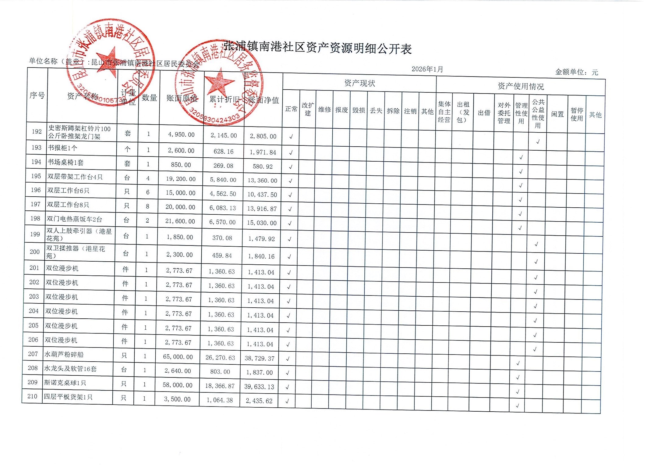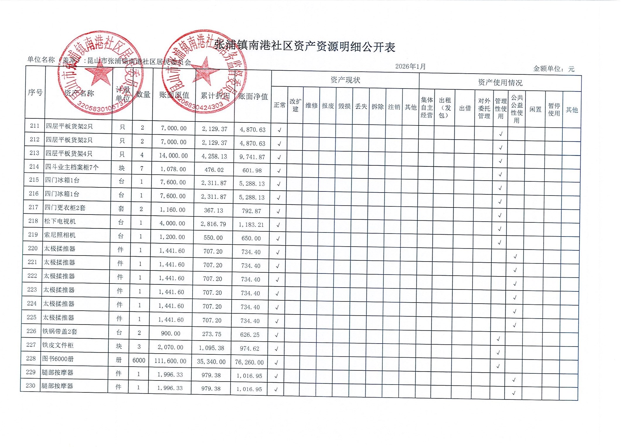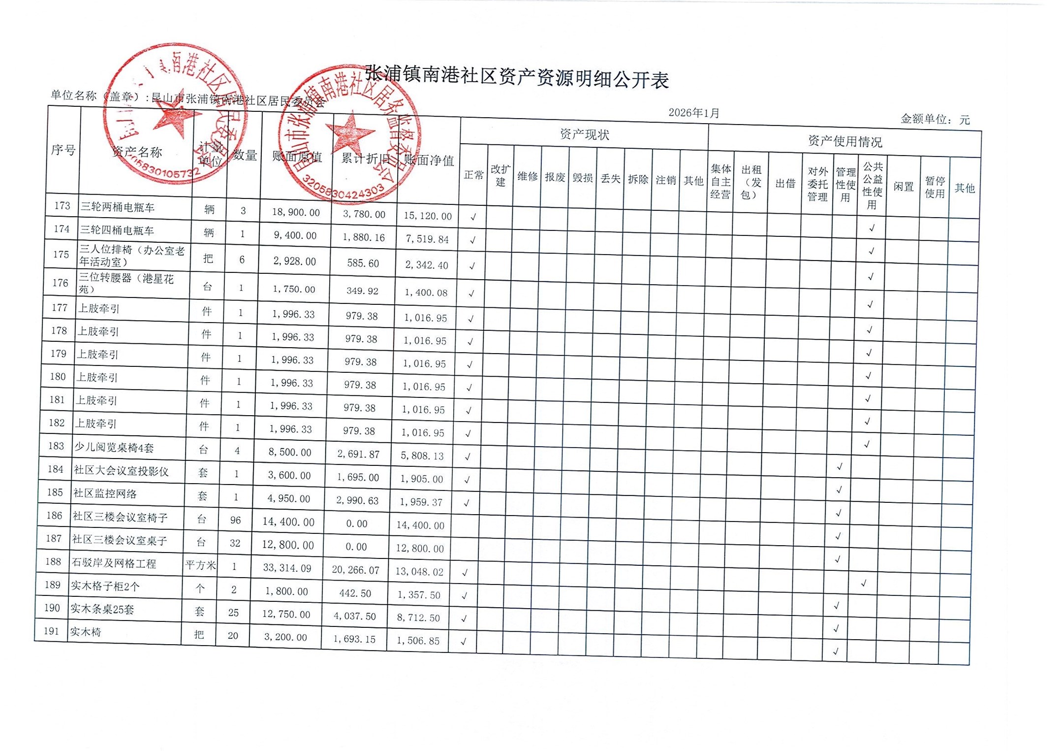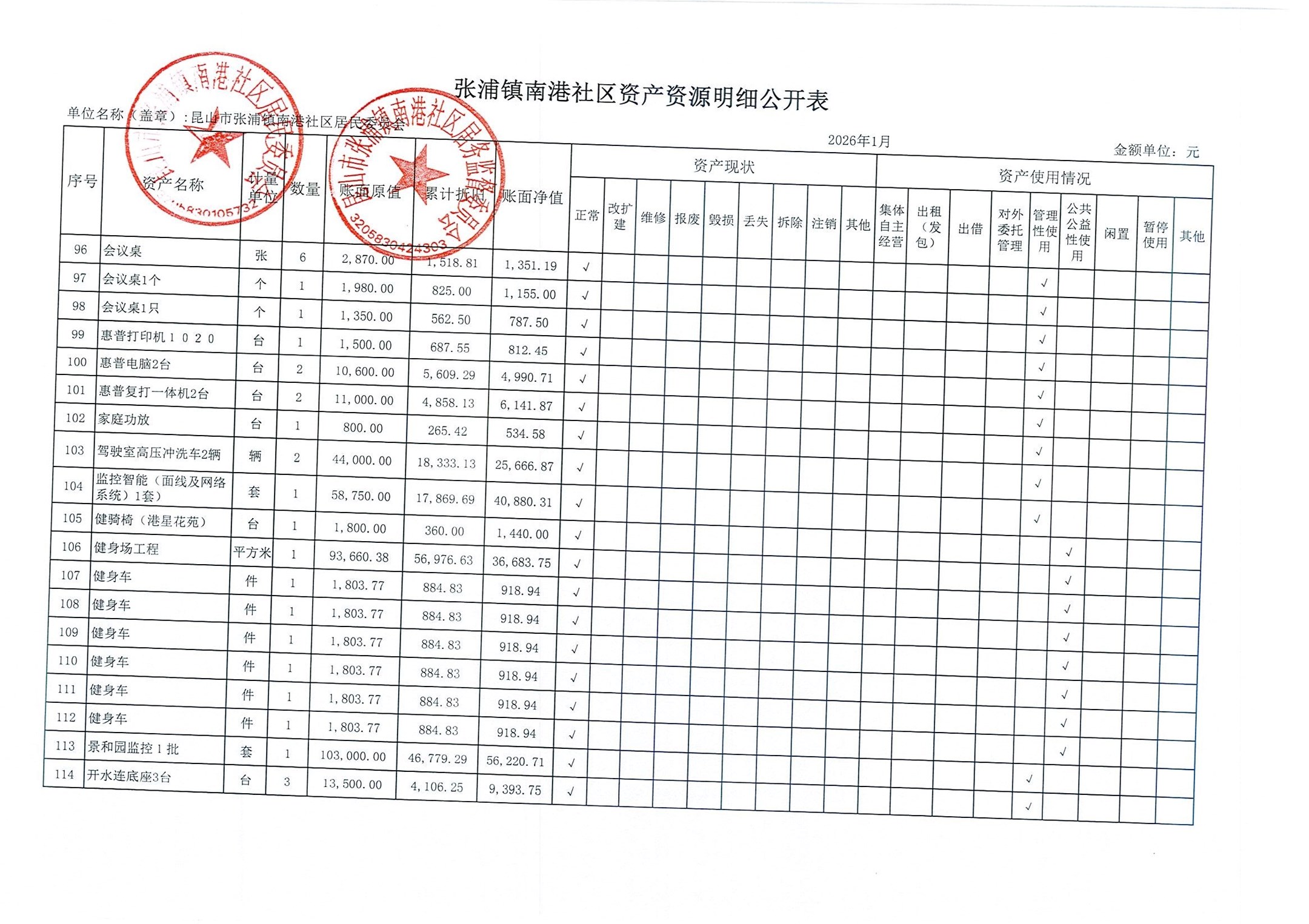 南港社区居委会2026年1月财务公开(定期公开)