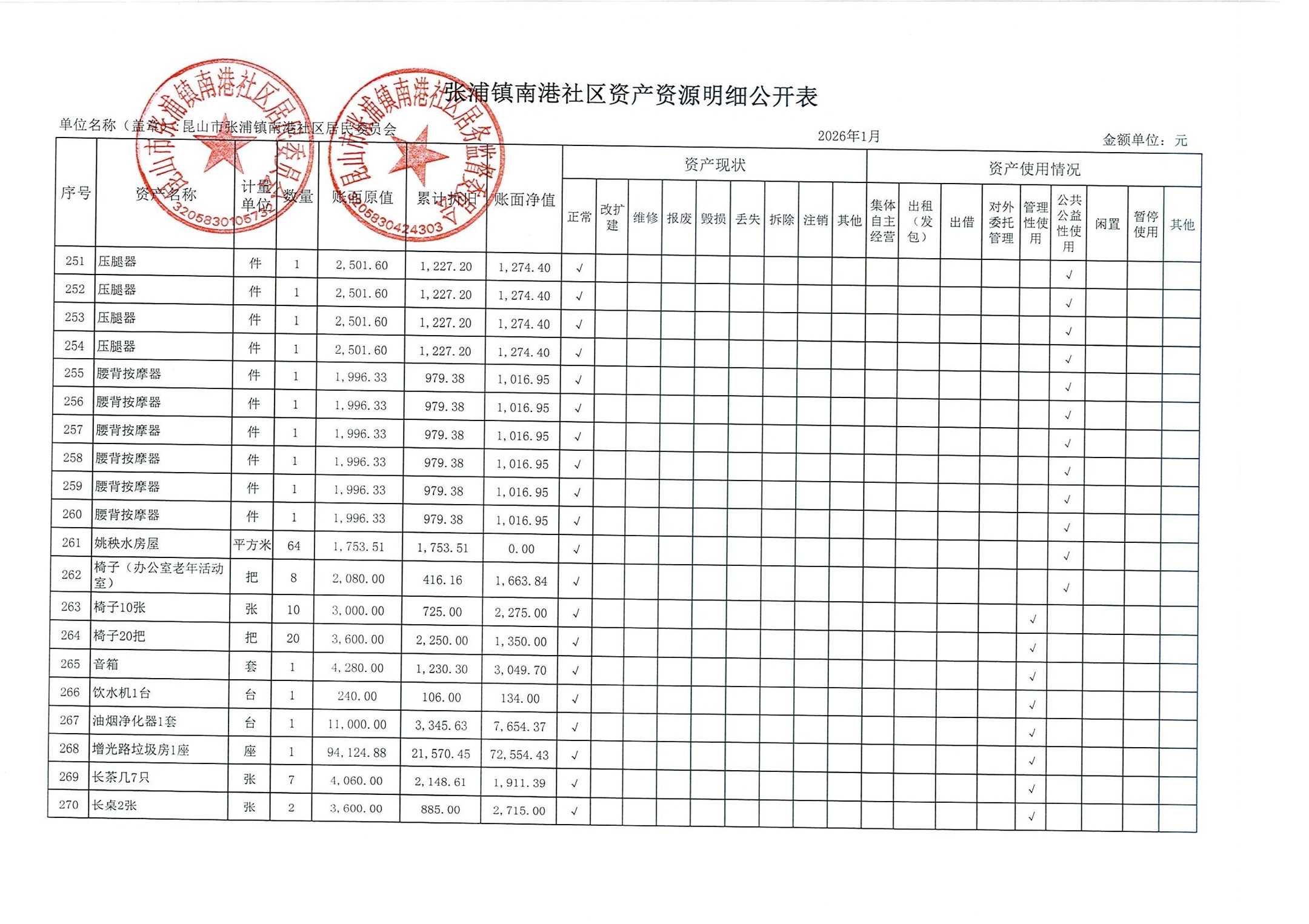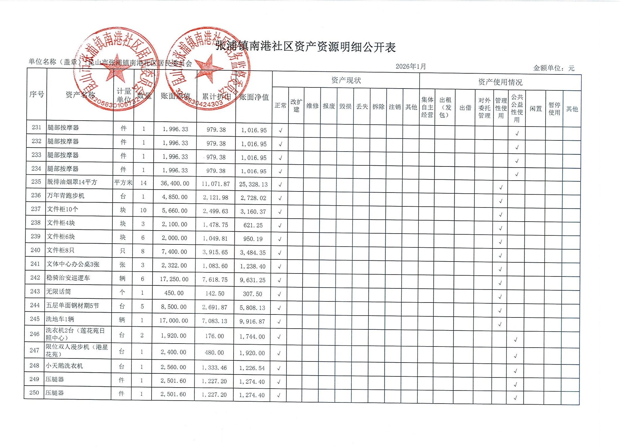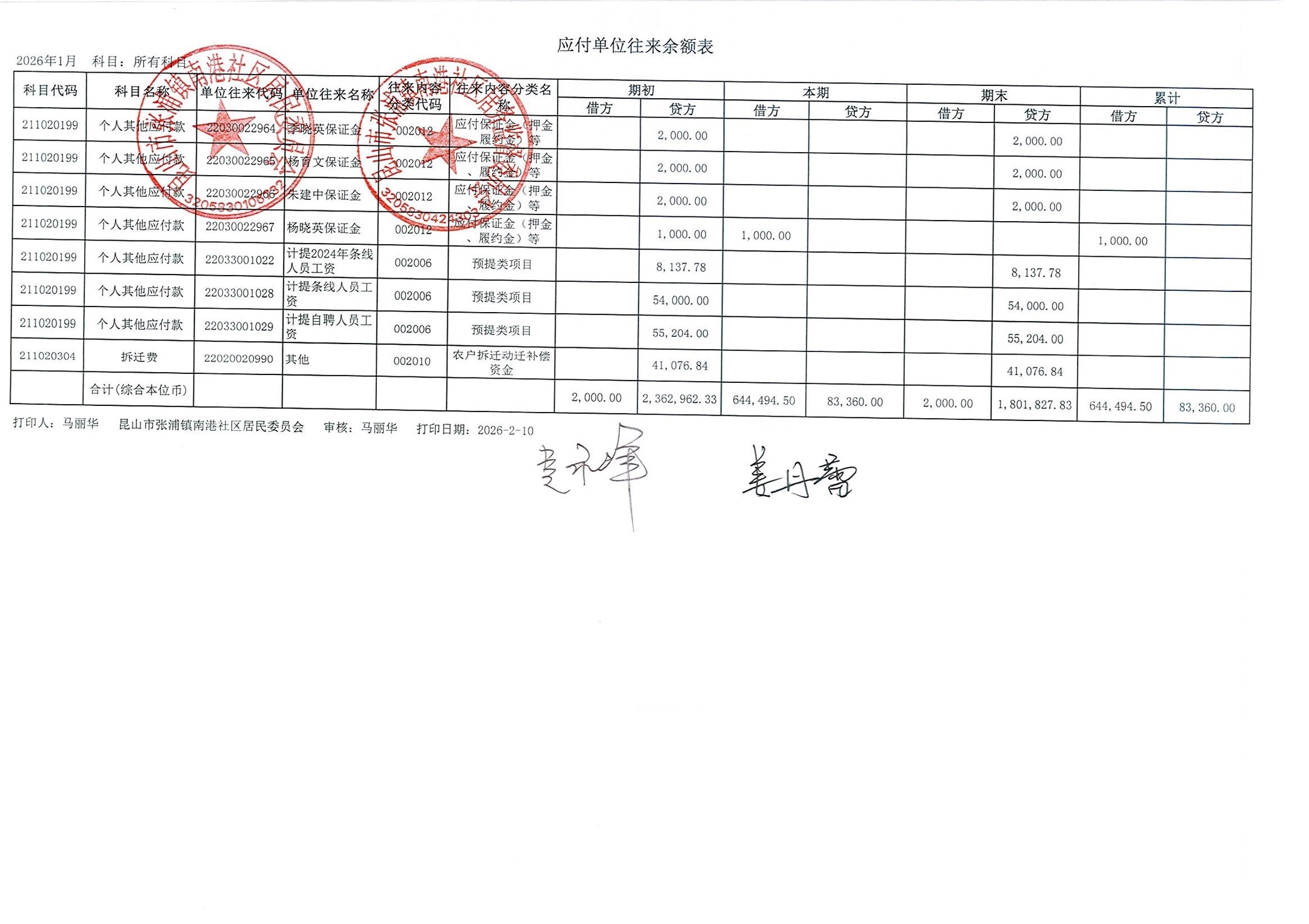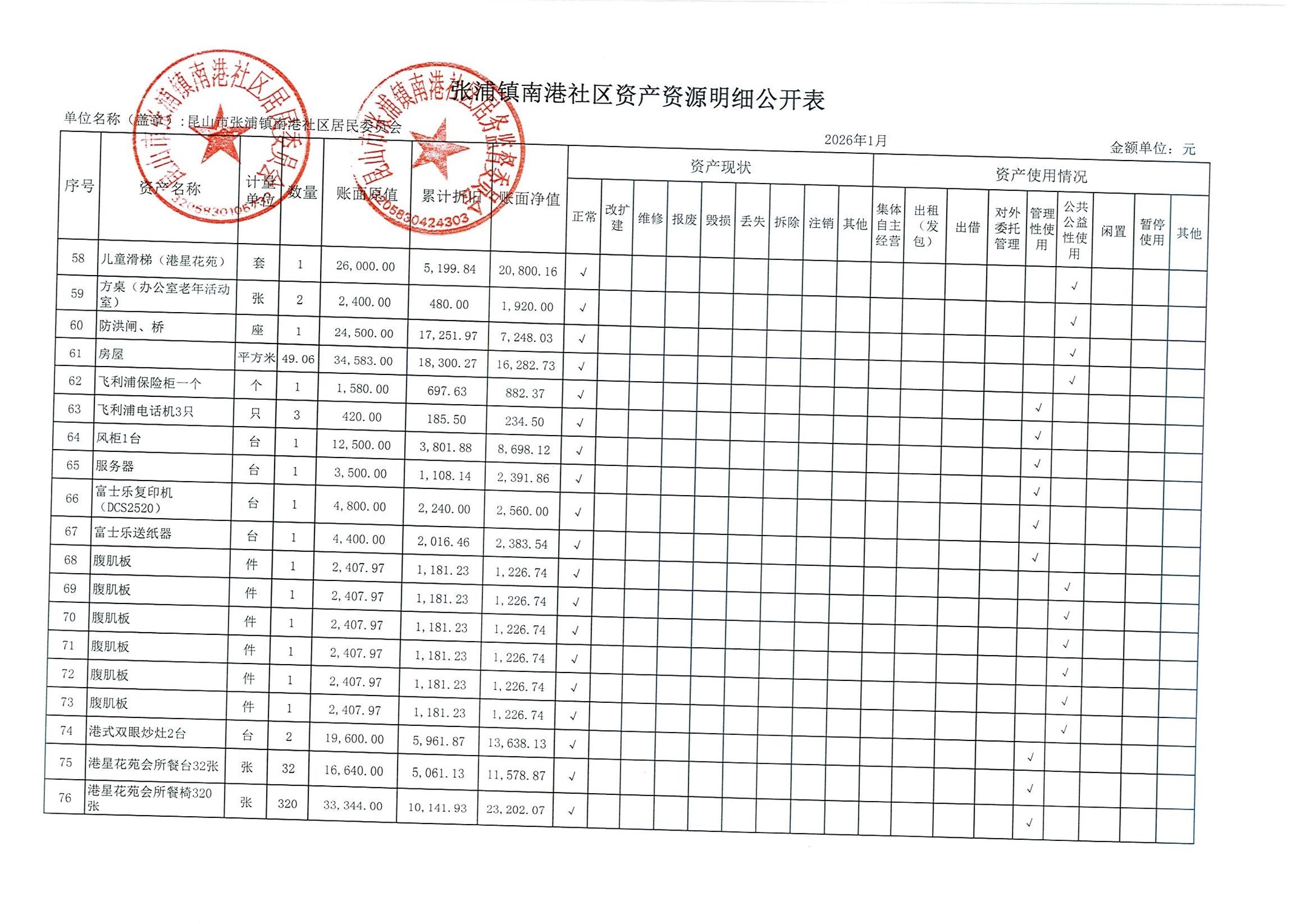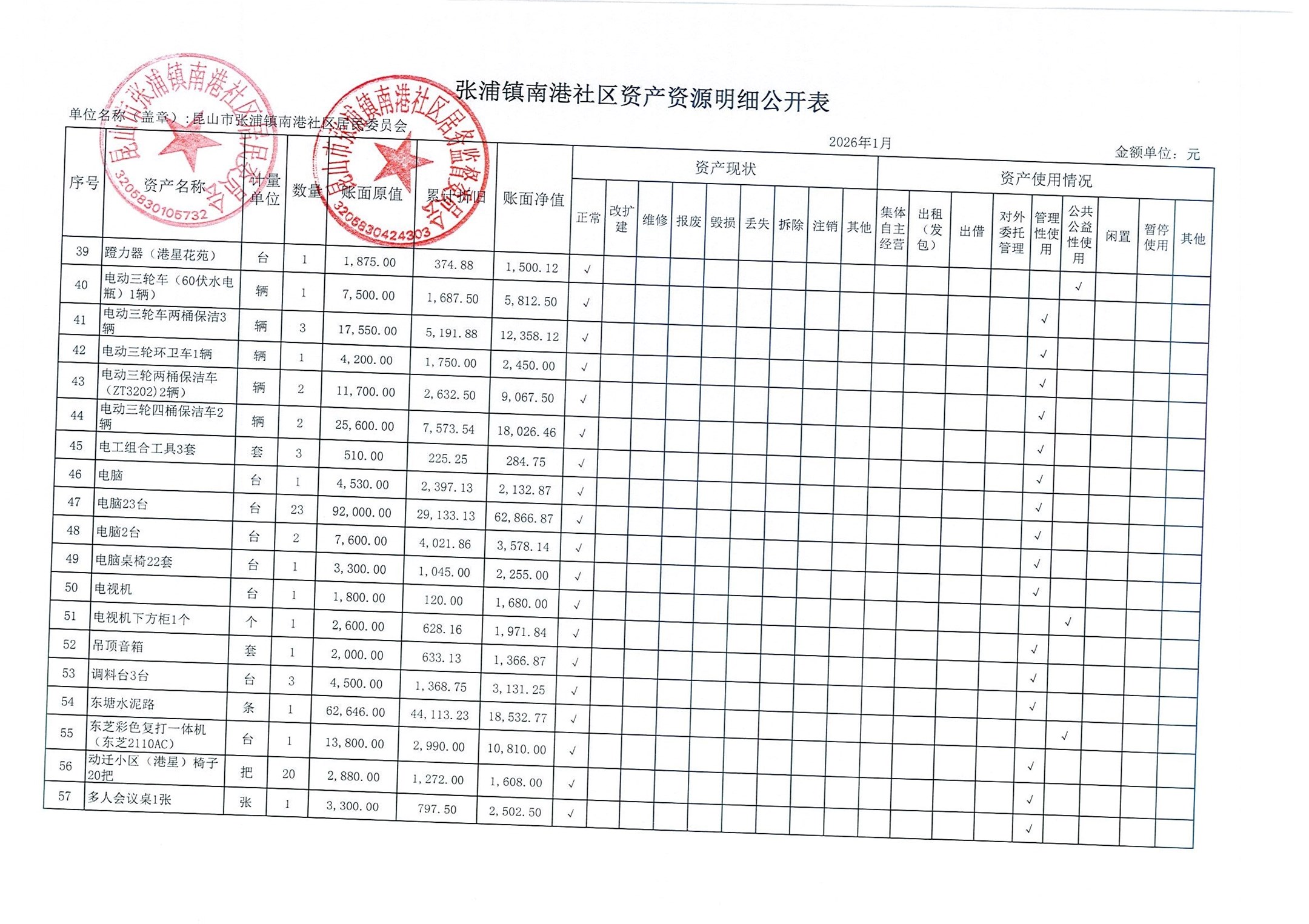 南港社区居委会2026年1月财务公开(定期公开)