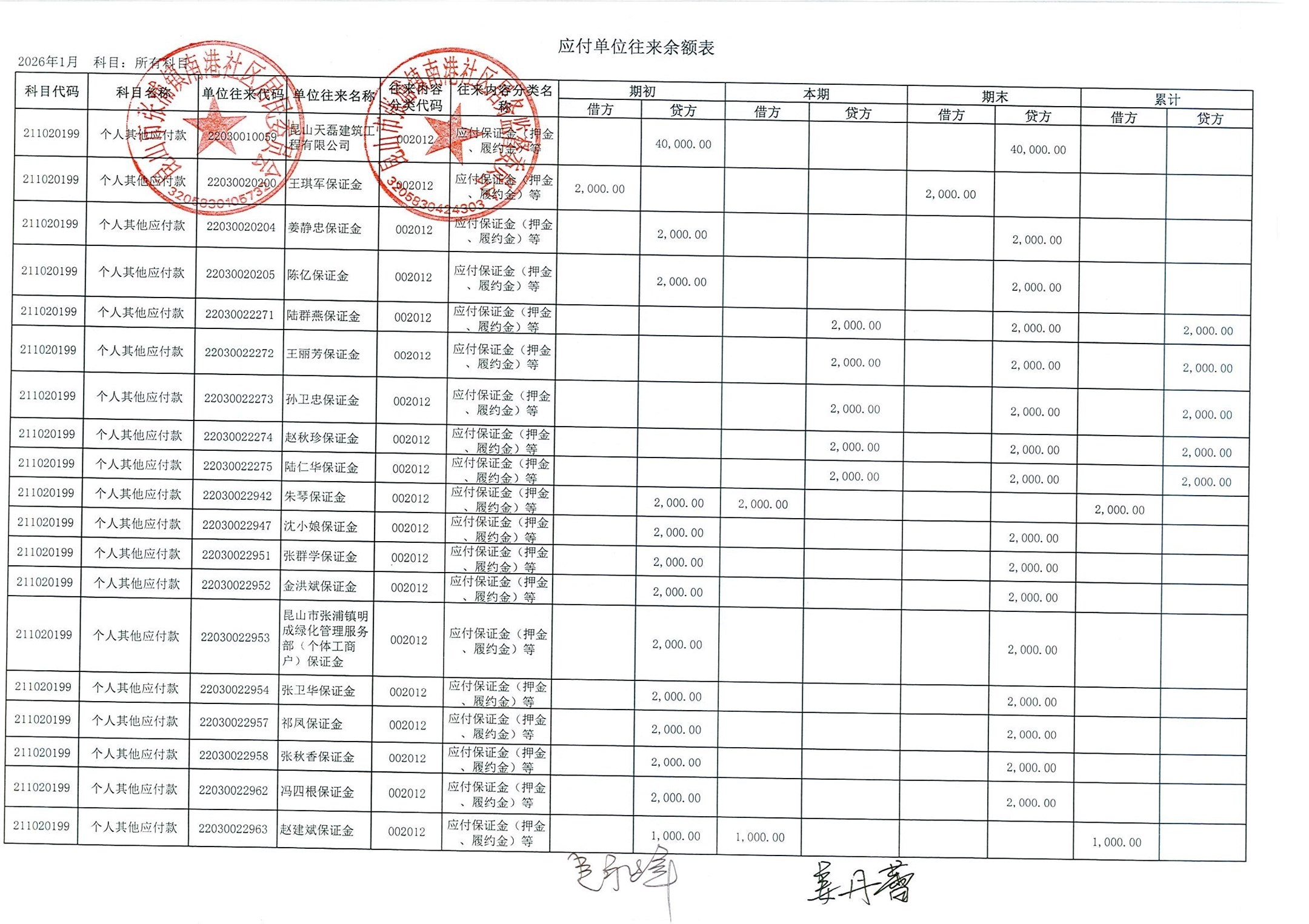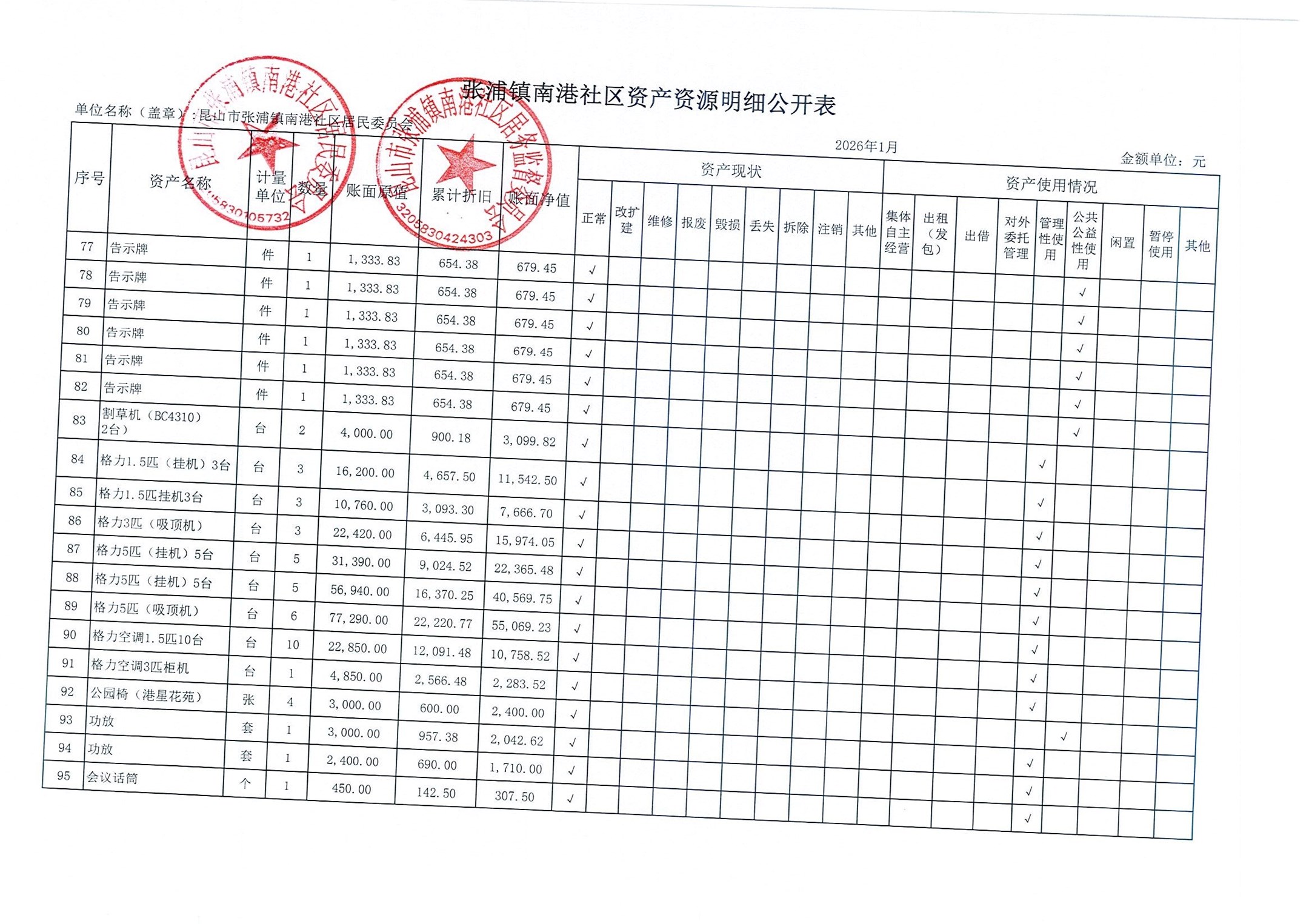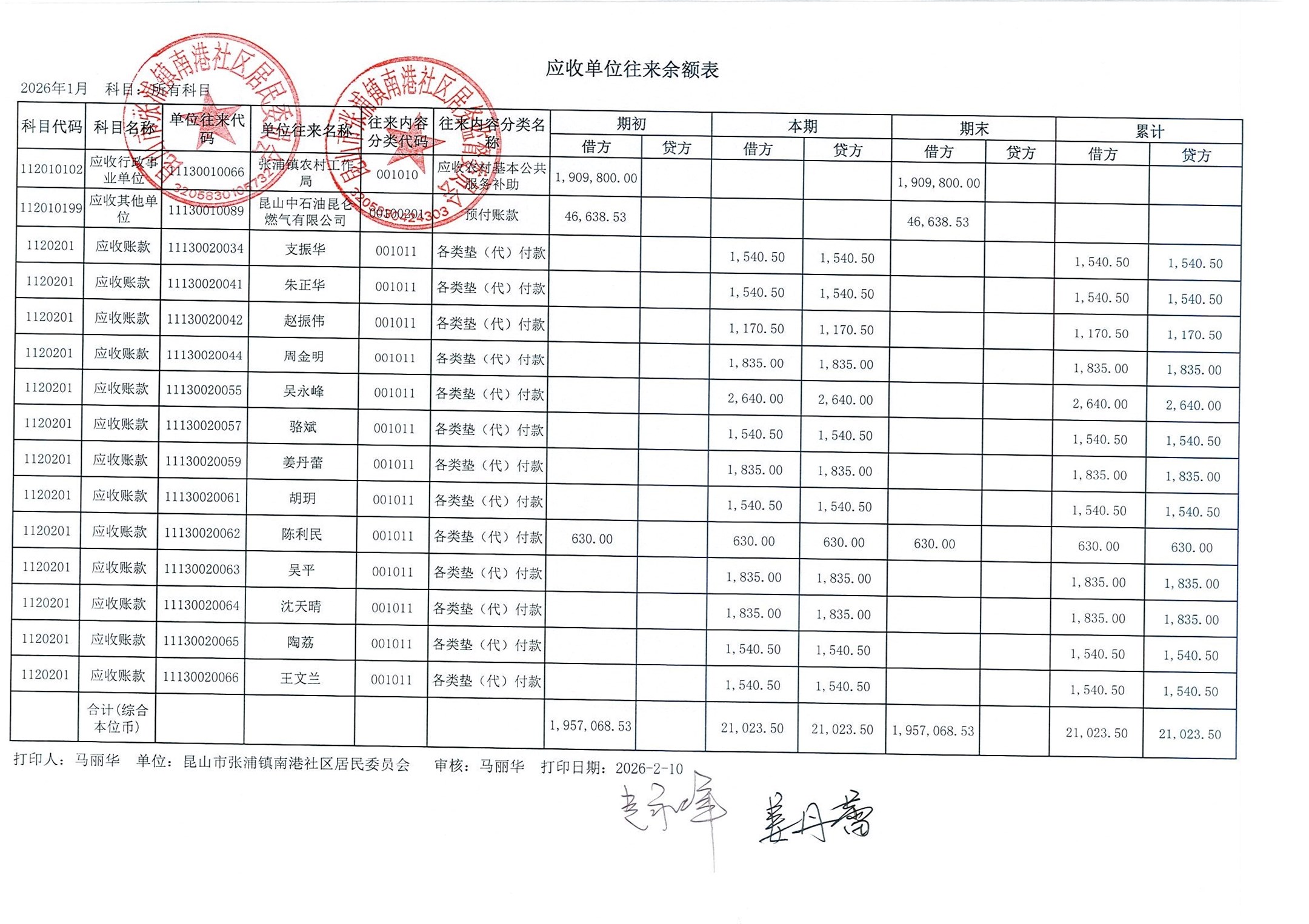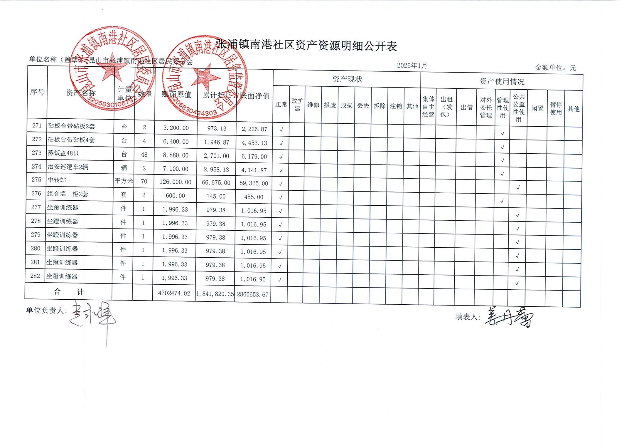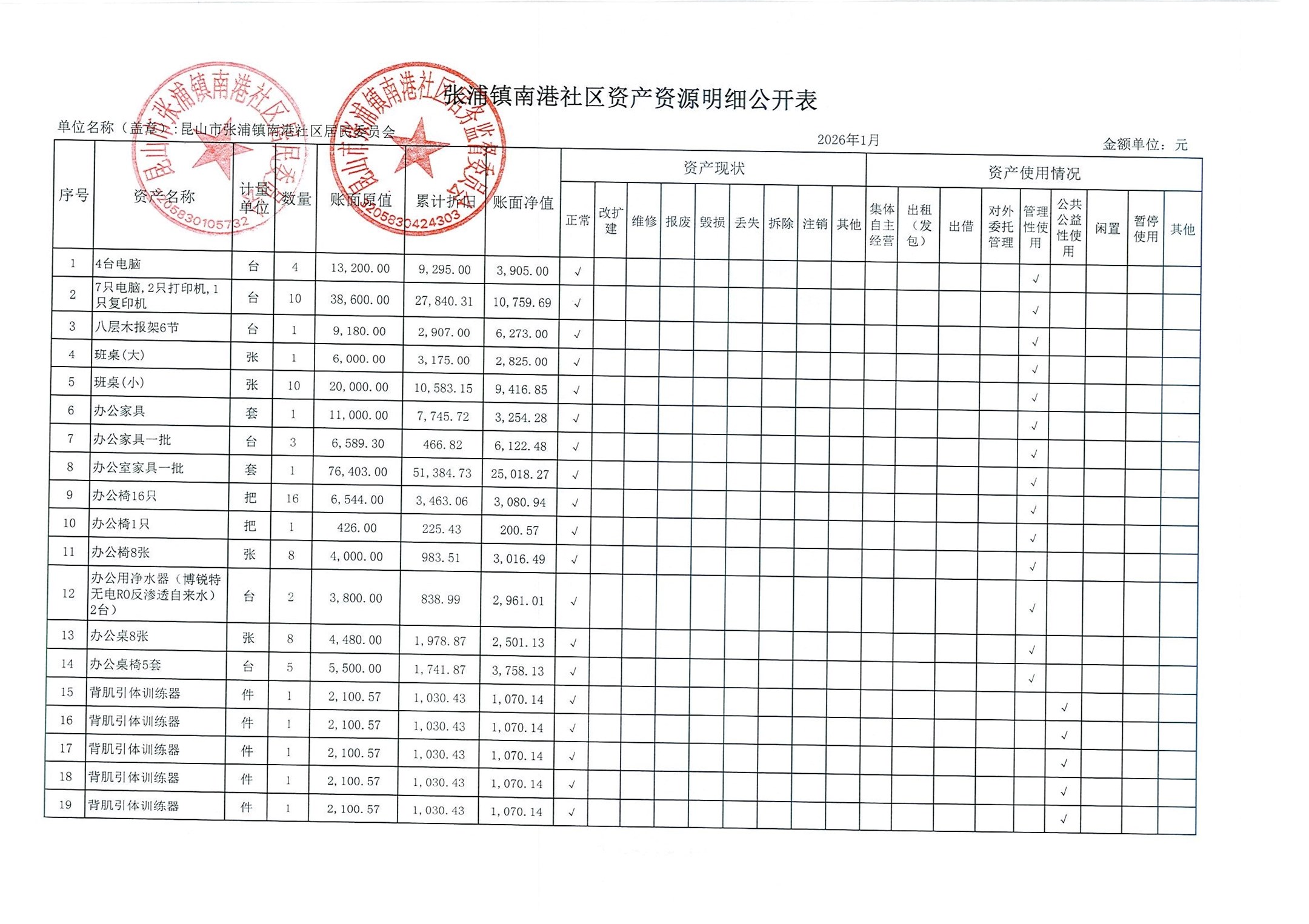 南港社区居委会2026年1月财务公开(定期公开)