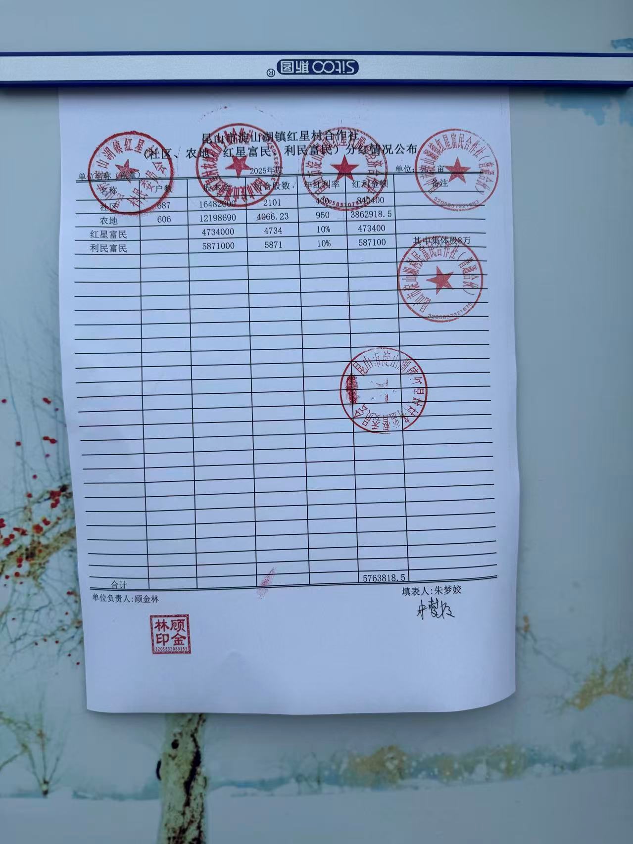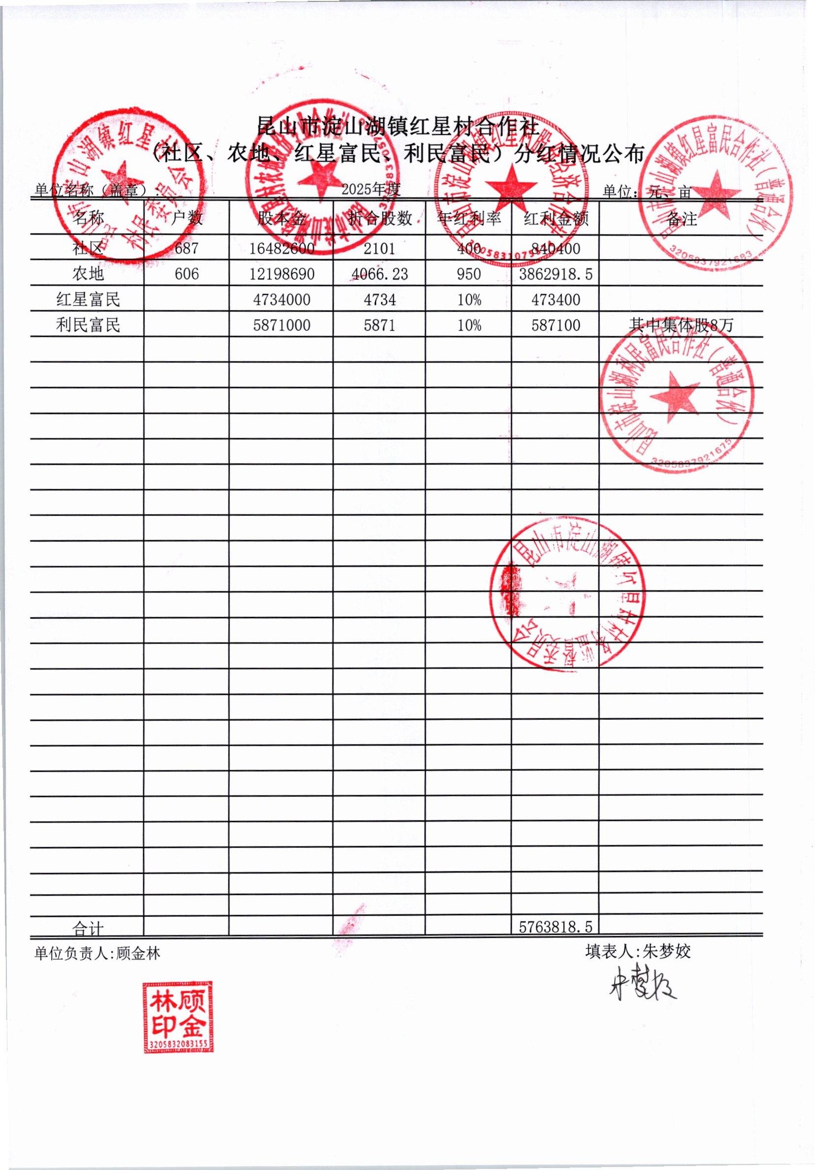 2025年红星村三大合作社分红情况公示