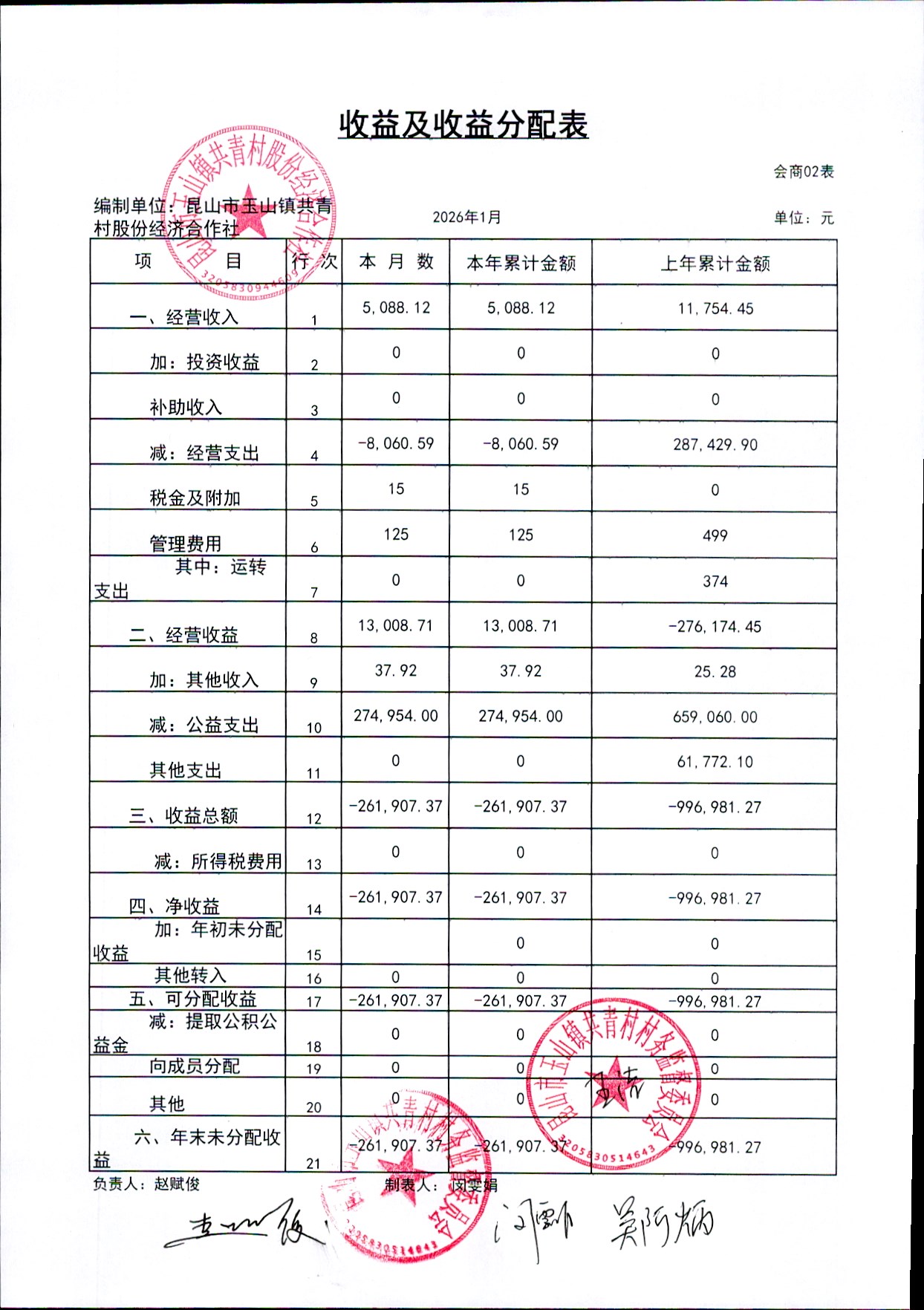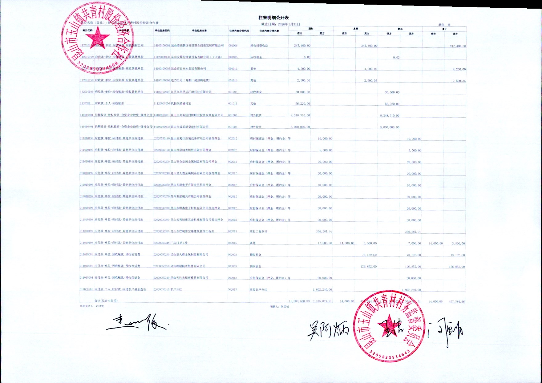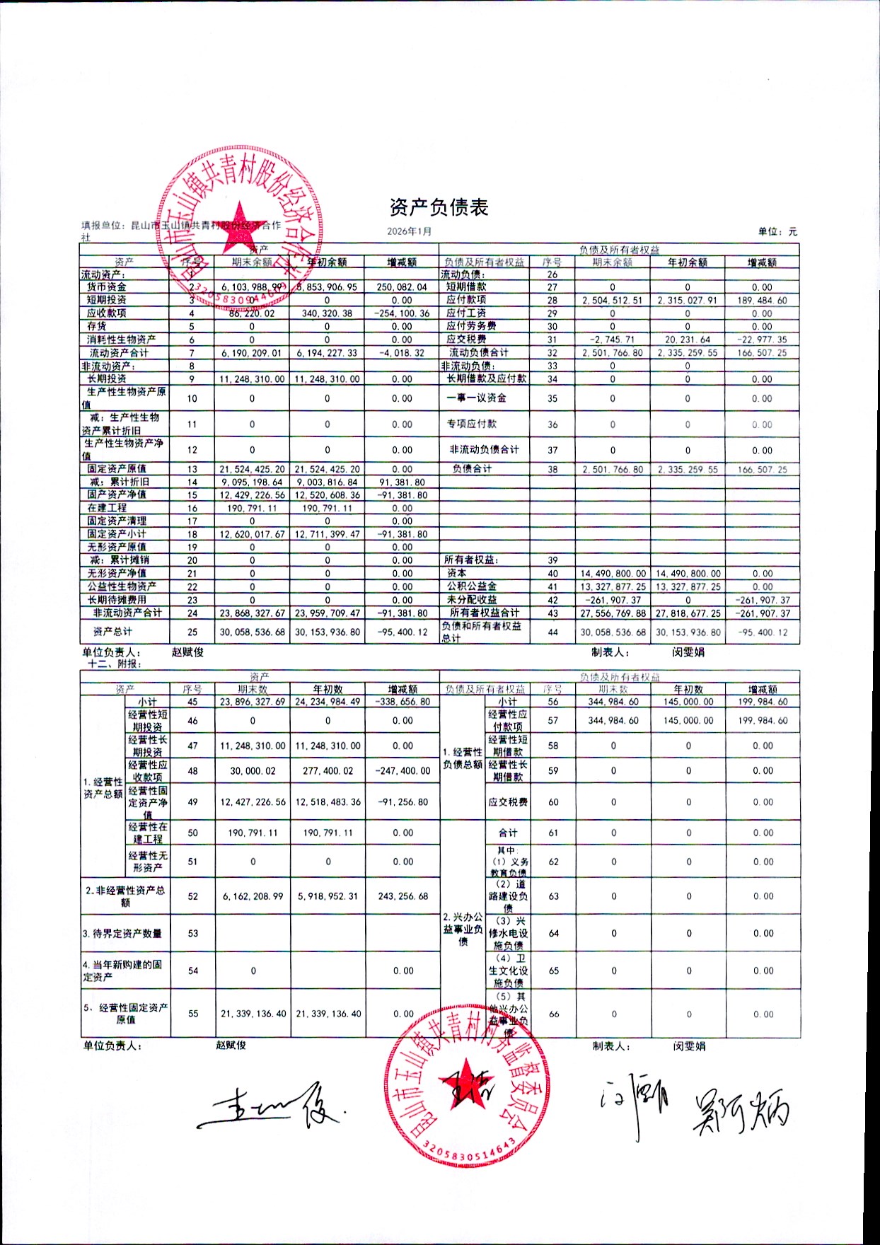 2026年2月共青村经济合作社财务公开