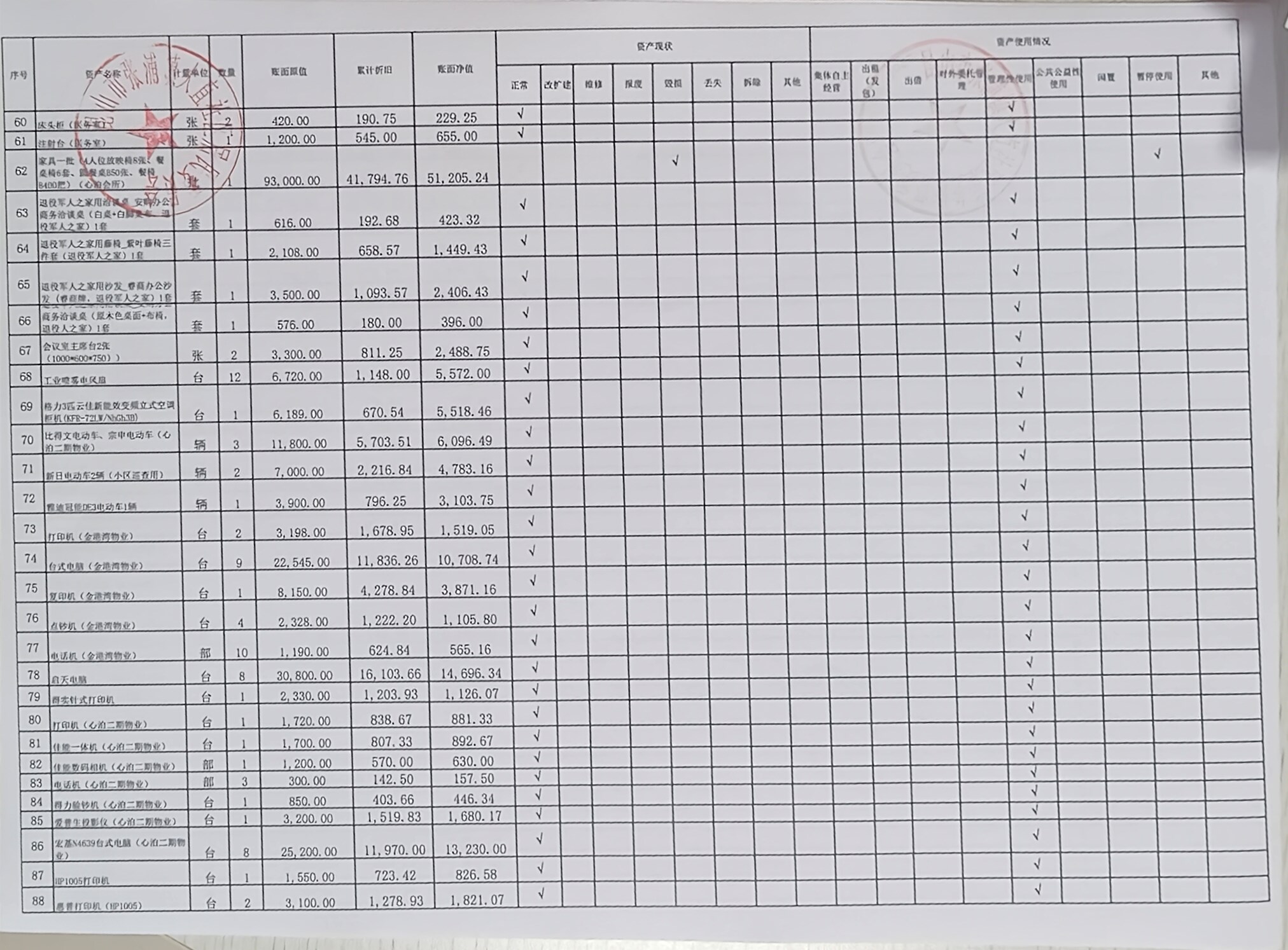 村盖章事项名录