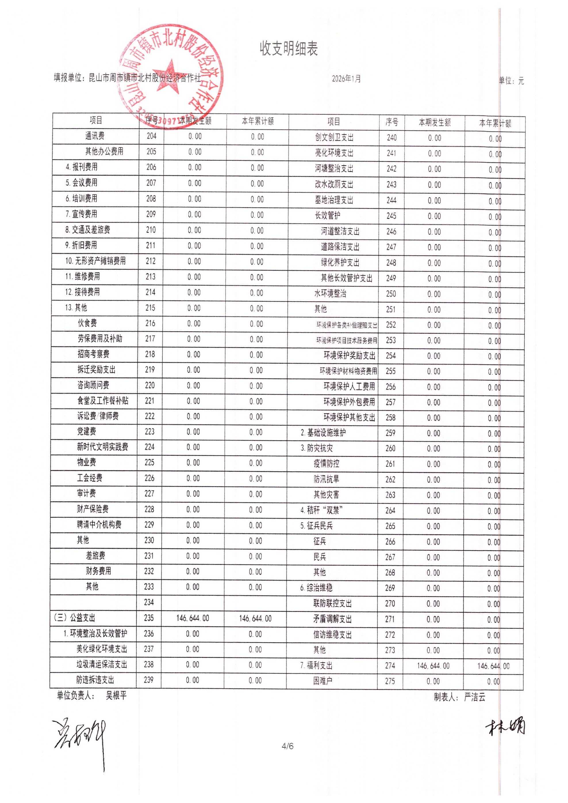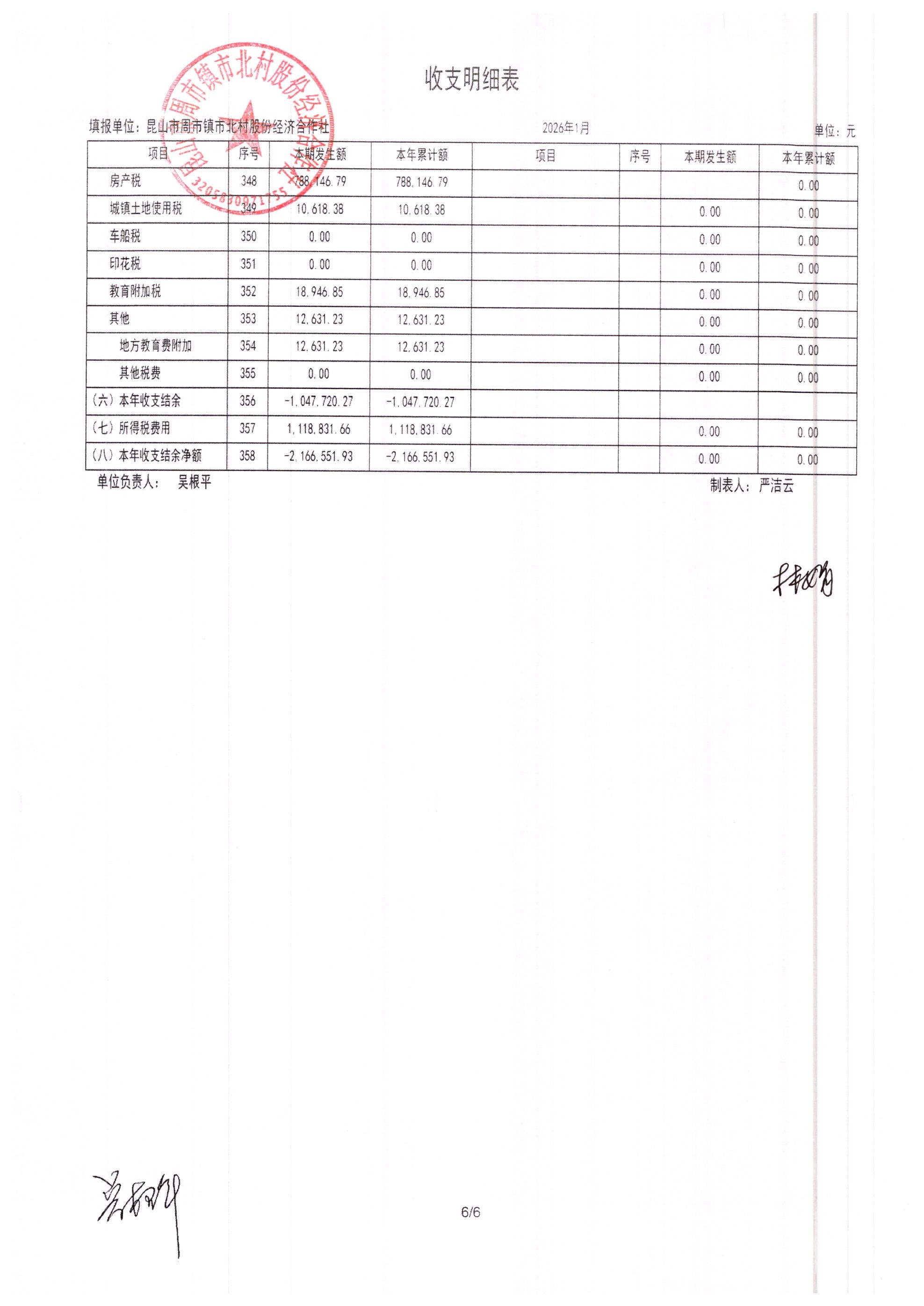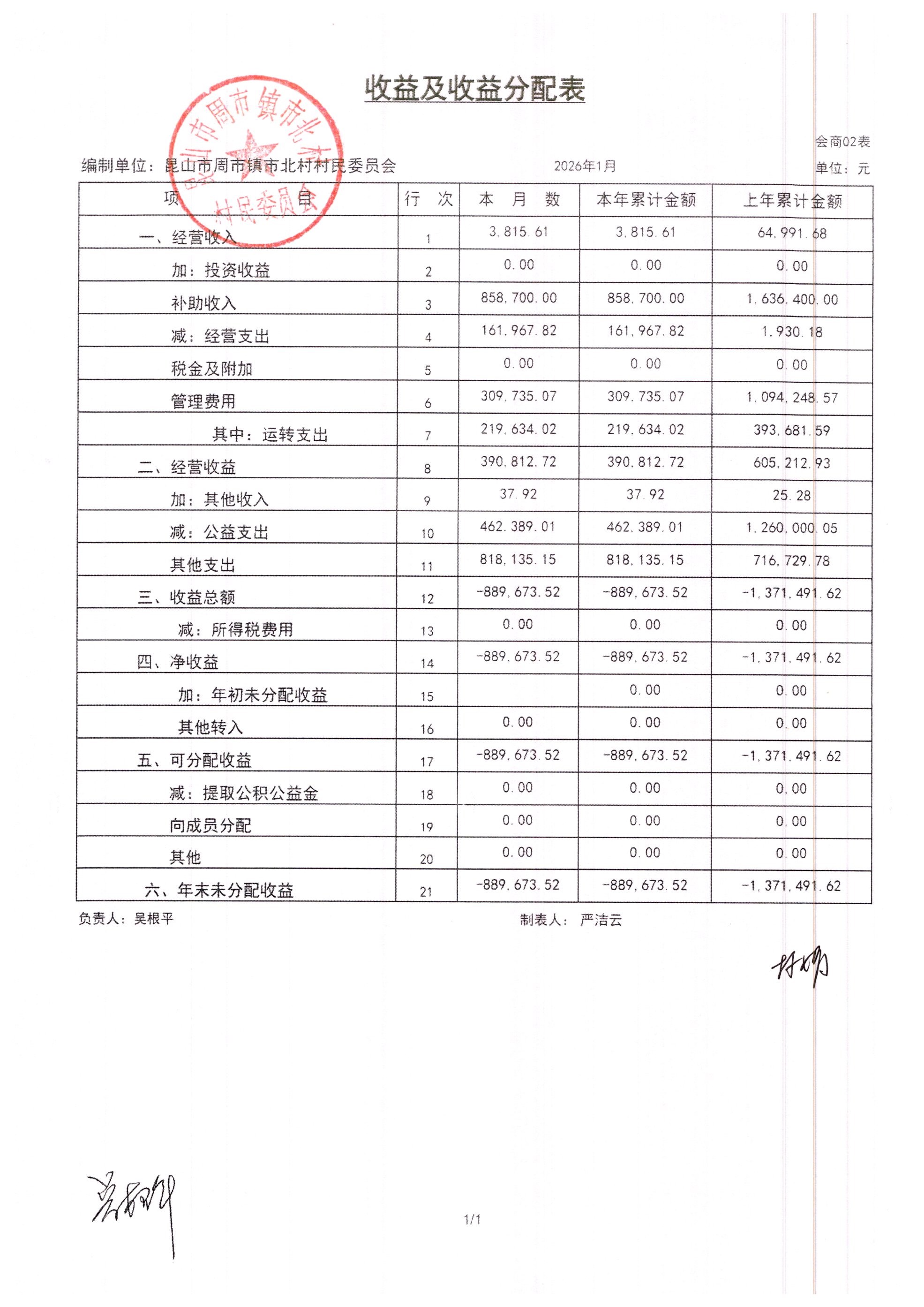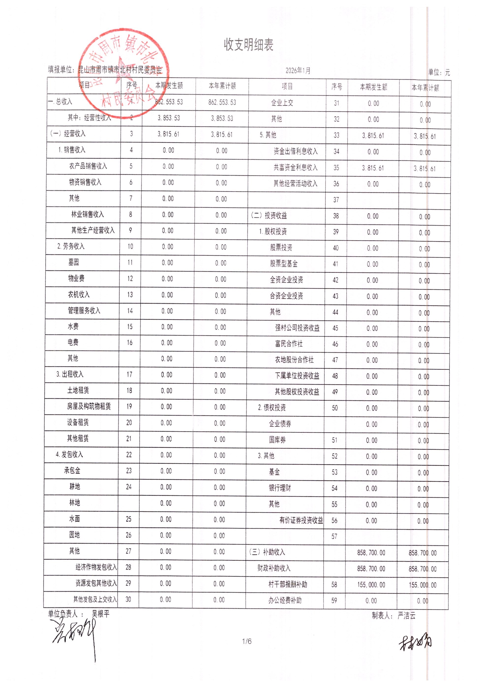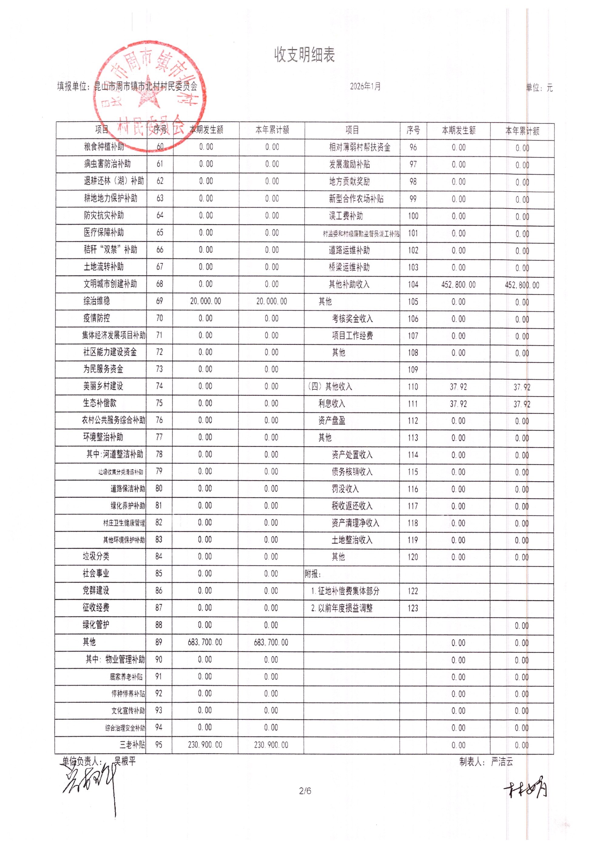 市北村2026年2月财务公开