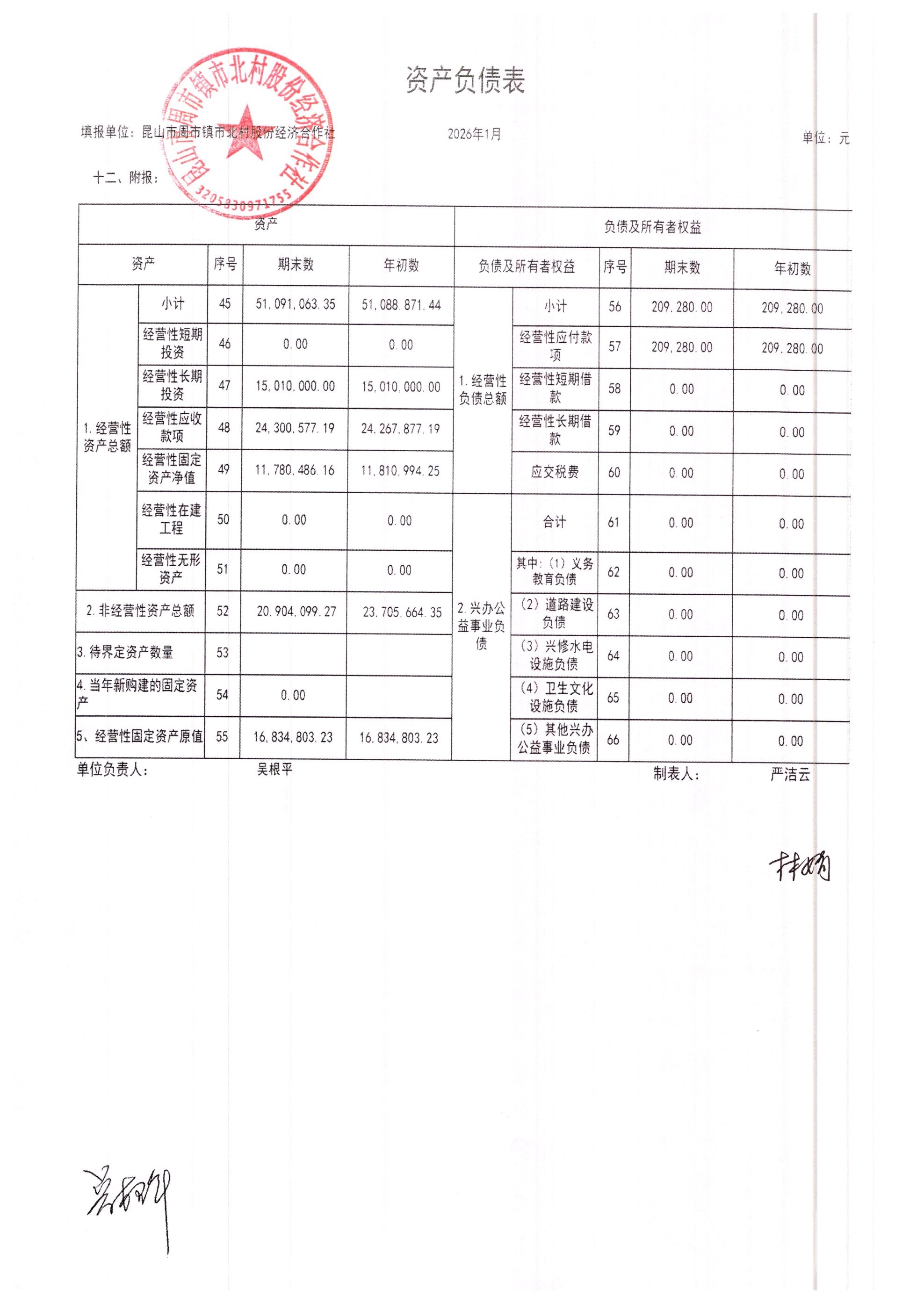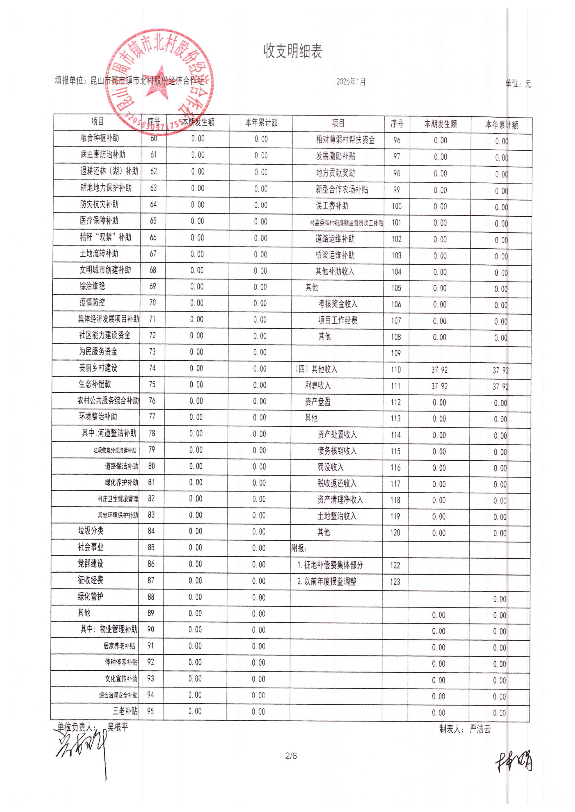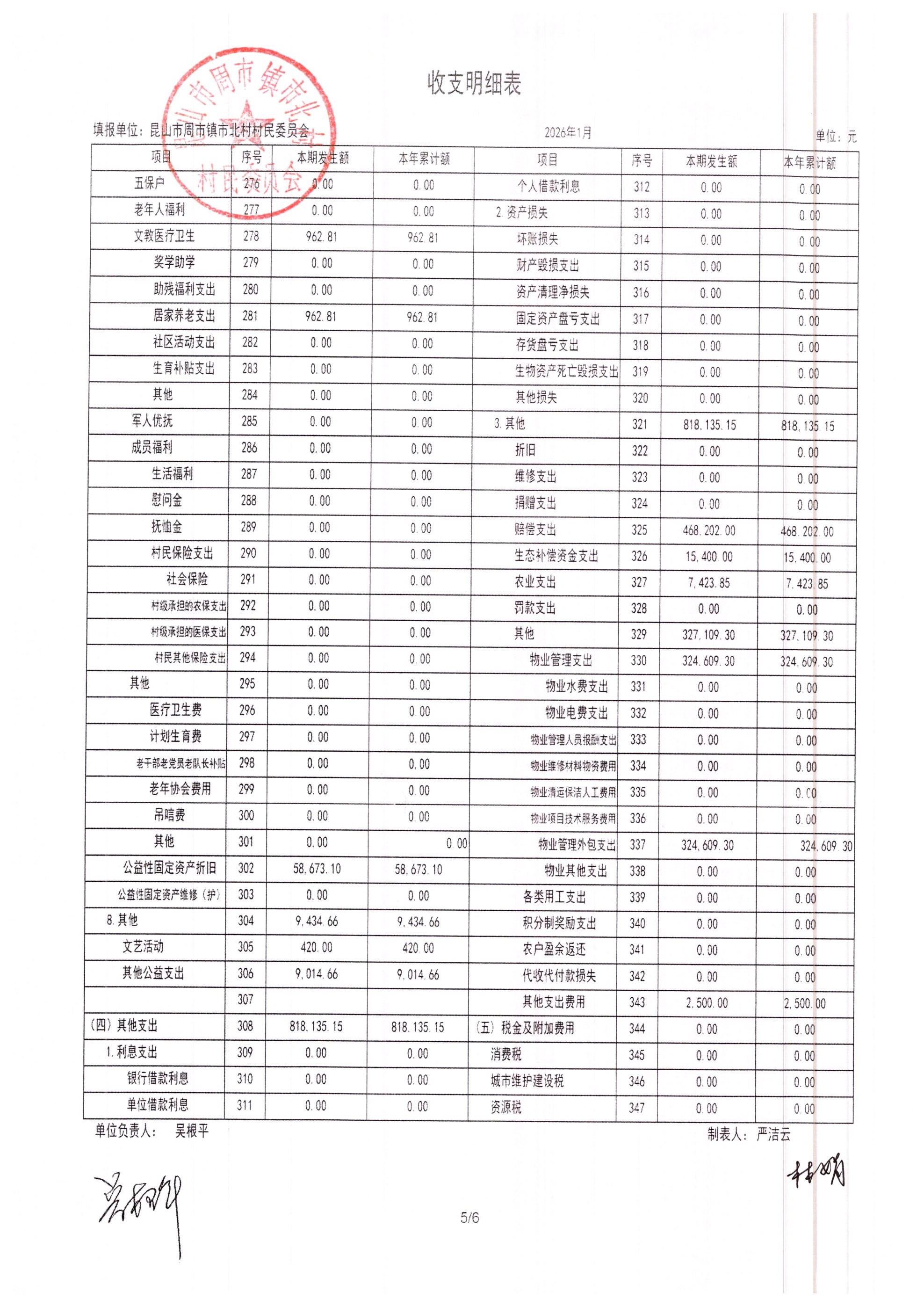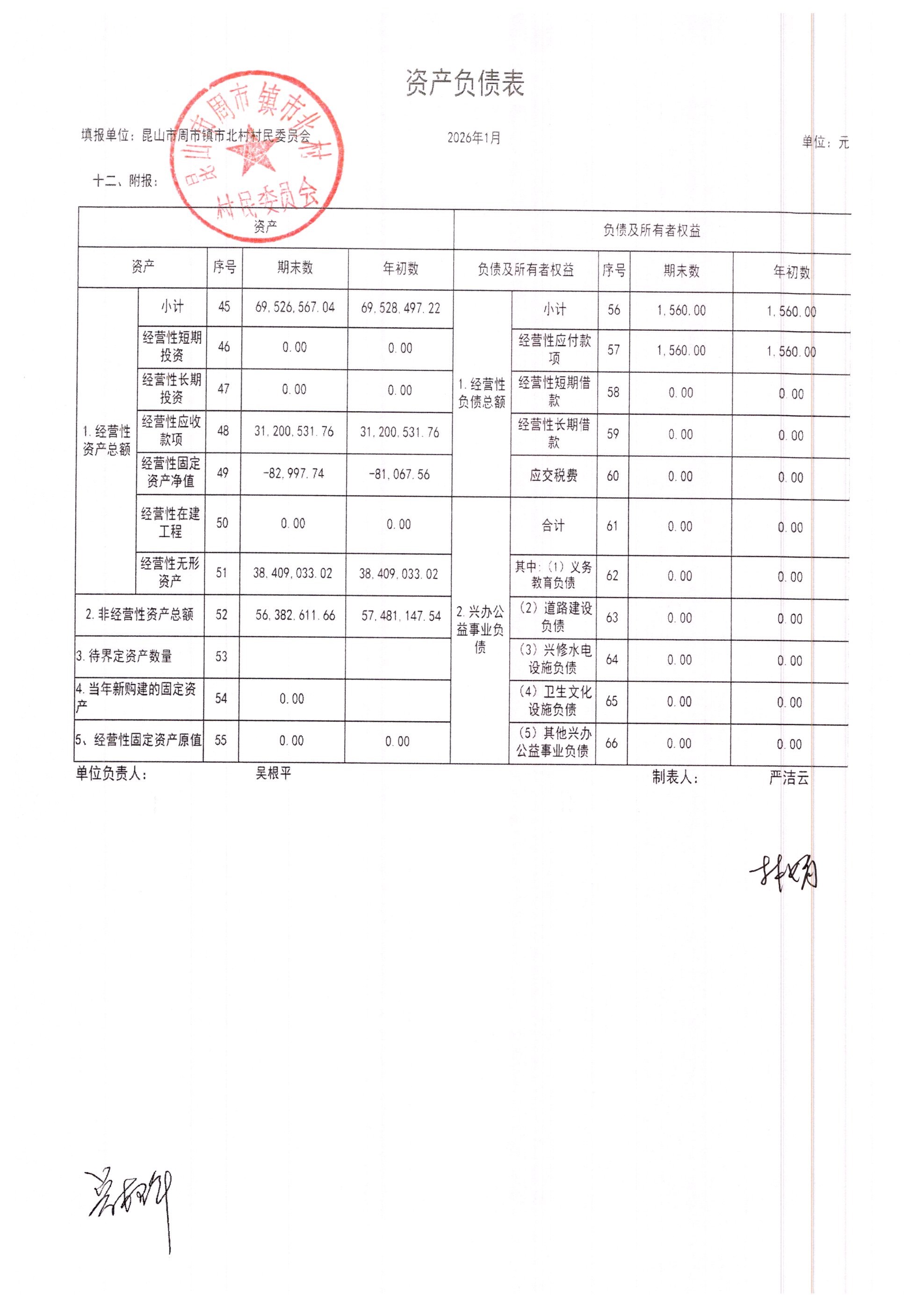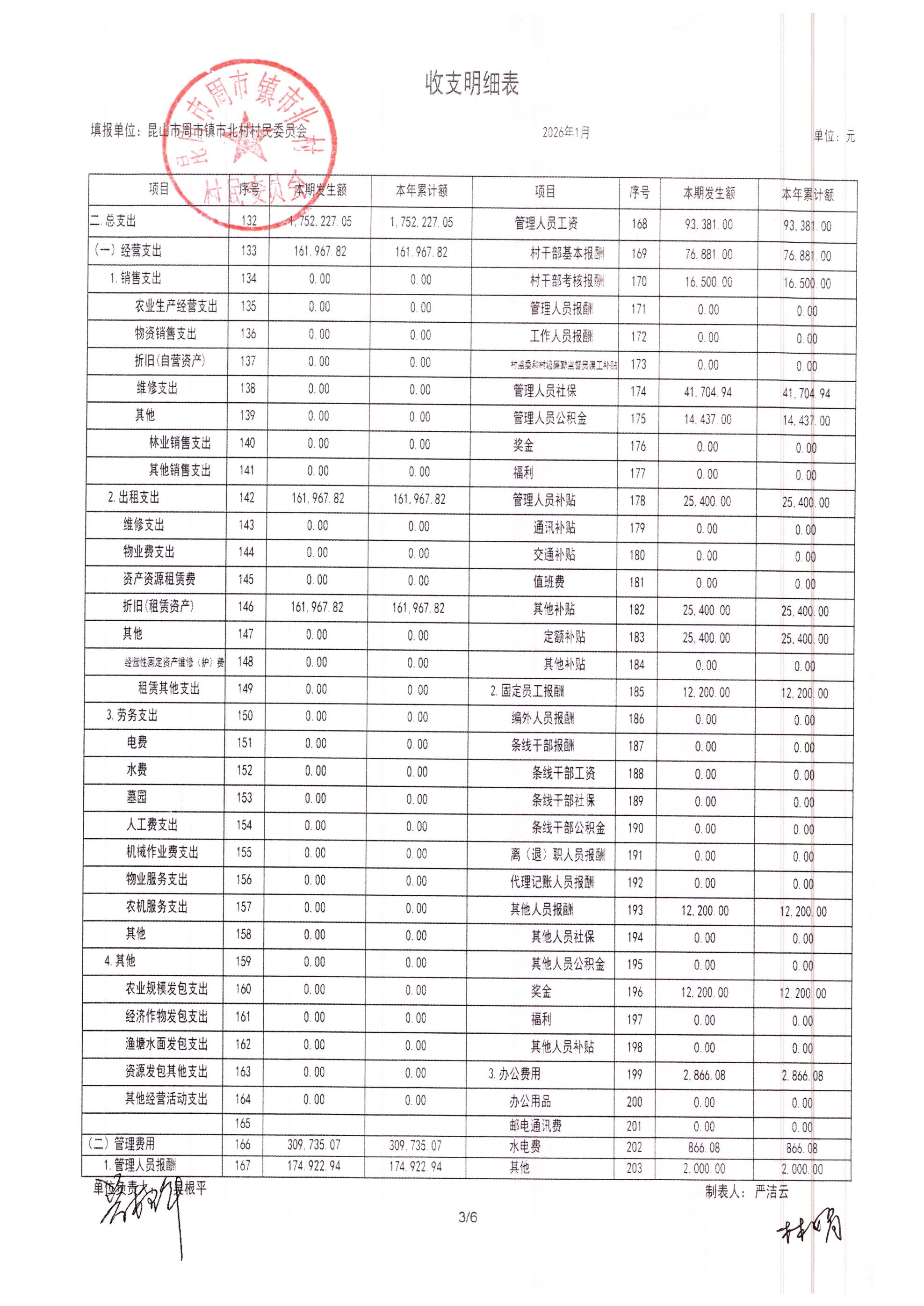 市北村2026年2月财务公开
