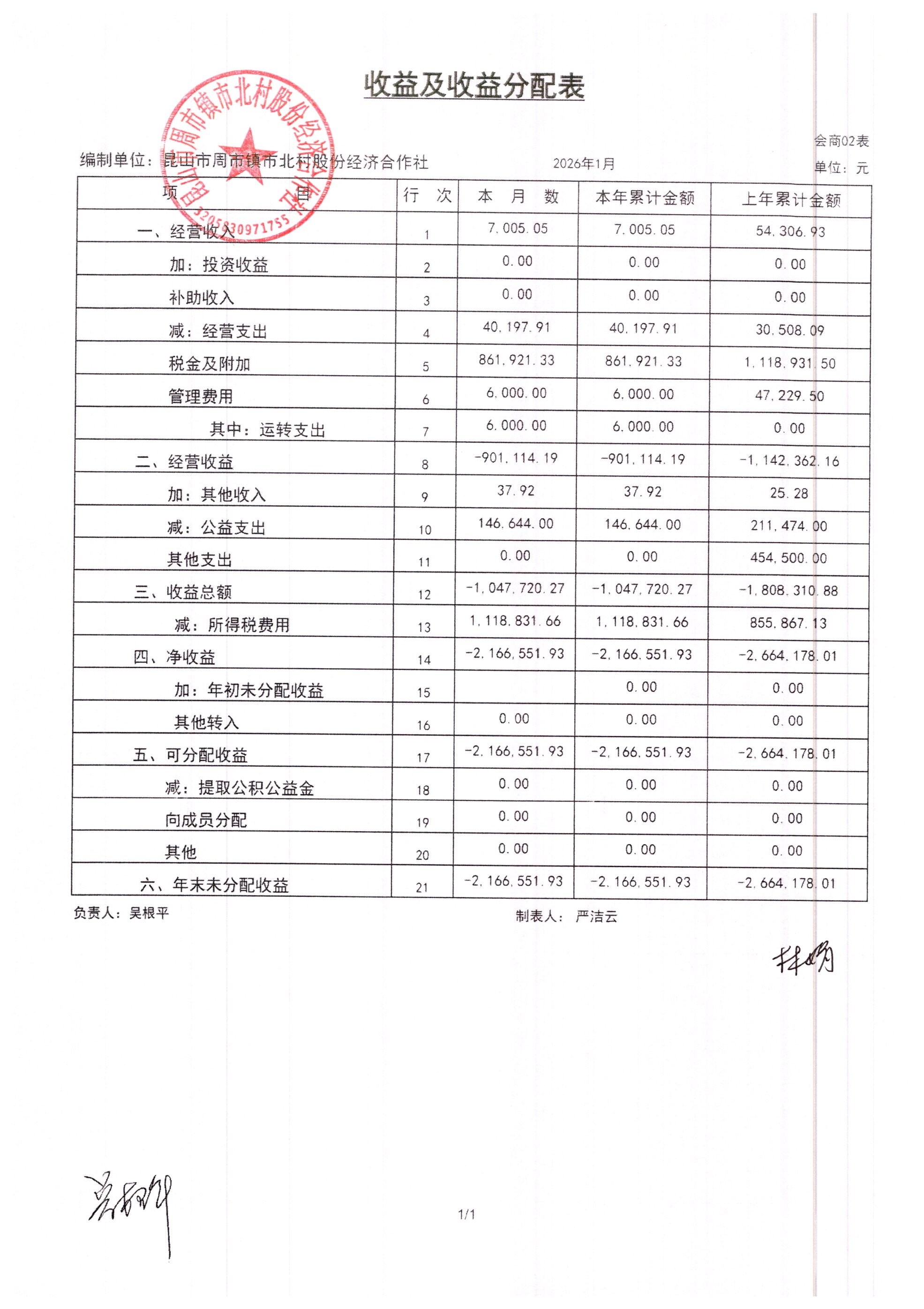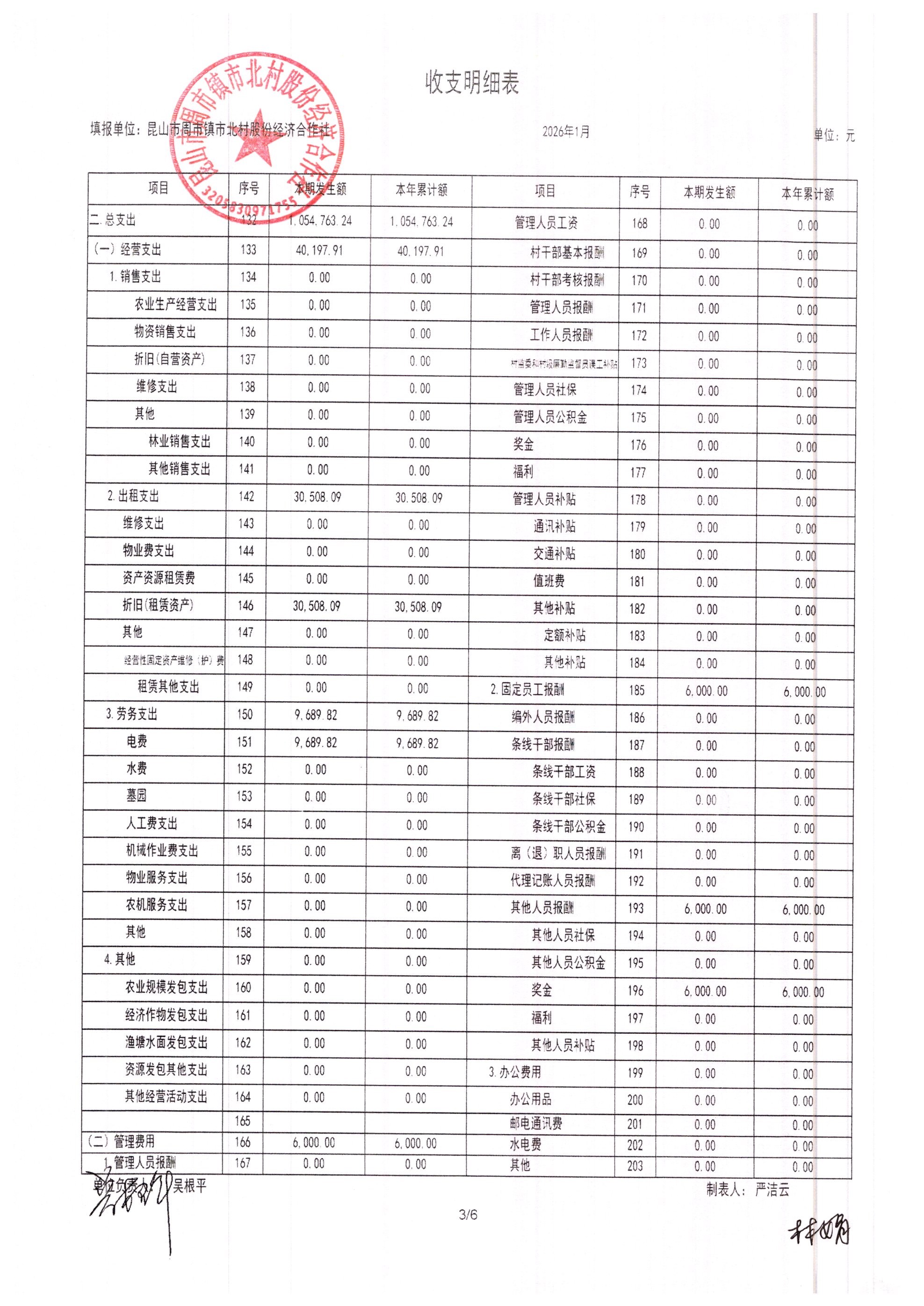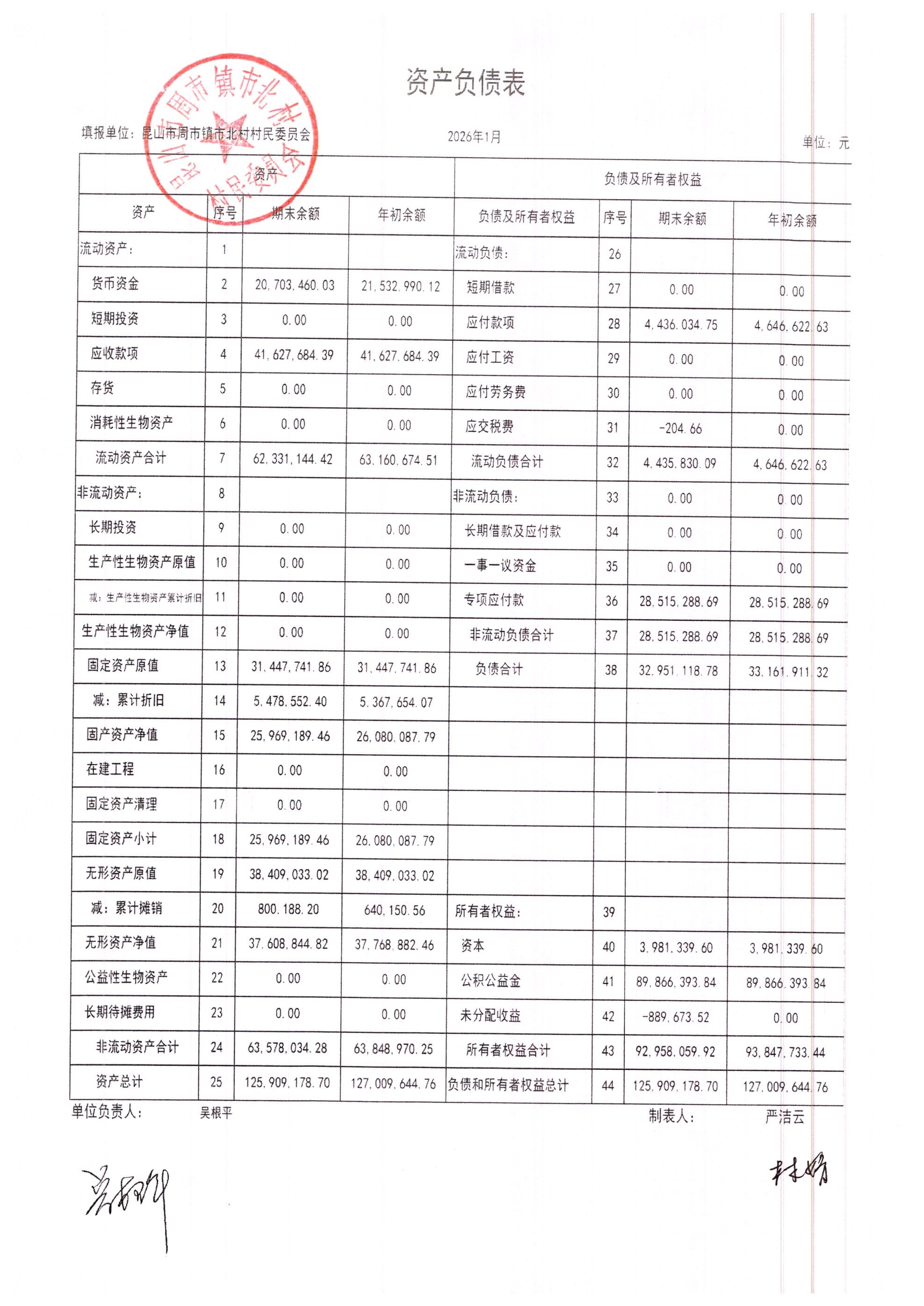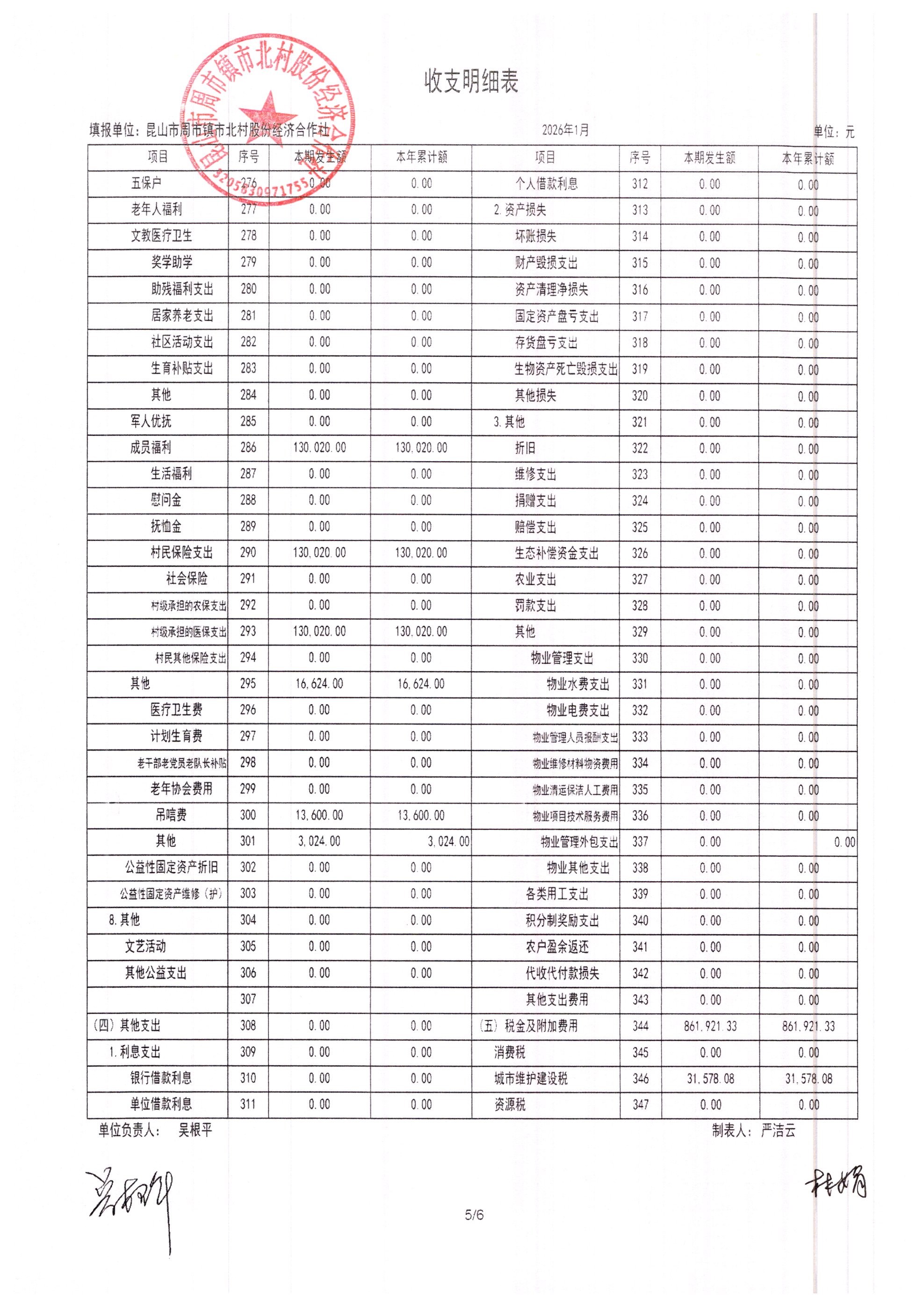 市北村2026年2月财务公开