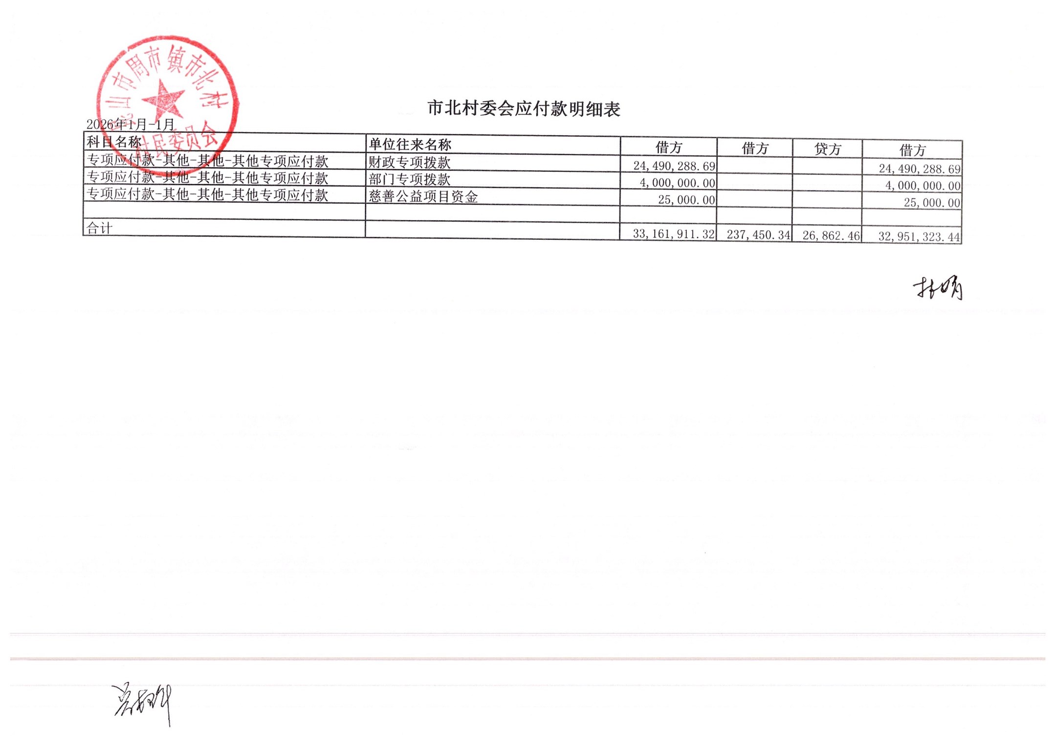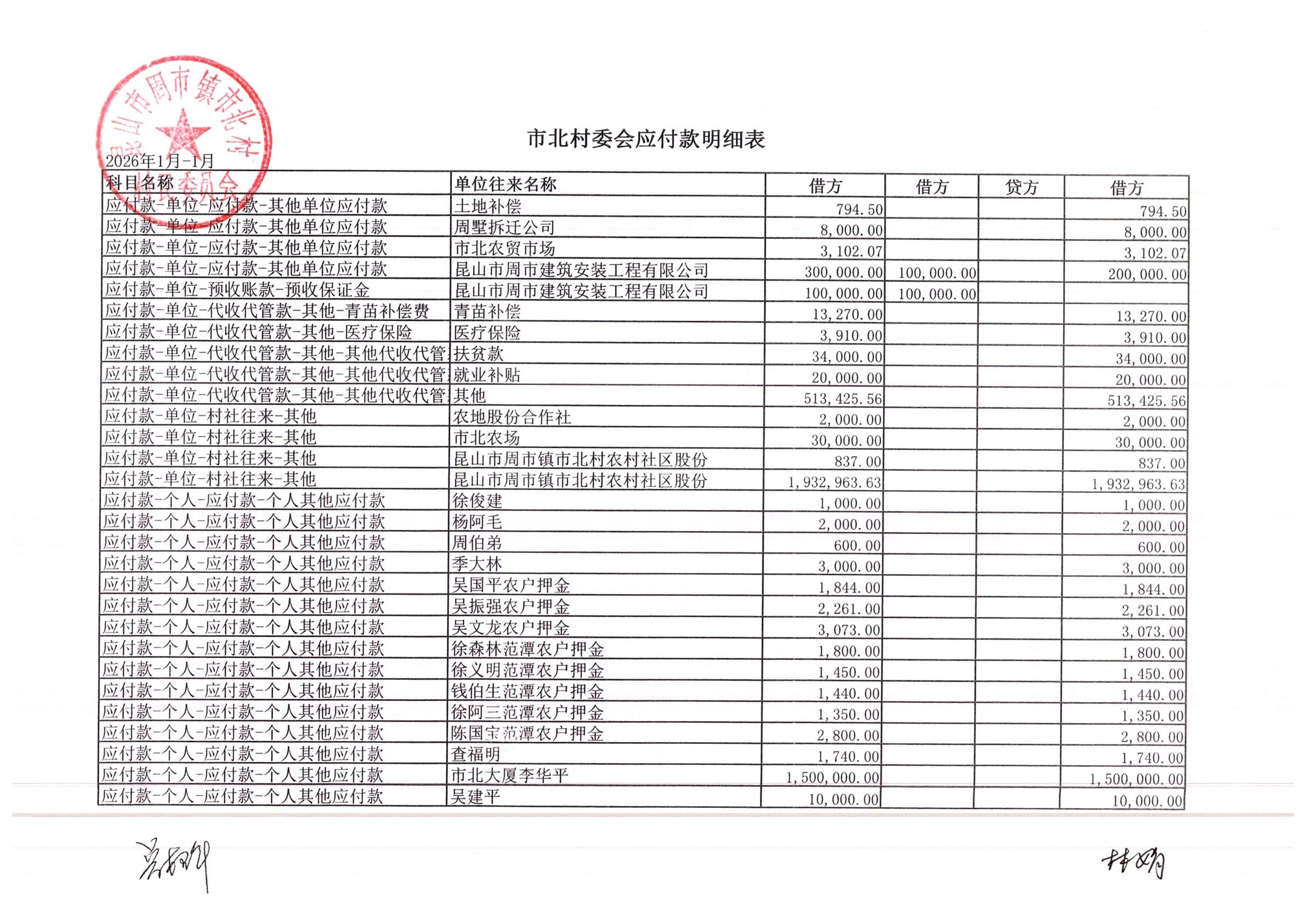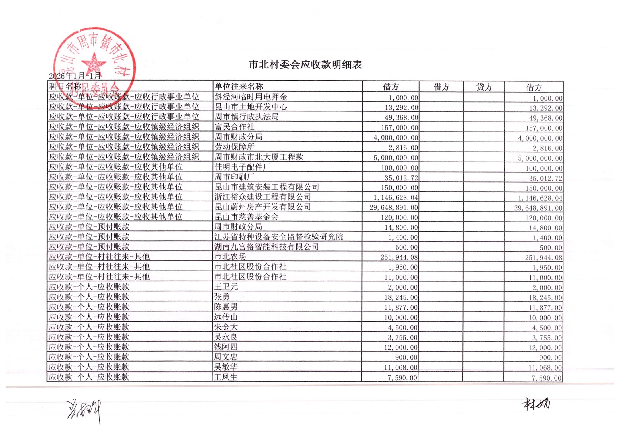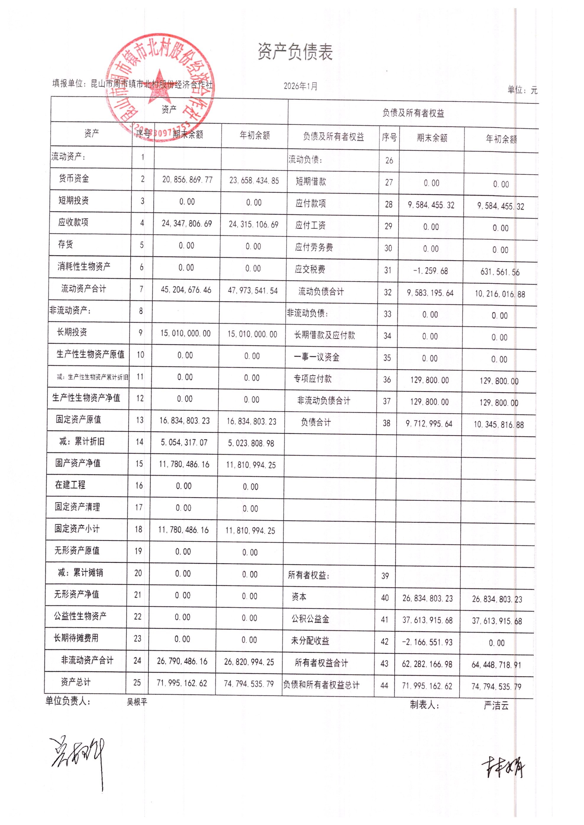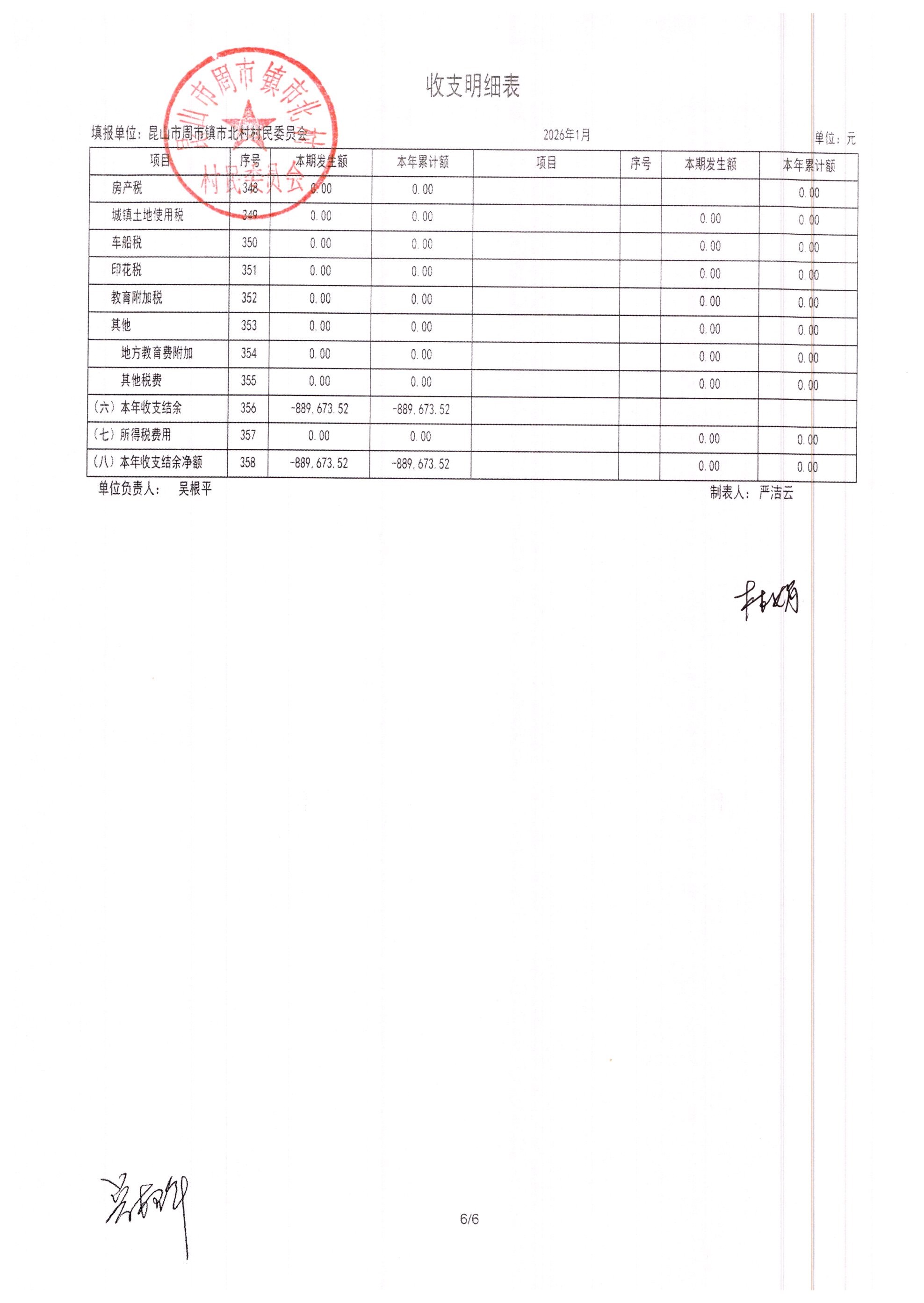 市北村2026年2月财务公开