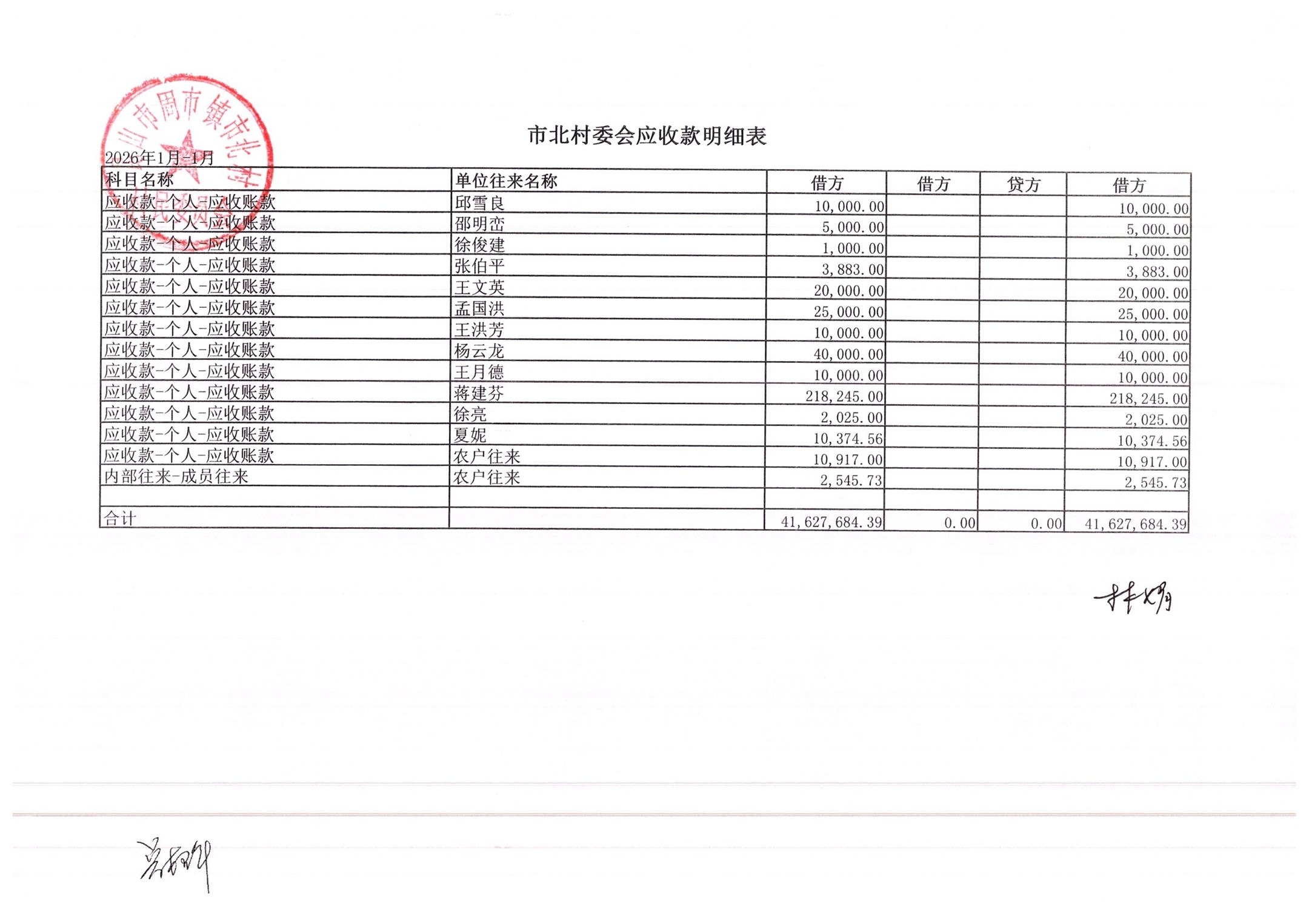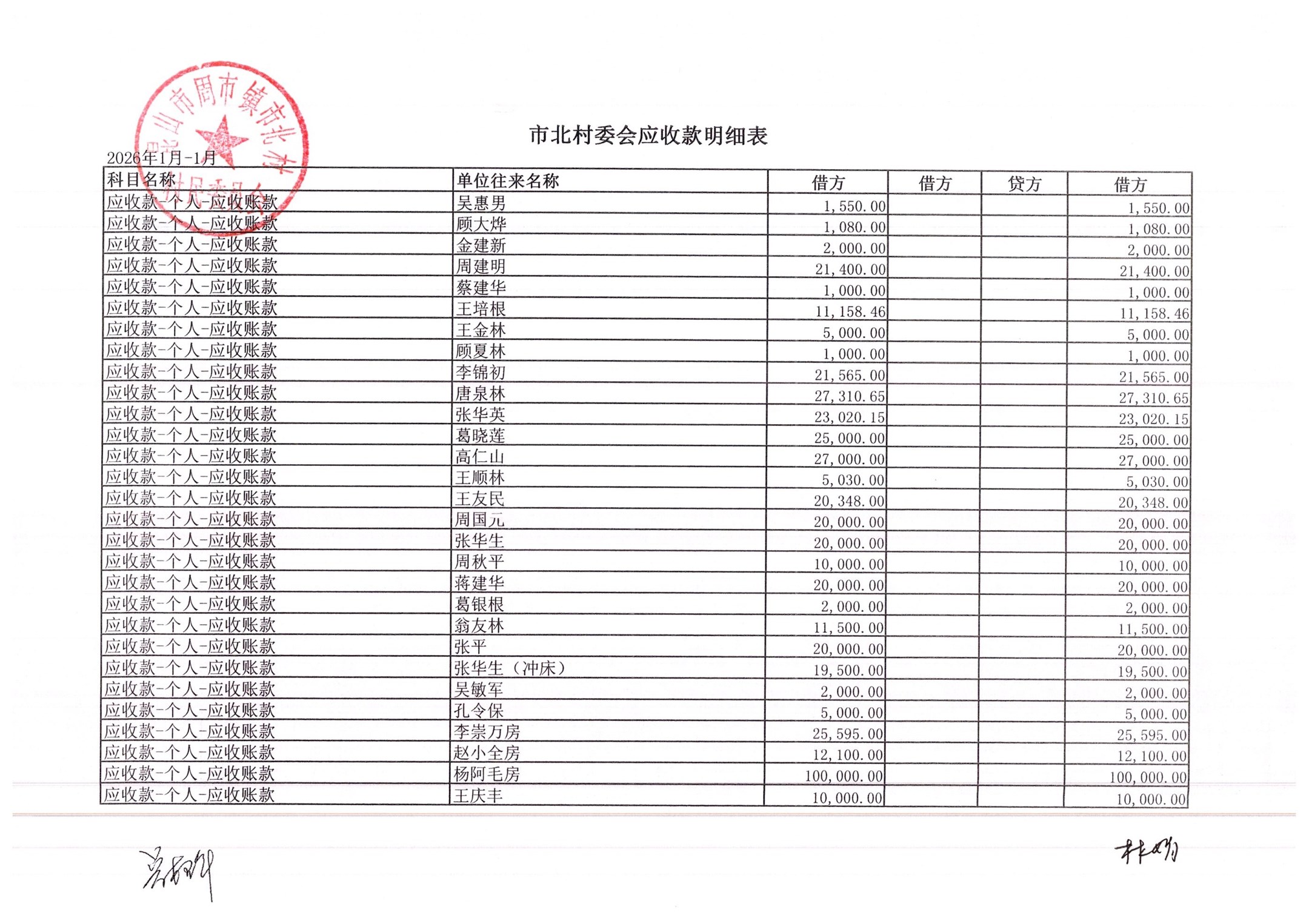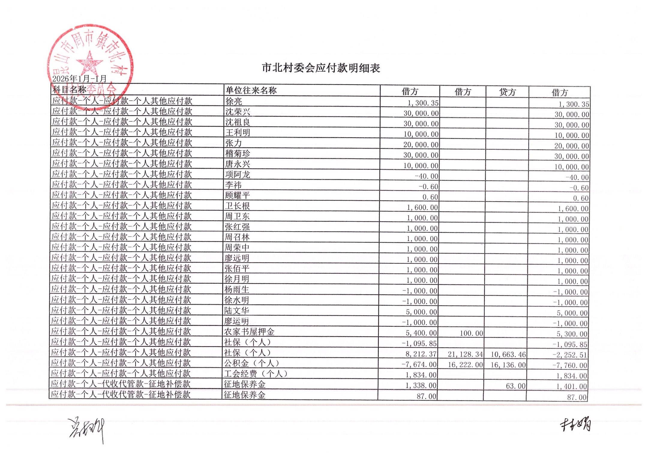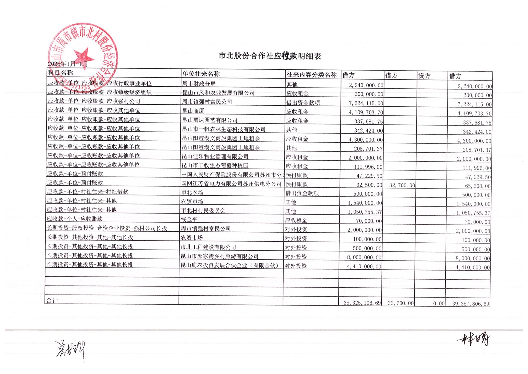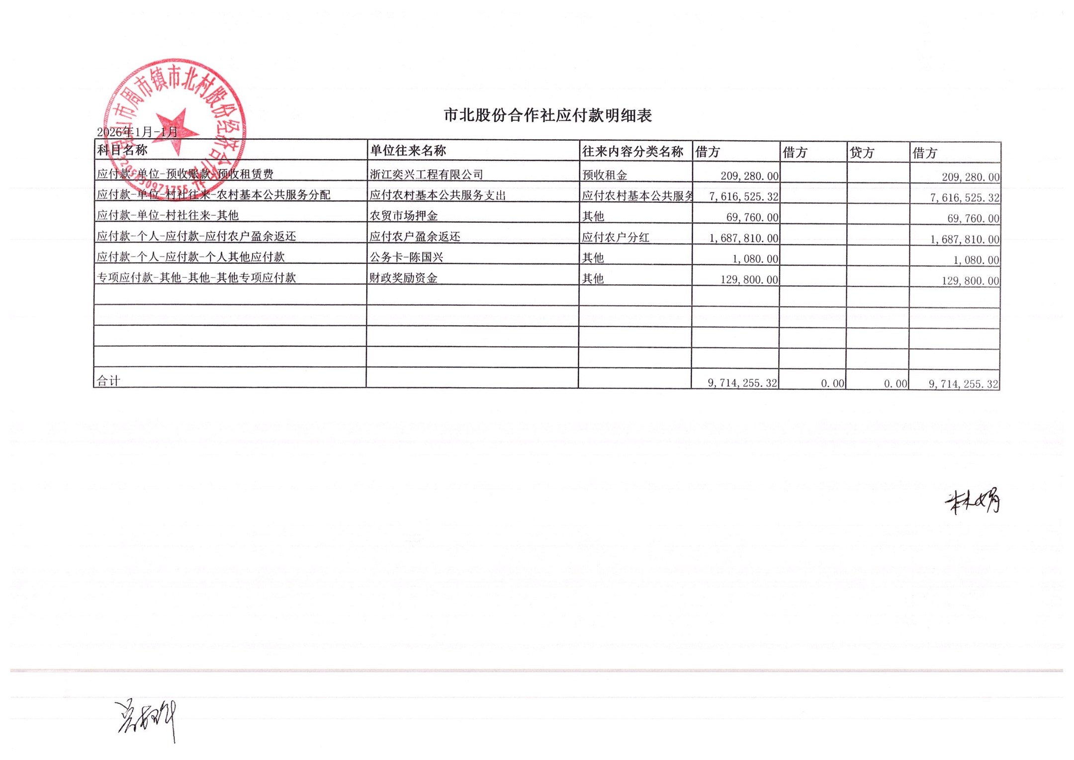 市北村2026年2月财务公开