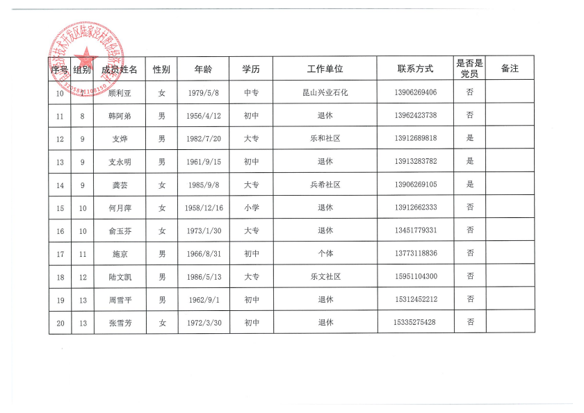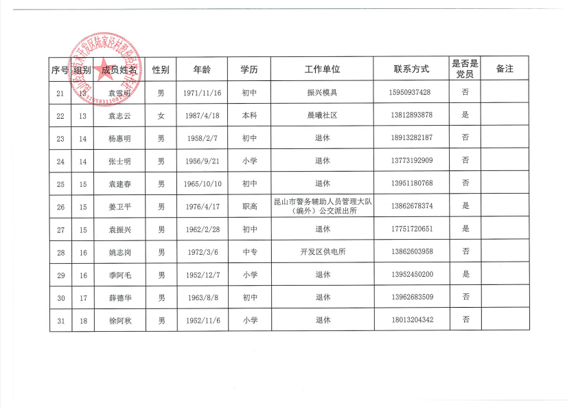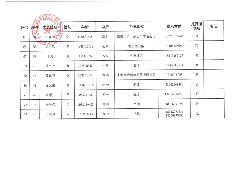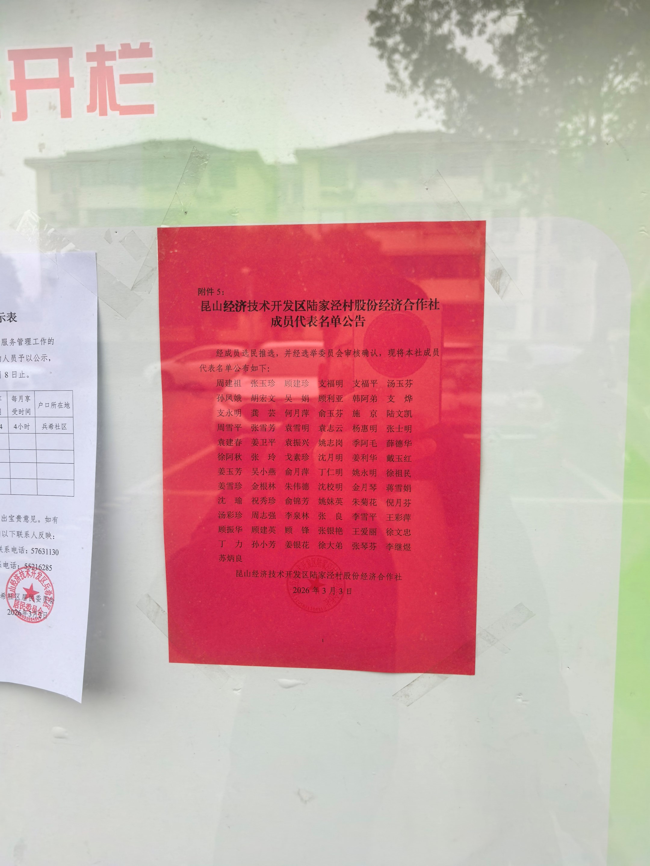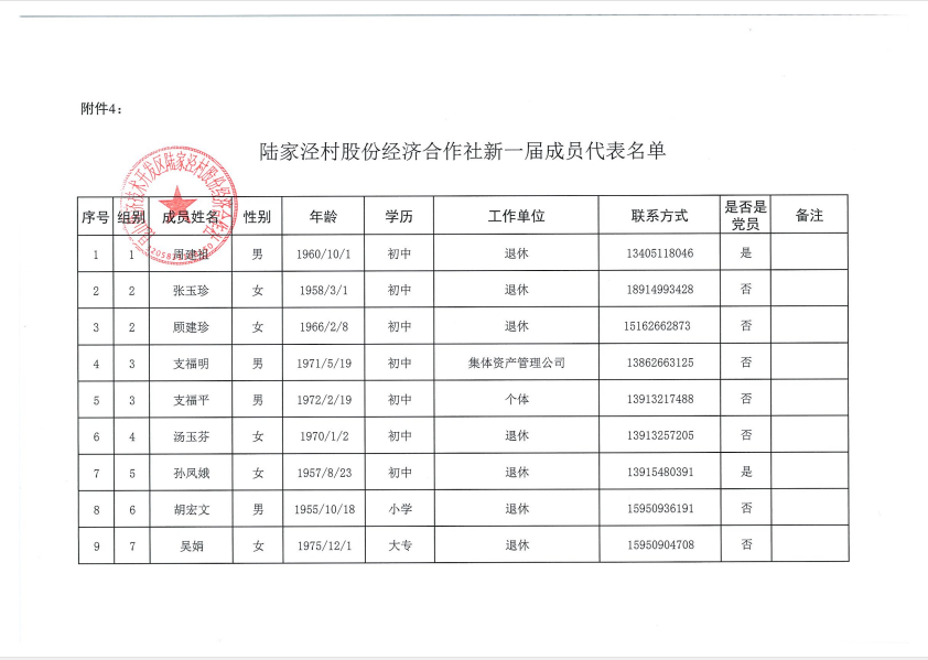 陆家泾村股份经济合作社成员代表