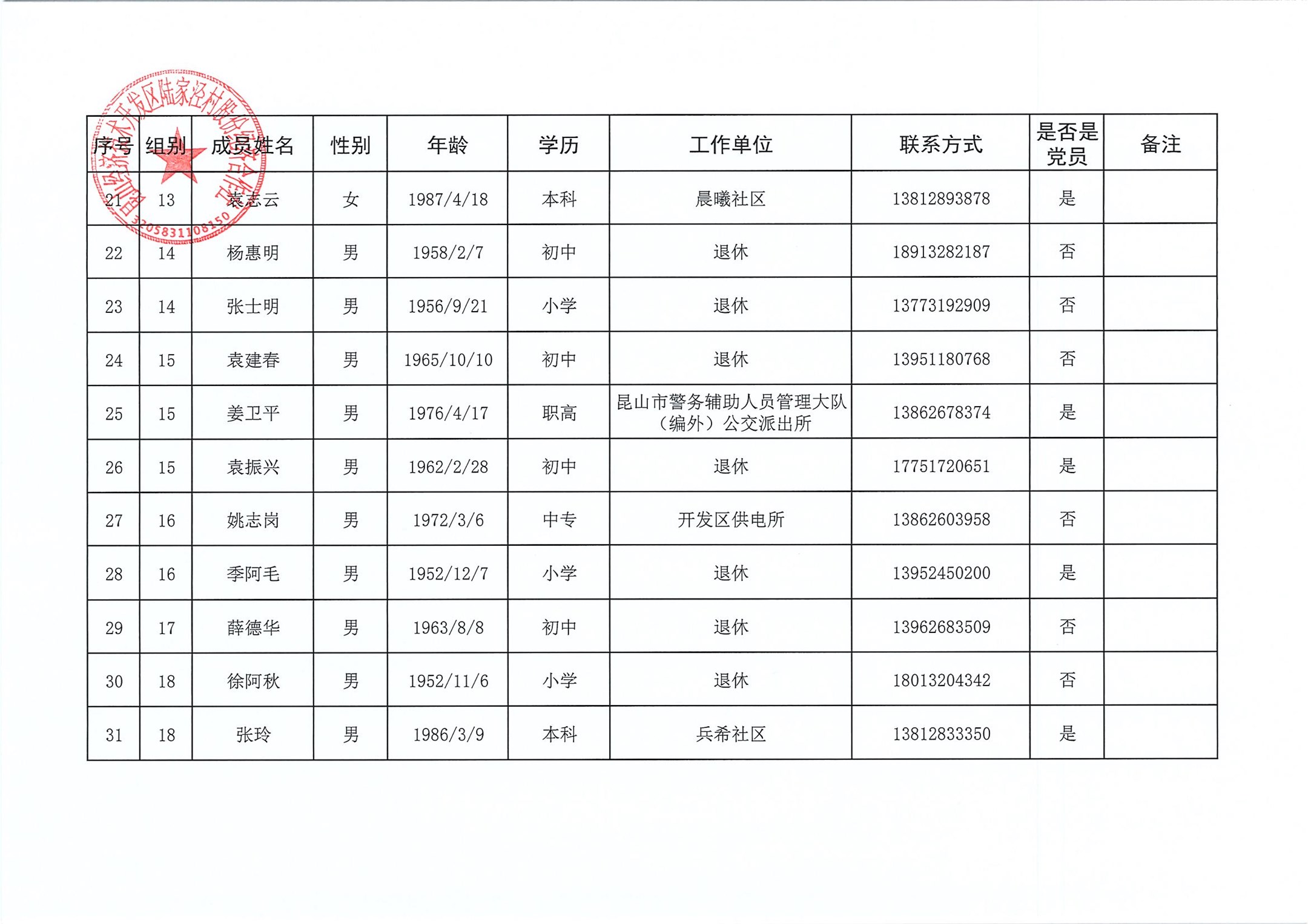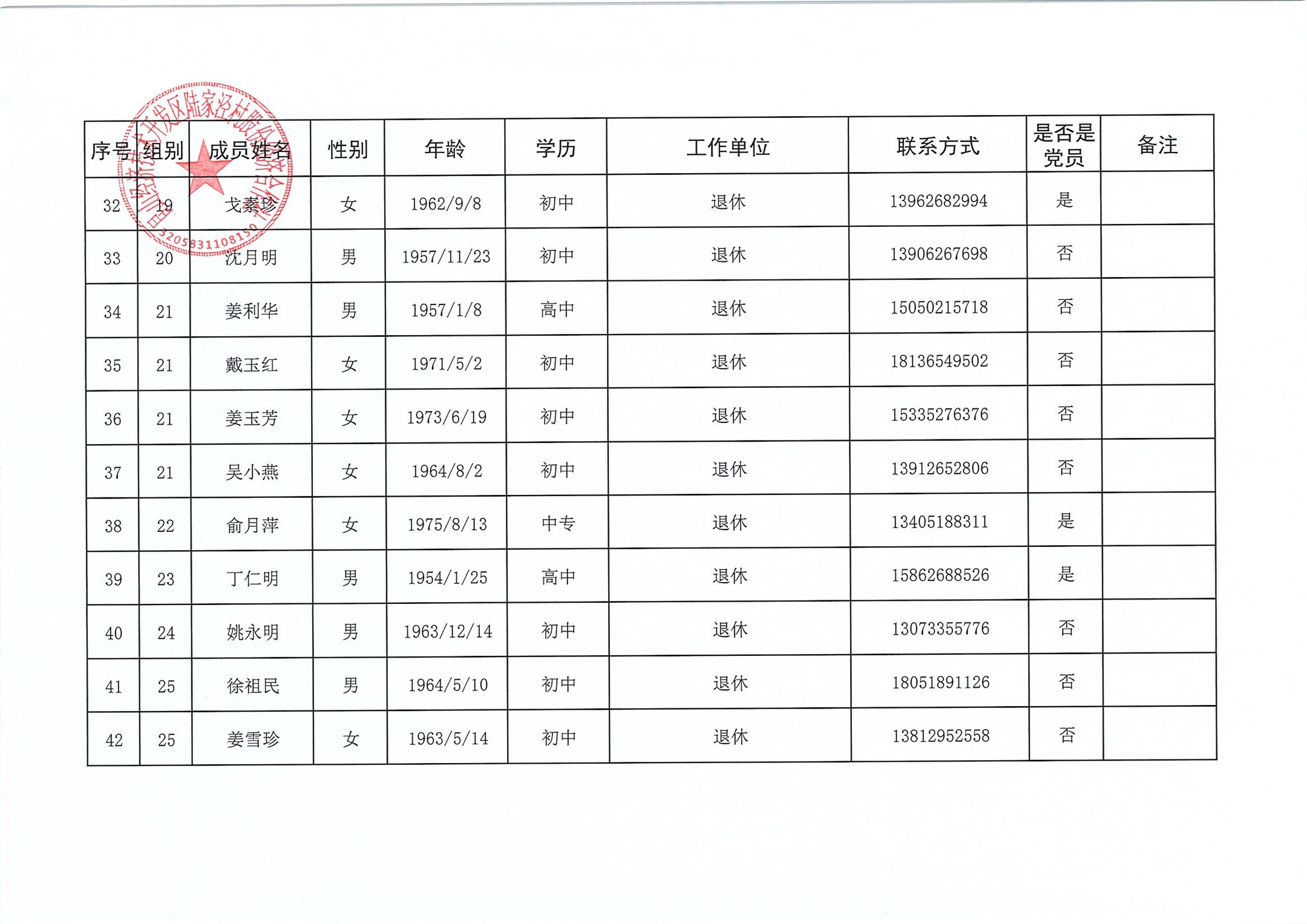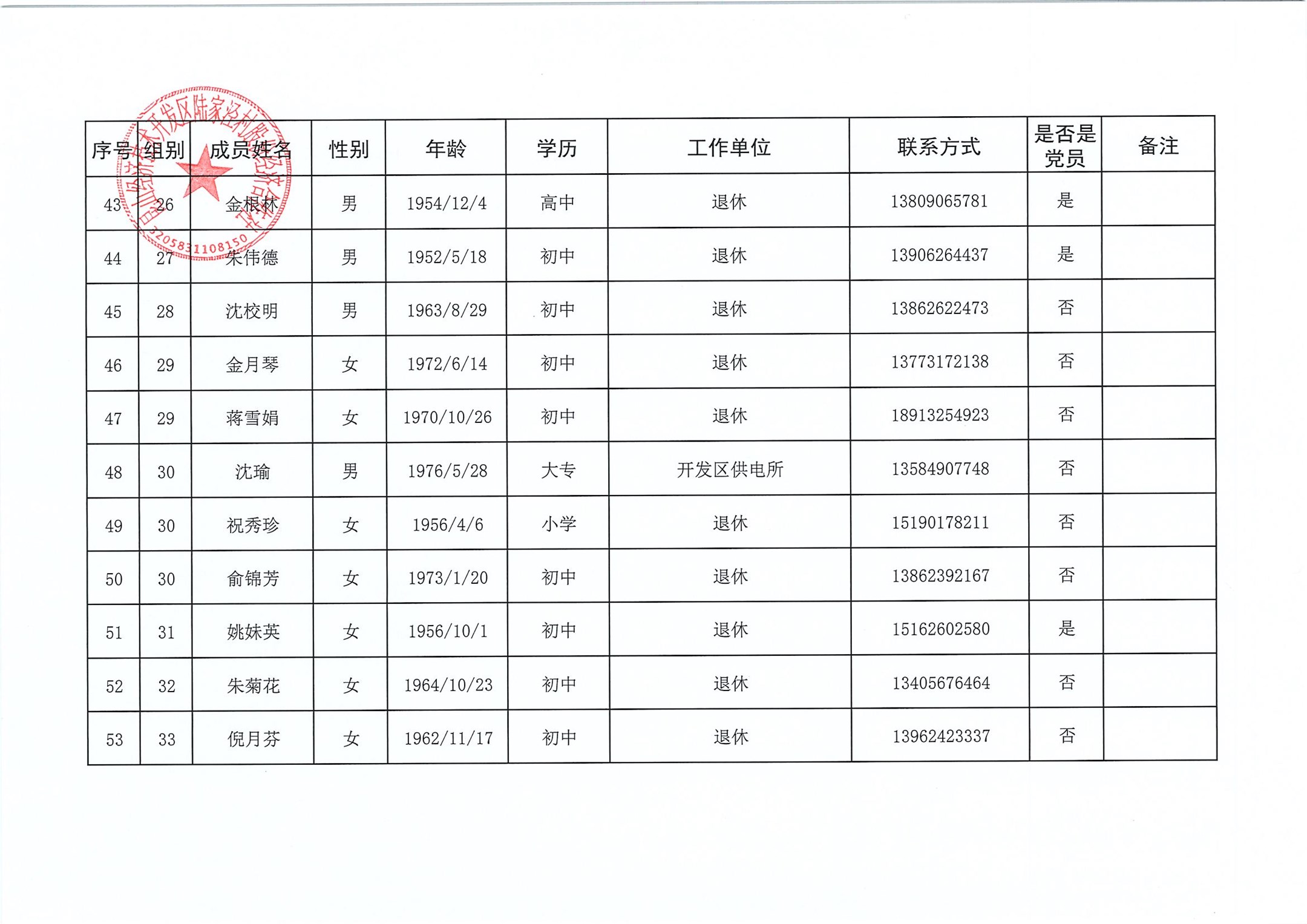 陆家泾村股份经济合作社成员代表