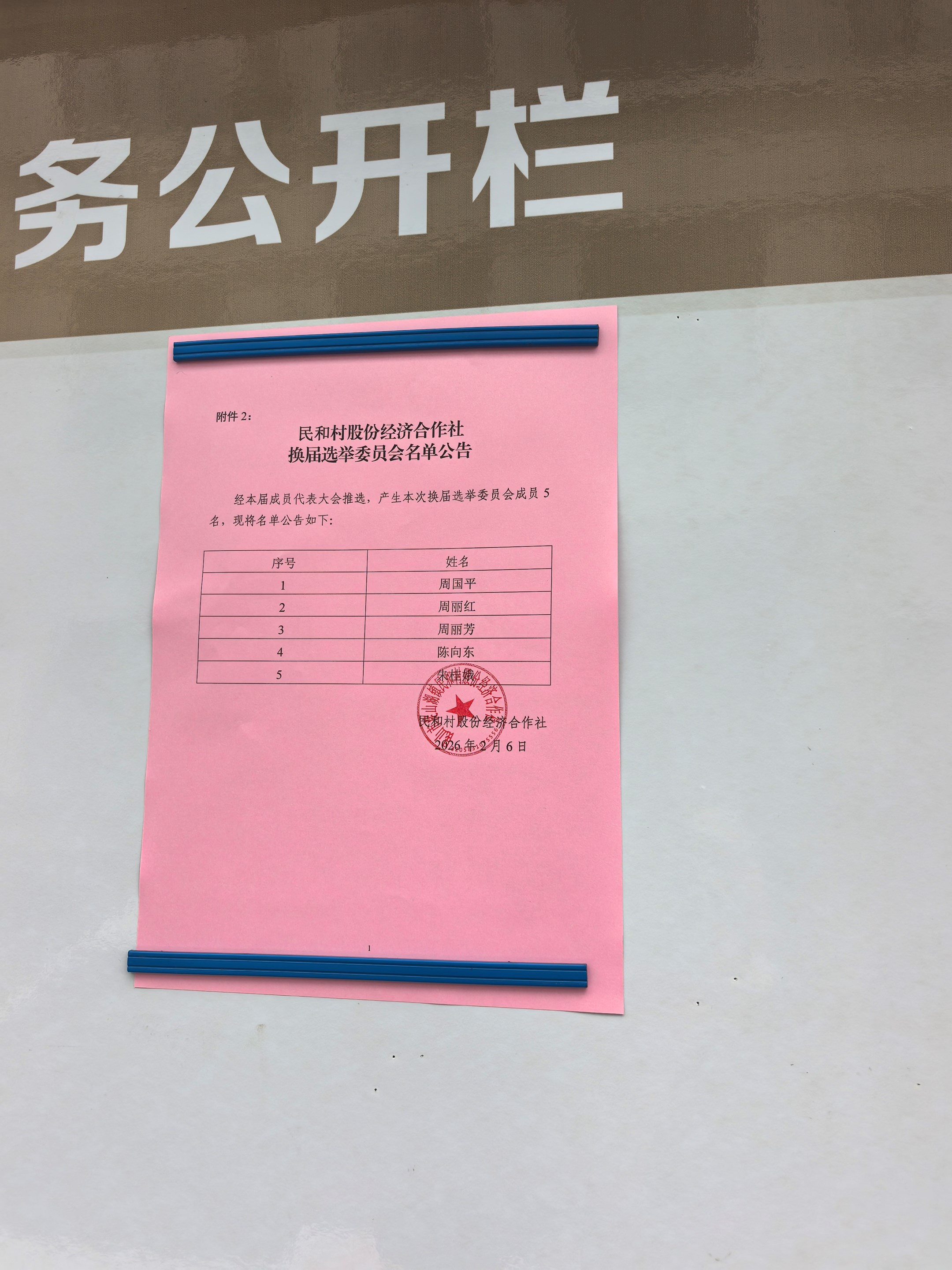 民和村选举委员会名单公告