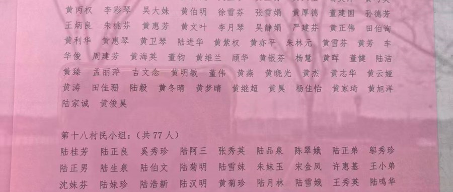 平庄村股份经济合作社换届选举-选民名单公示