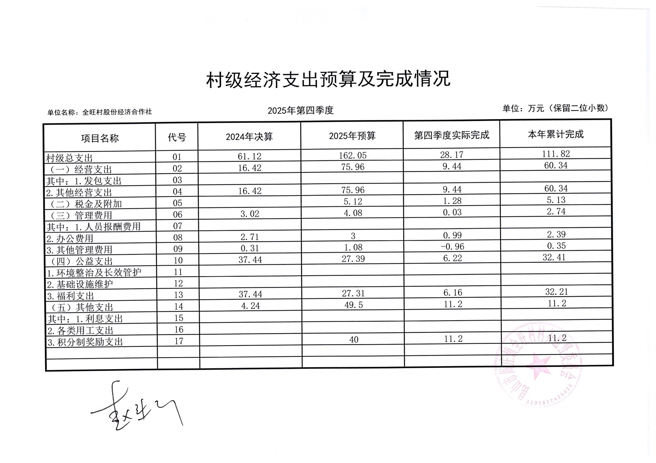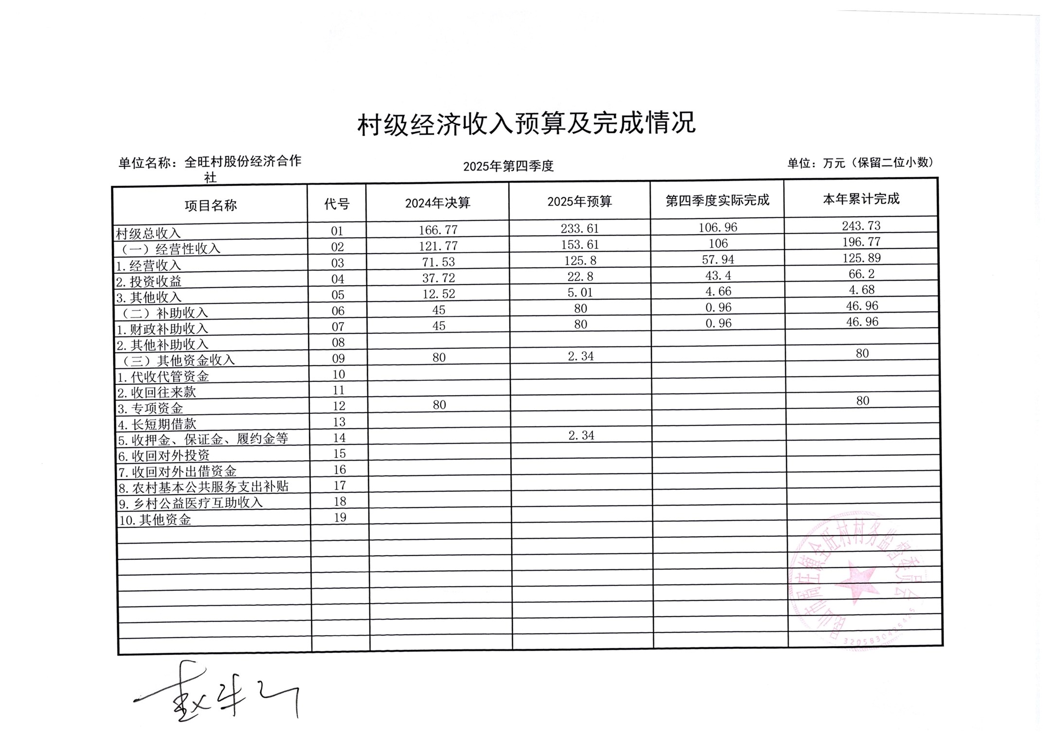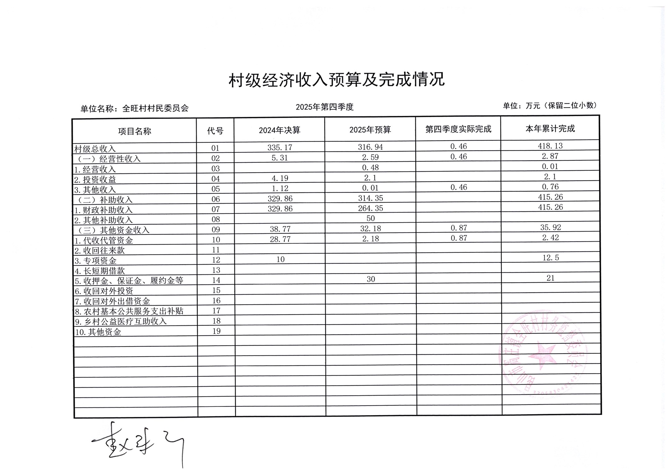 全旺村四季度民主理财