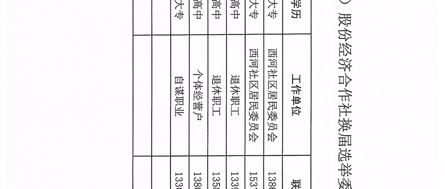 西河社区股份经济合作社选举委员会名单及选举方案公示