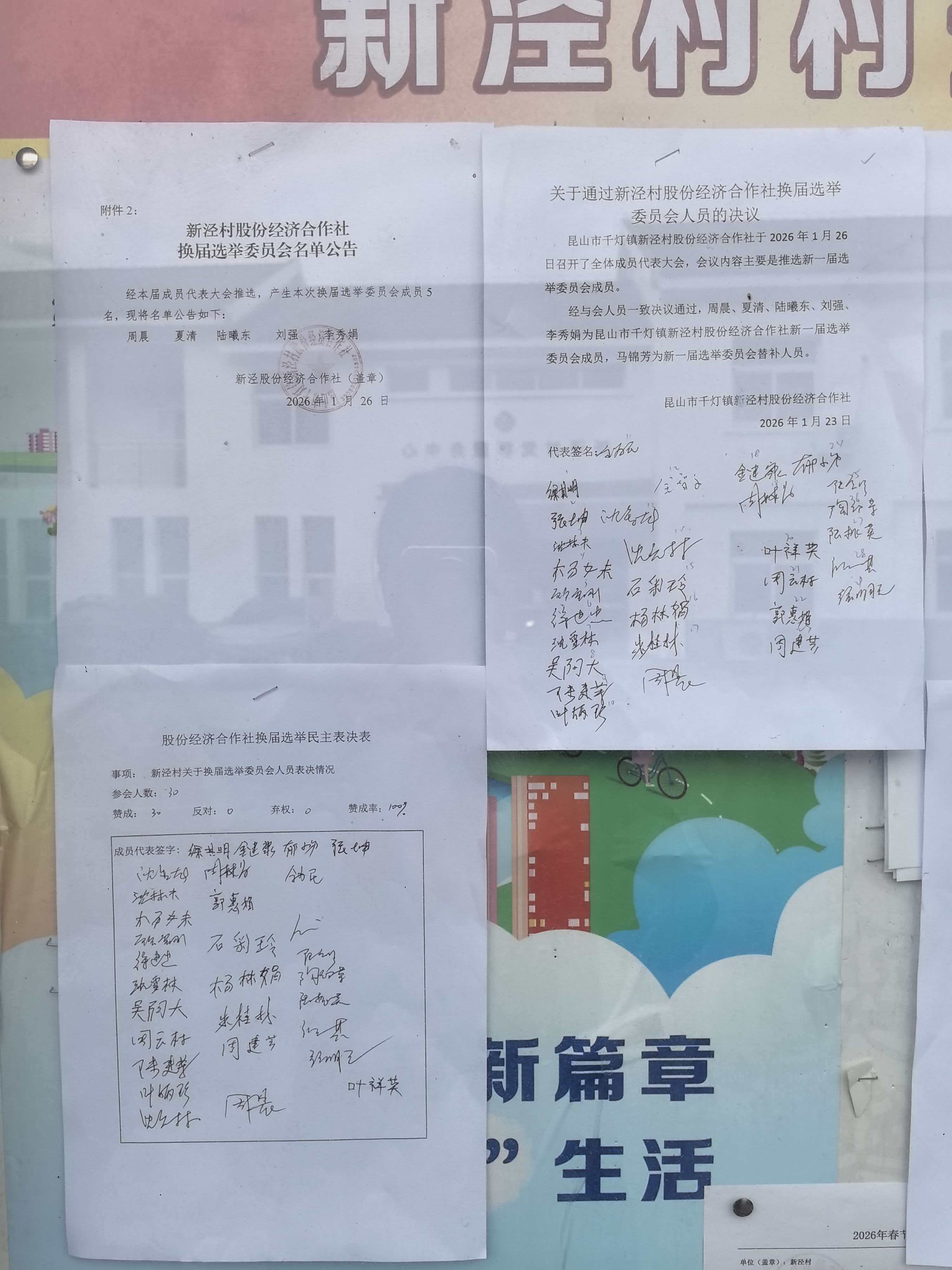 新泾村股份经济合作社换届选举委员会名单公示