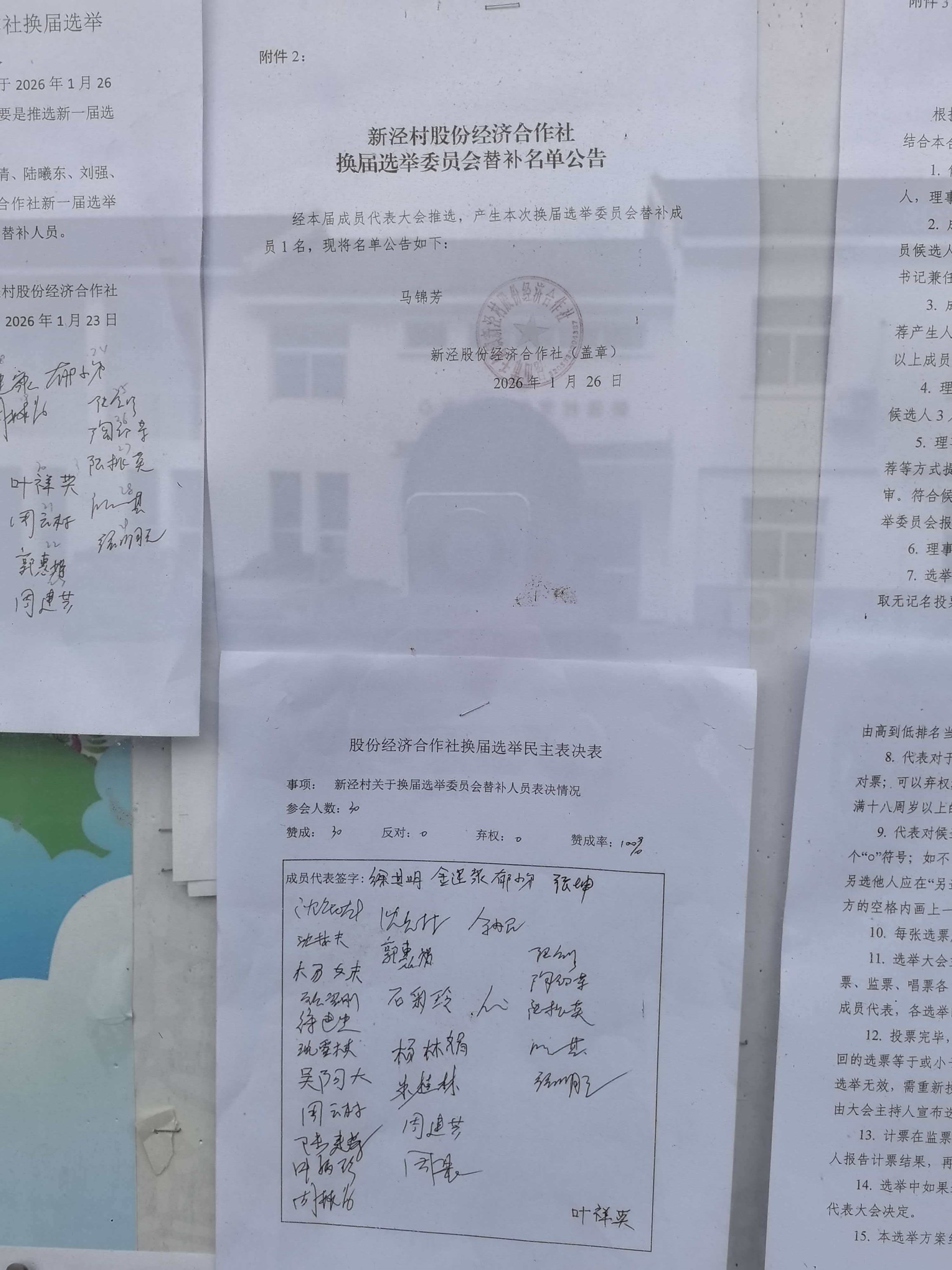 新泾村股份经济合作社换届选举委员会替补名单公示
