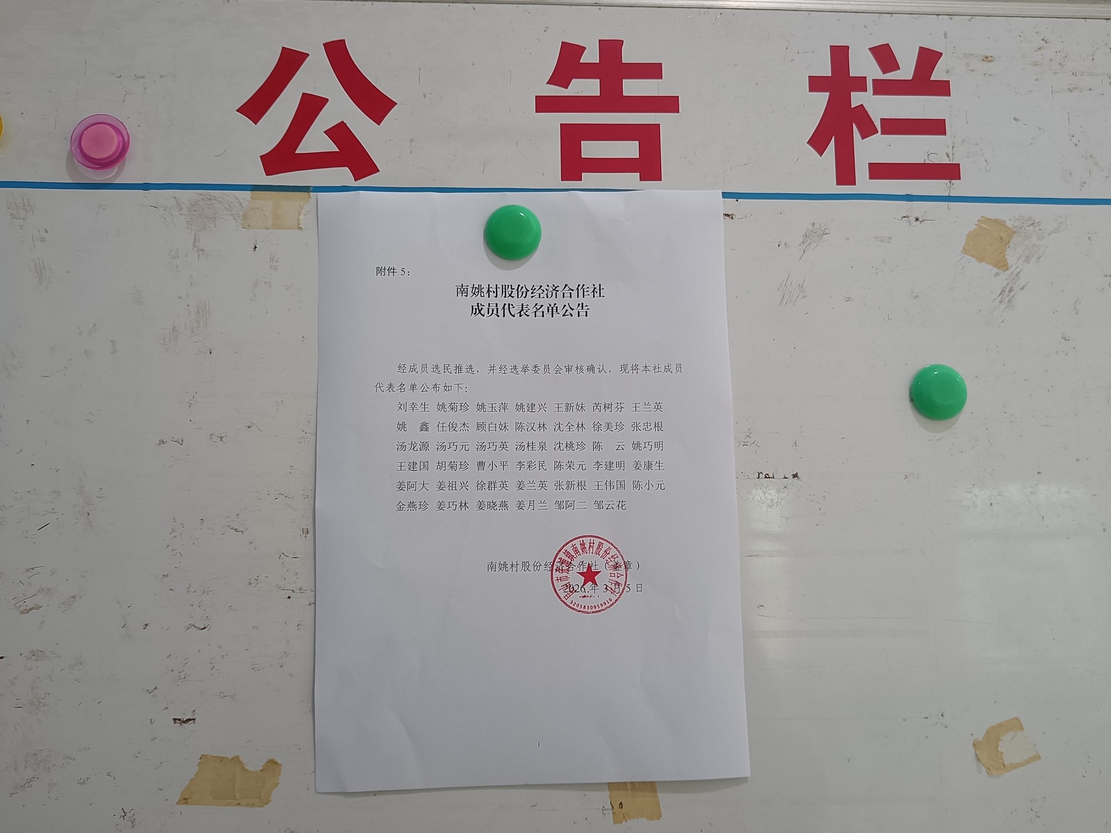 成员代表名单公示