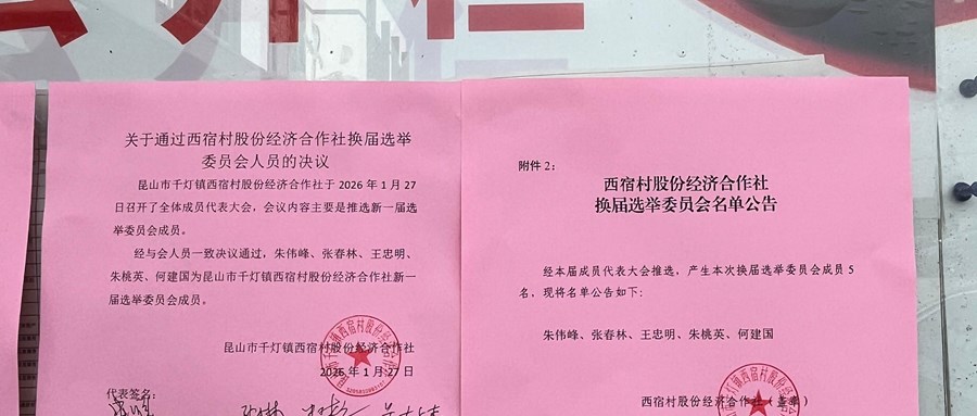 昆山市千灯镇西宿村股份经济合作社换届选举委员会公告(1)
