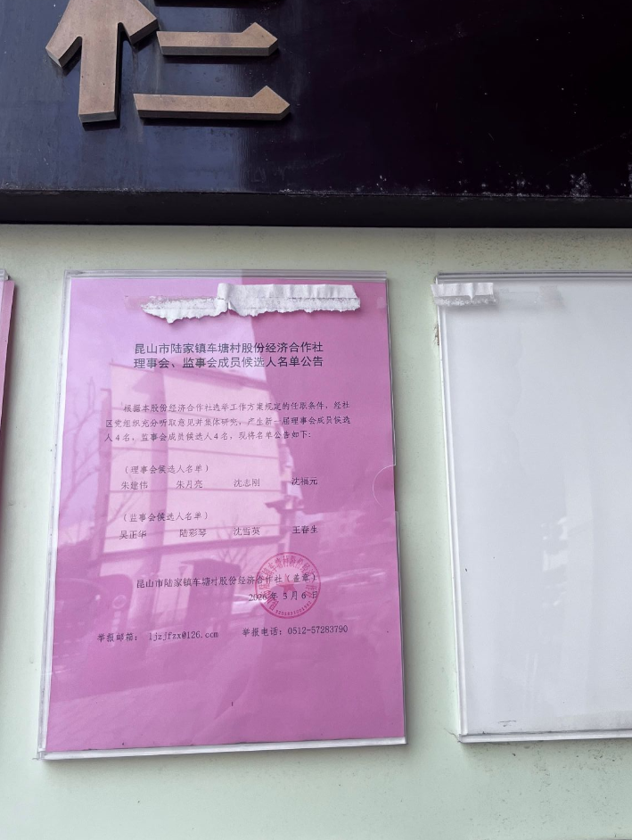 车塘村股份经济合作社理事会、监事会成员候选人名单公告