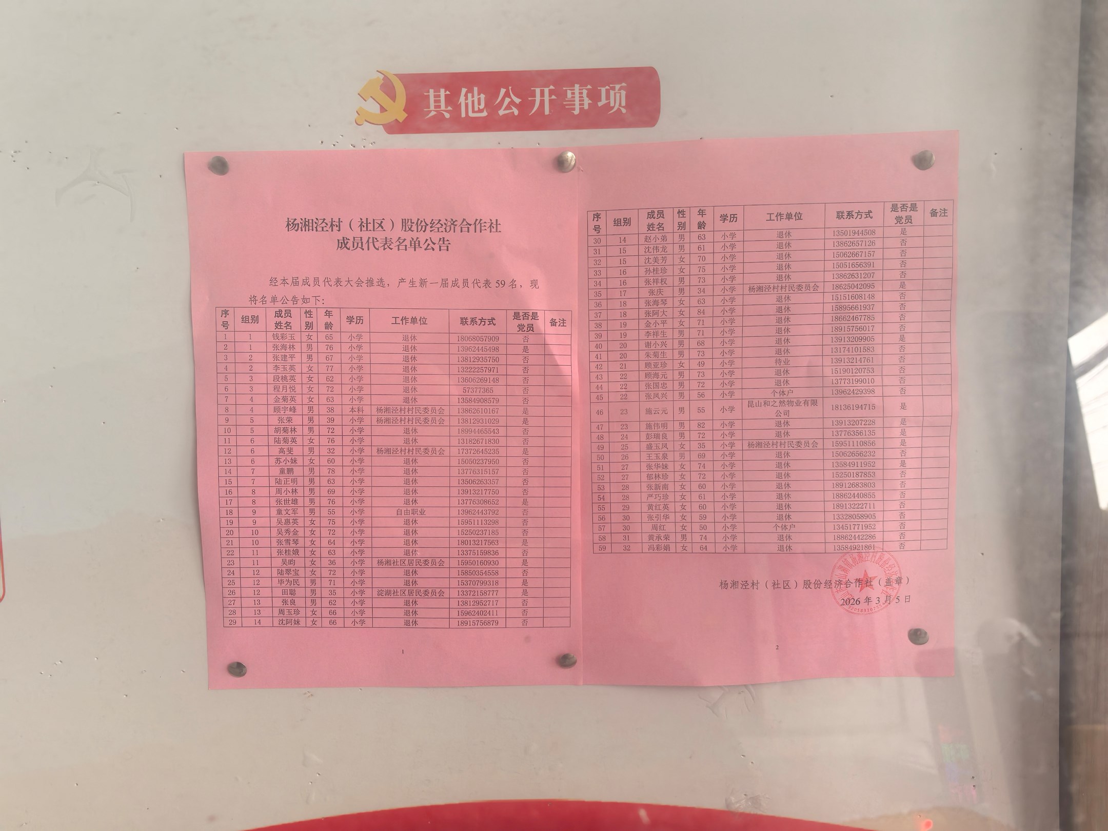 经济组织换届选举成员代表公示
