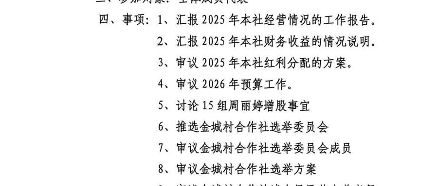金城村股份经济合作社2025年分红会议公示