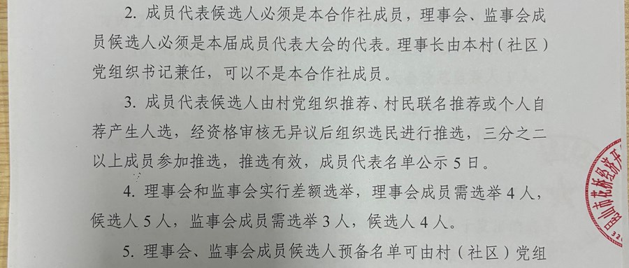 上岸村股份经济合作社成员代表大会审议上岸村合作社选举方案