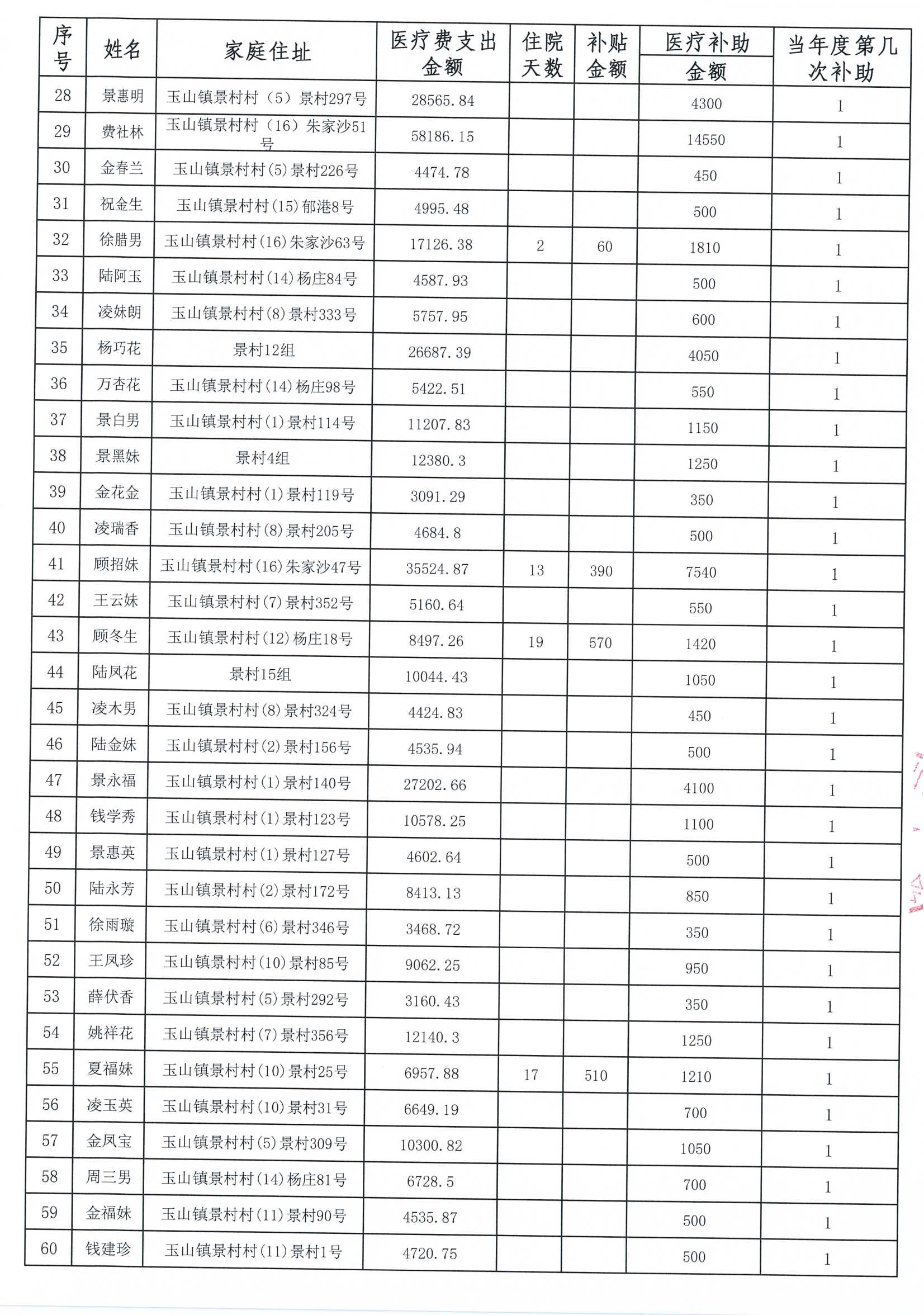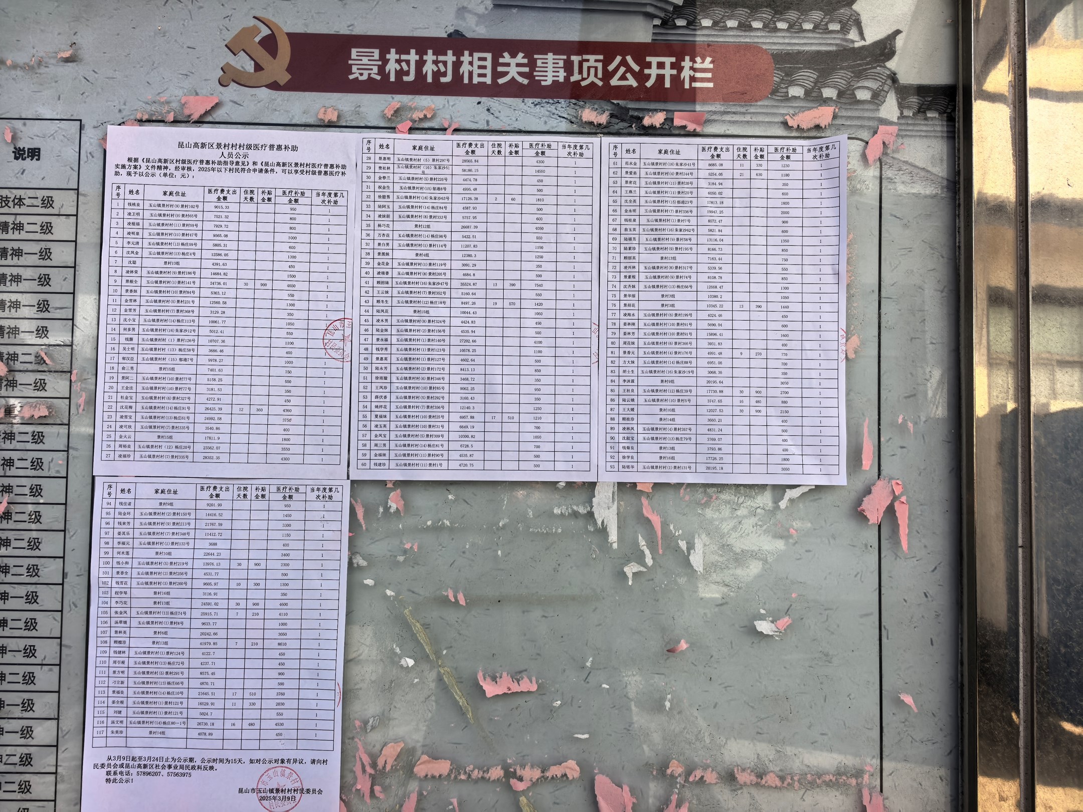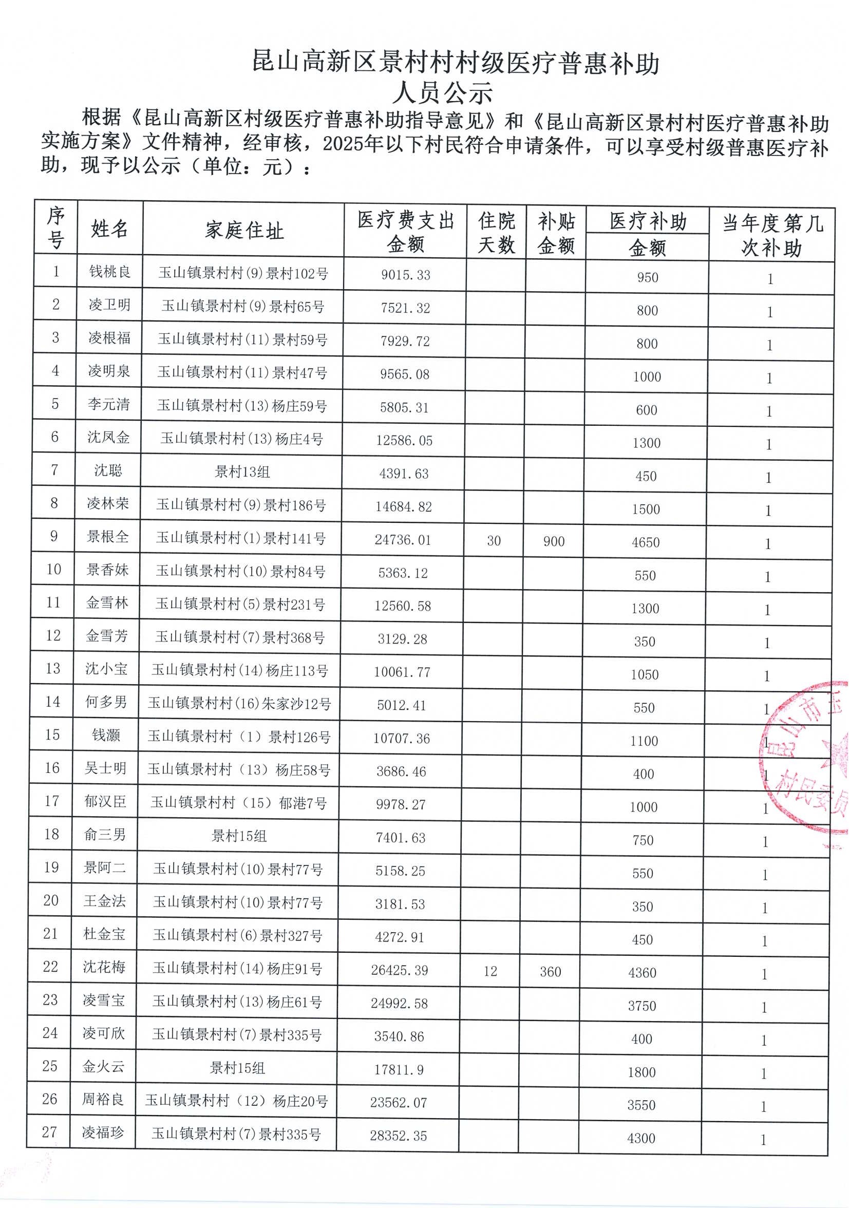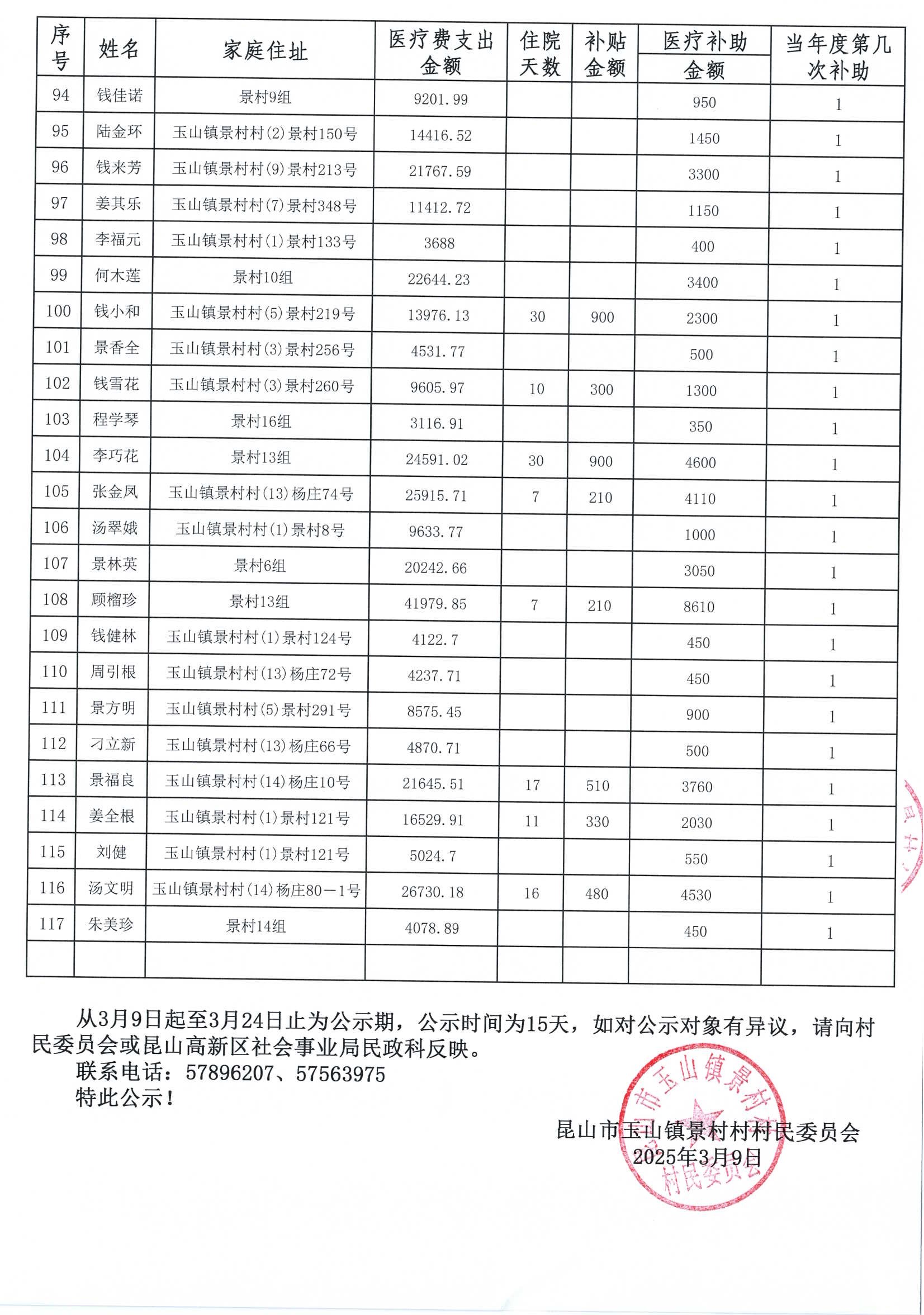 高新区景村村2025年度医疗普惠人员公示: