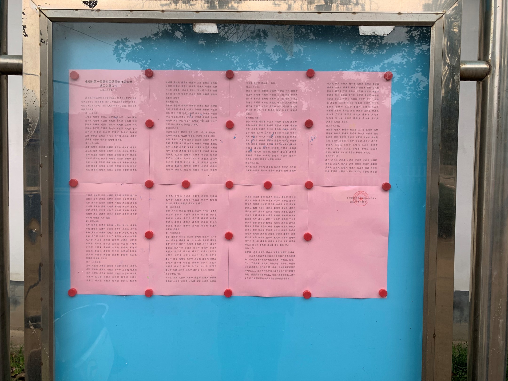 余项村第十四届村民委员会换届选举选民名单公告