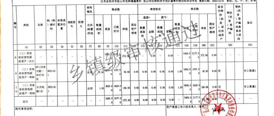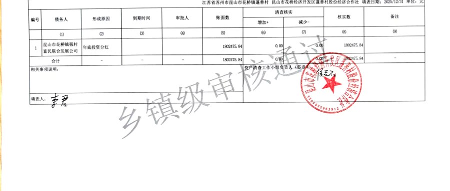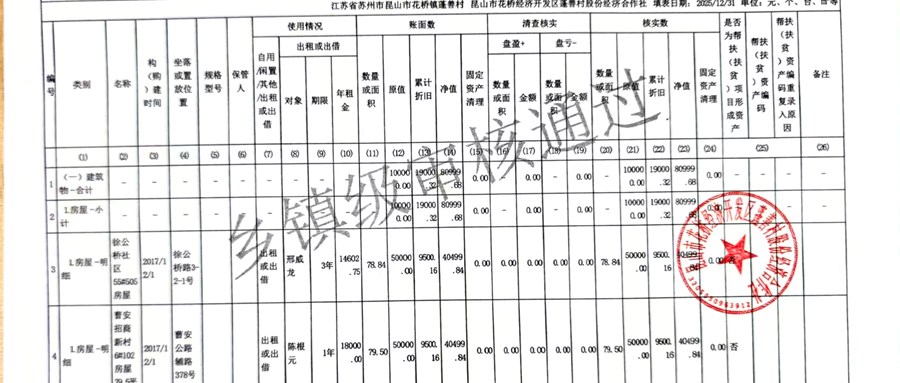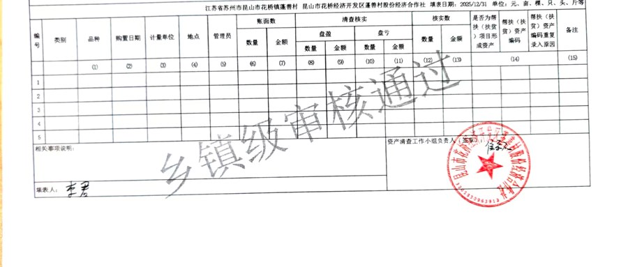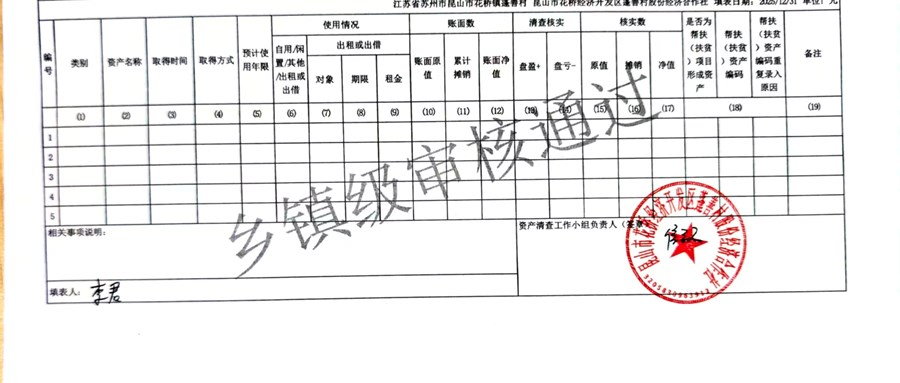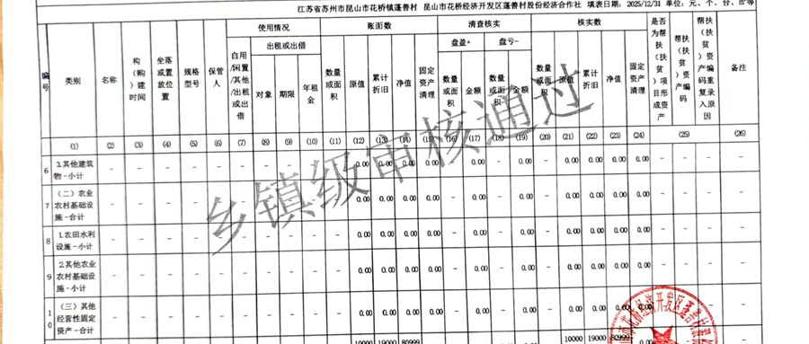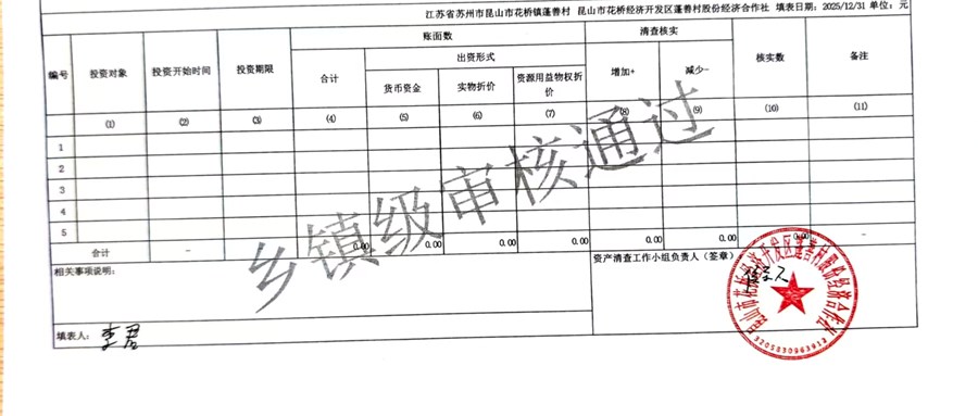 2025年蓬善村股份经济合作社农村集体资产清查报表公示1