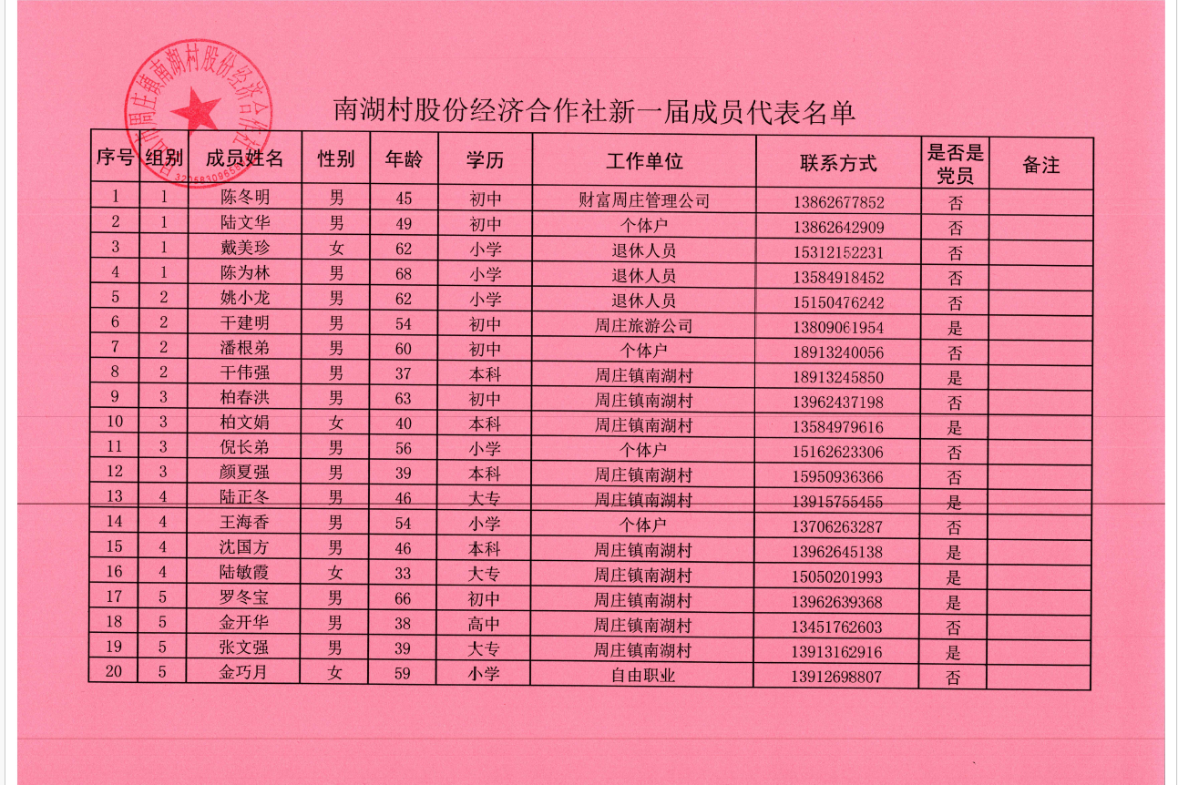 南湖村社员代表名单
