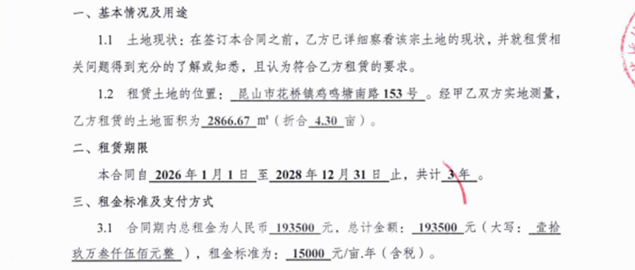 星浜村股份经济合作社-2026至2028年英雄续租土地租赁合同