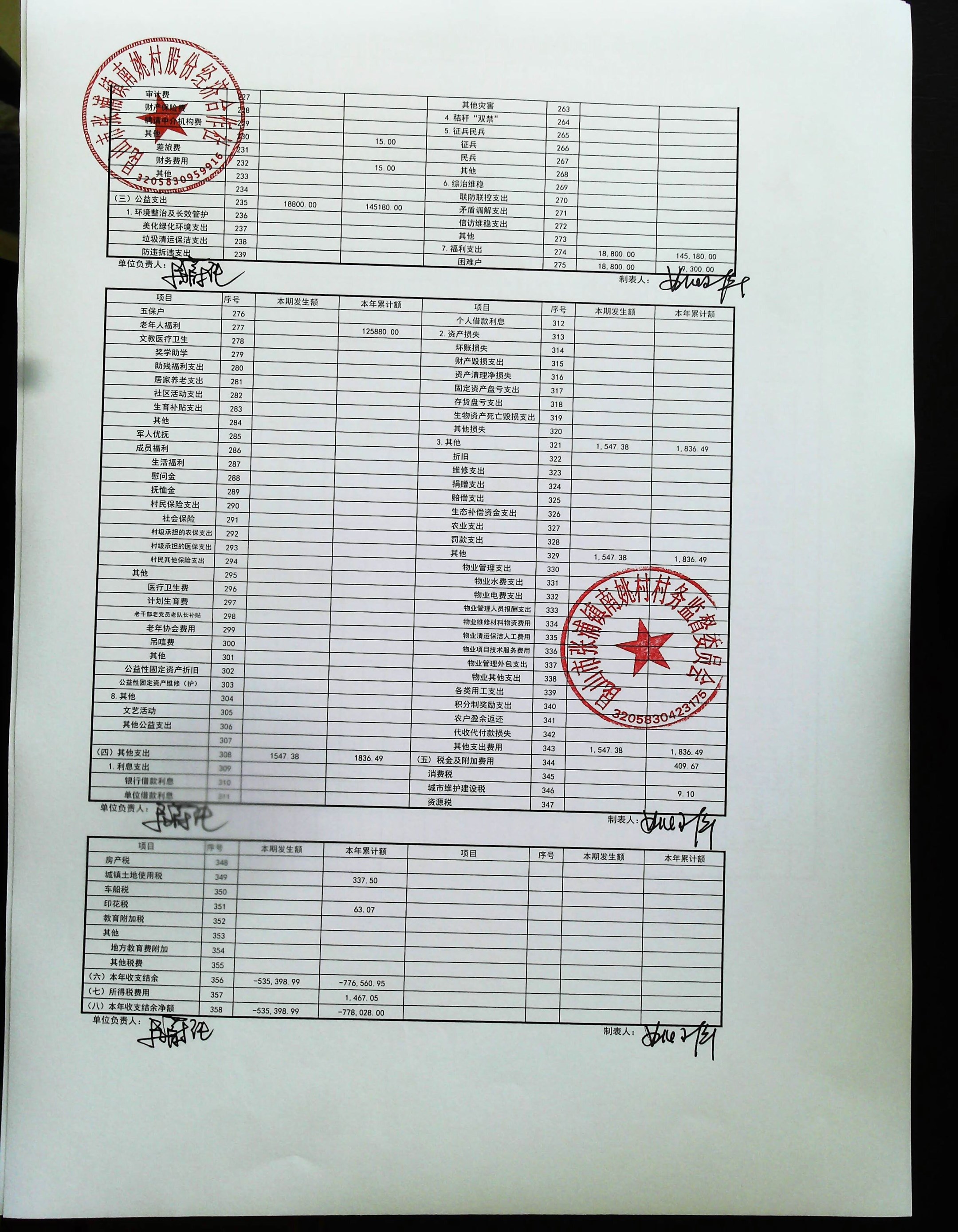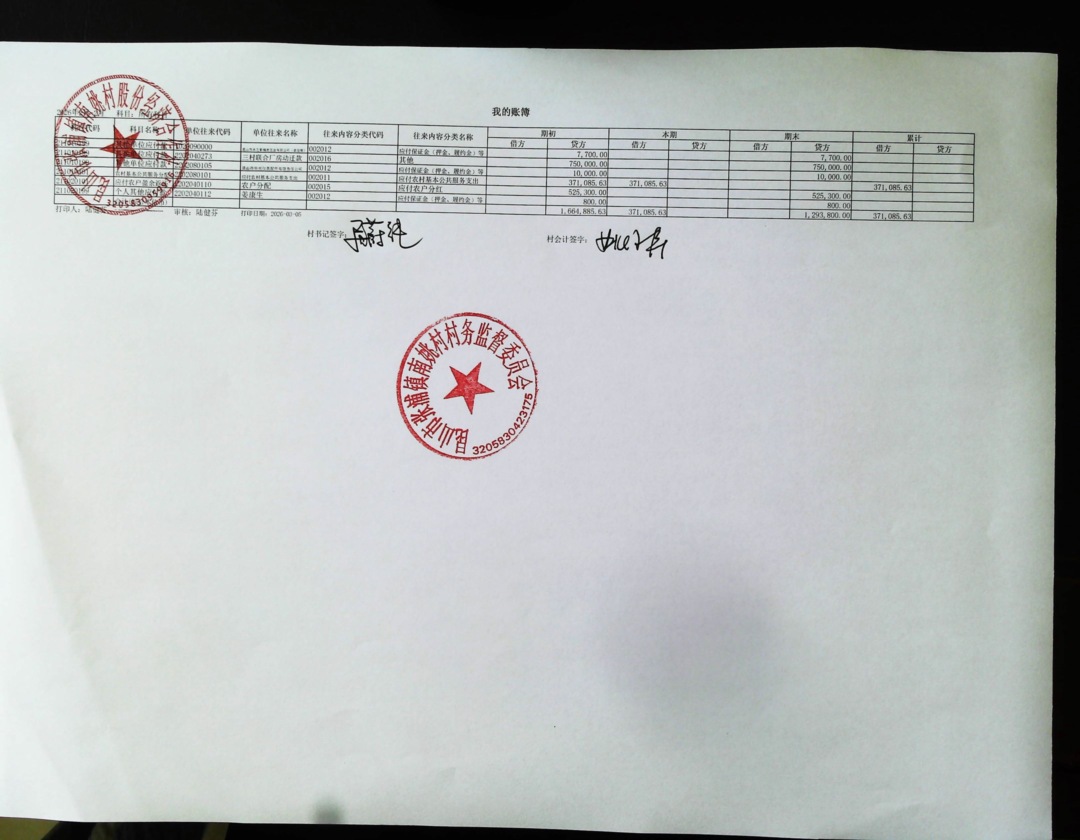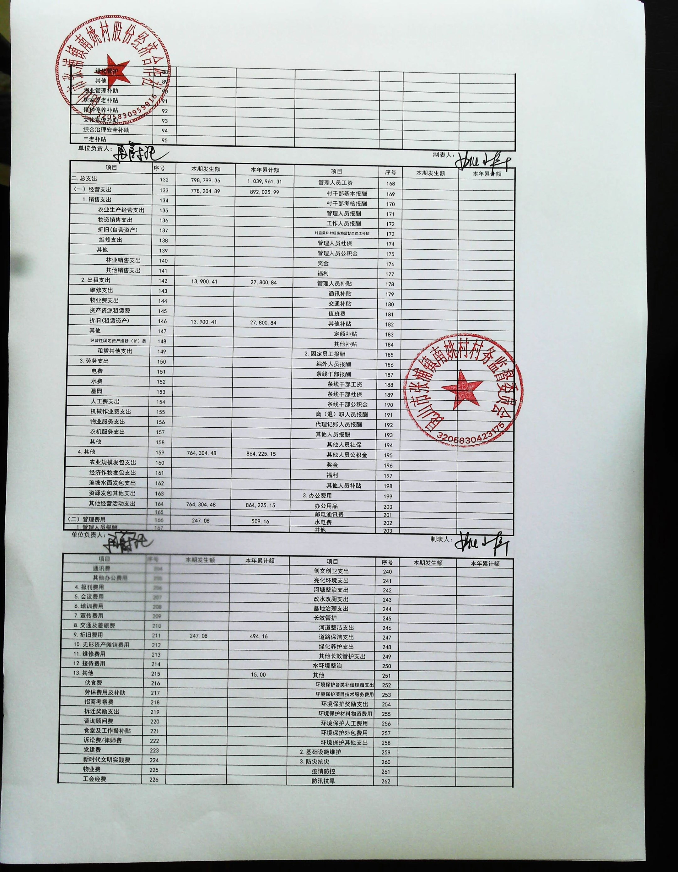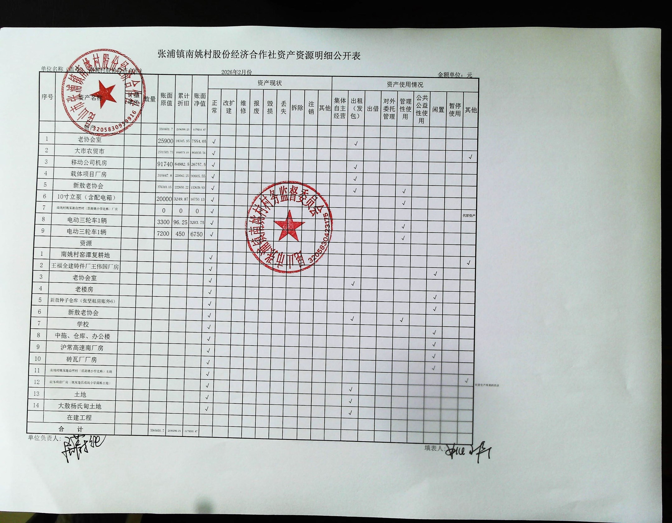 2026年2月南姚村股份经济财务公开