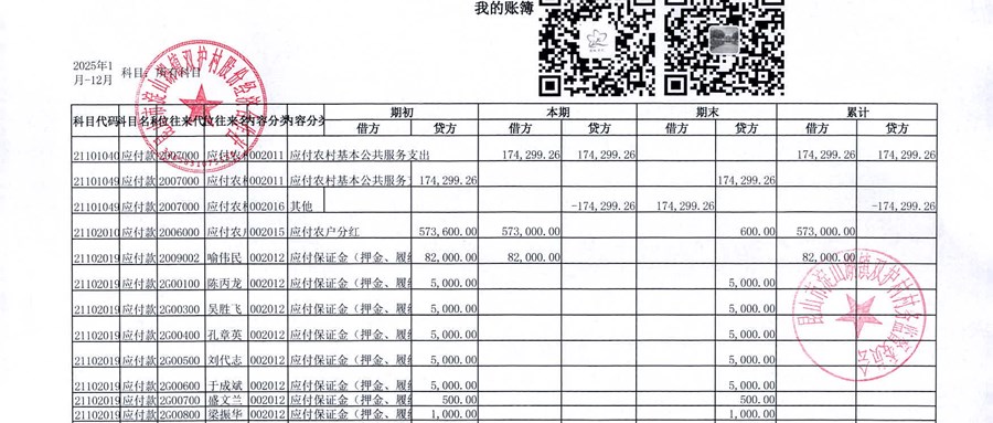 2026年1月双护村股份经济合作社财务公开