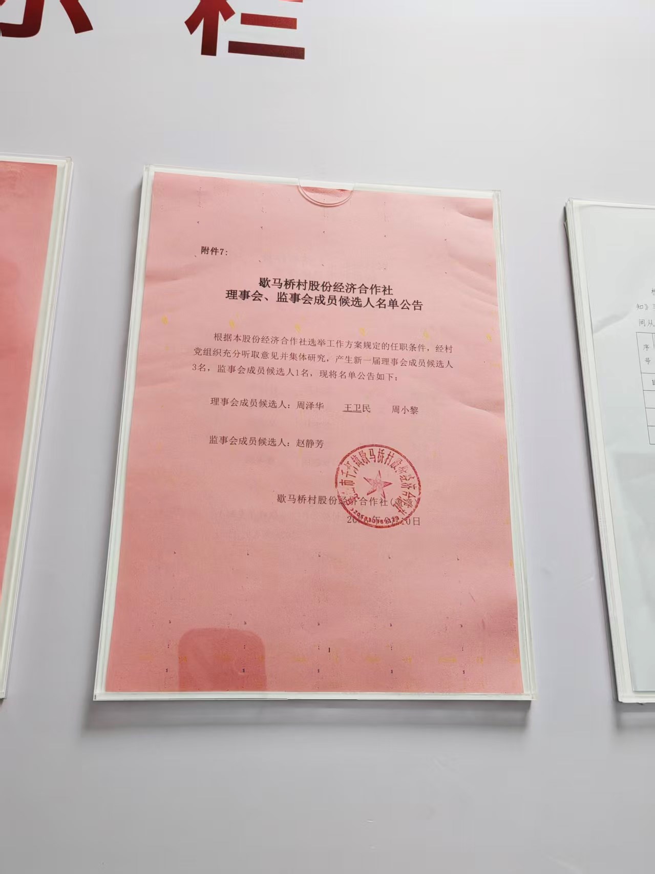 歇马桥村股份经济合作社理事会、监事会成员候选人名单公告