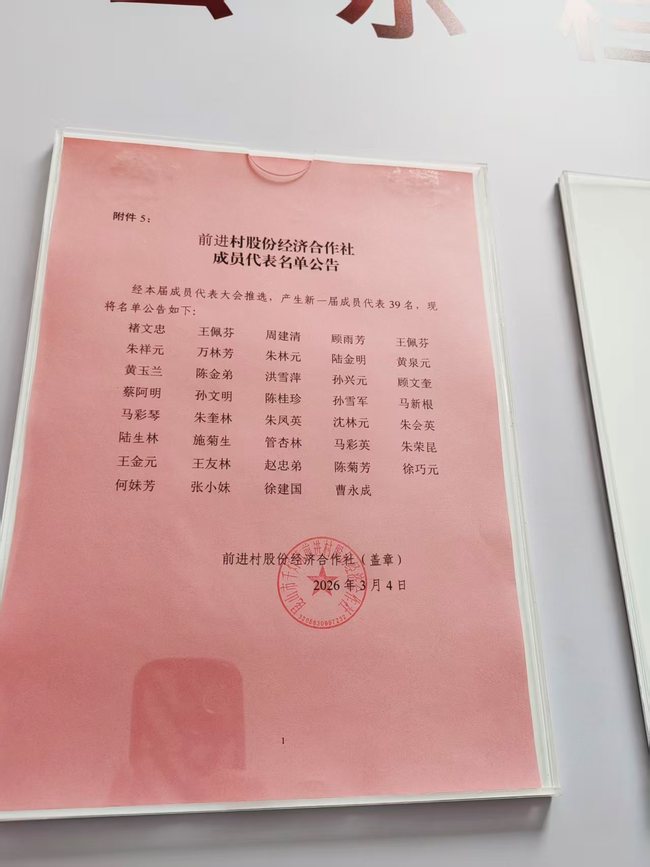 前进村股份经济合作社成员代表名单公告