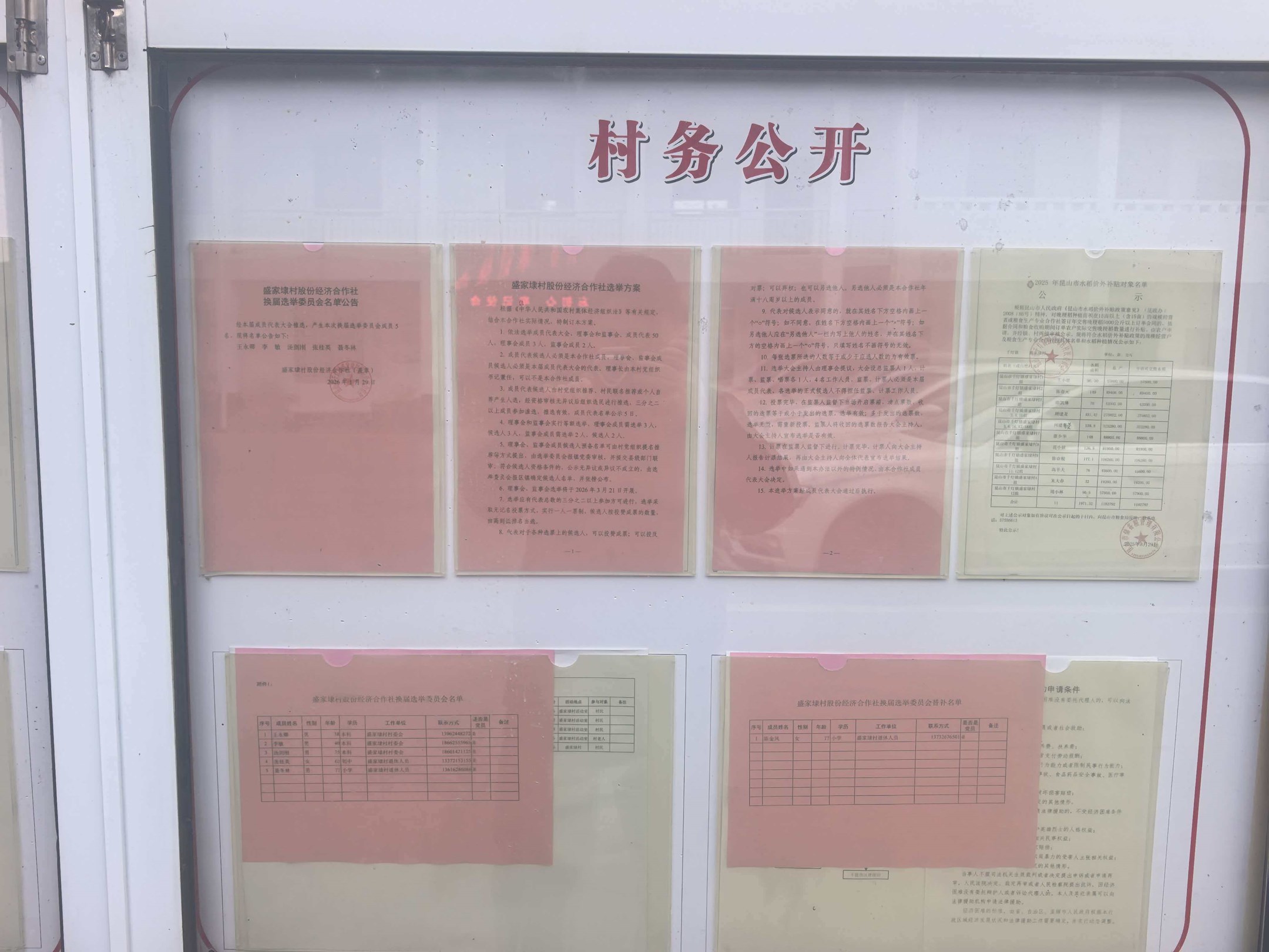 盛家埭村股份经济合作社选举委员会名单、替补名单及选举办法公示