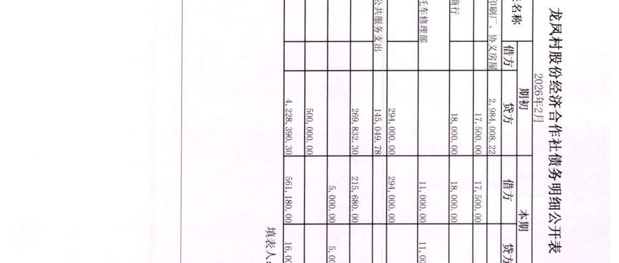 龙凤村股份经济合作社2026年3月份财务公开