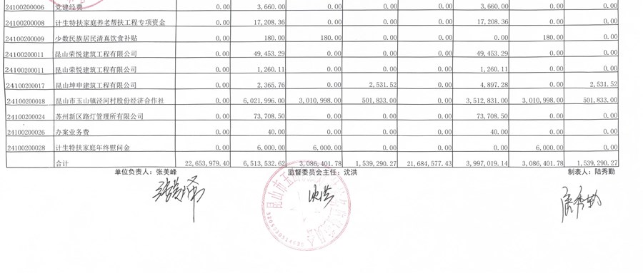 2026年3月昆山市玉山镇庙灯村村民委员会财务公开