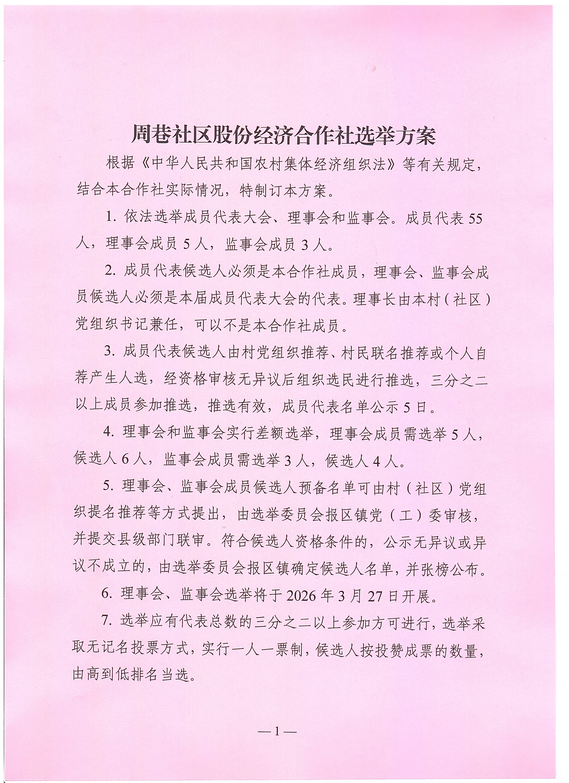 股份合作社换届选举选举方案公示