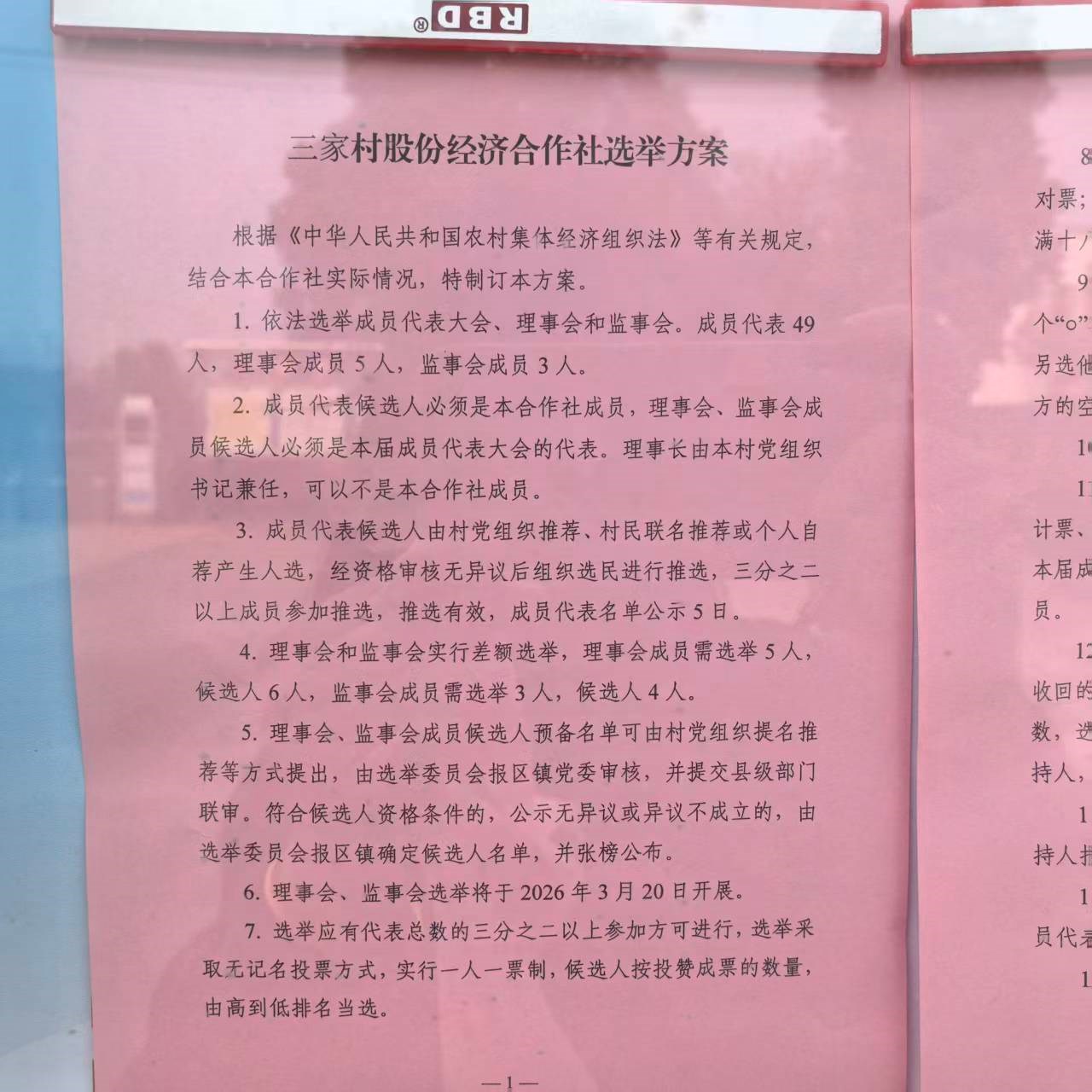 三家村股份经济合作社换届选举方案公示