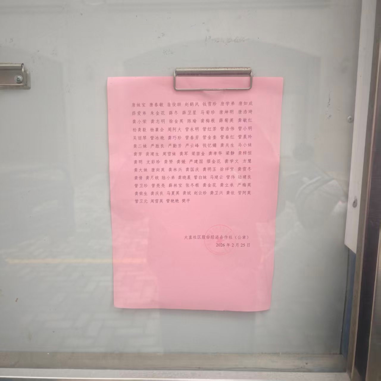 大直社区股份经济合作选民名单公告
